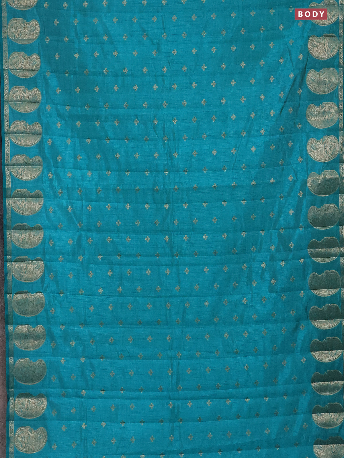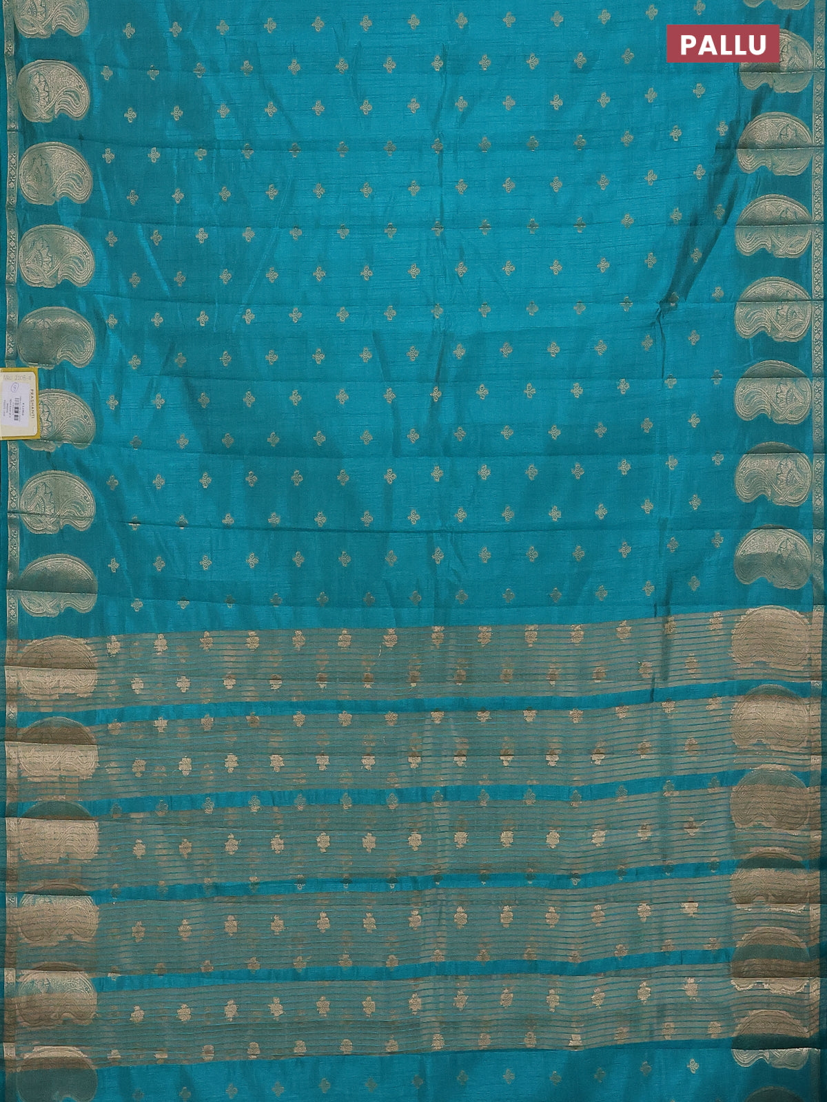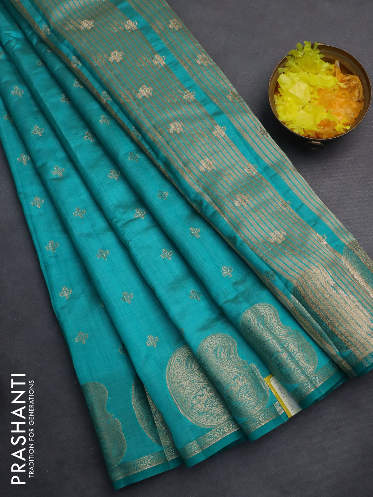 Semi raw silk saree teal blue with allover zari woven 1000 buttas and paisley zari woven butta border