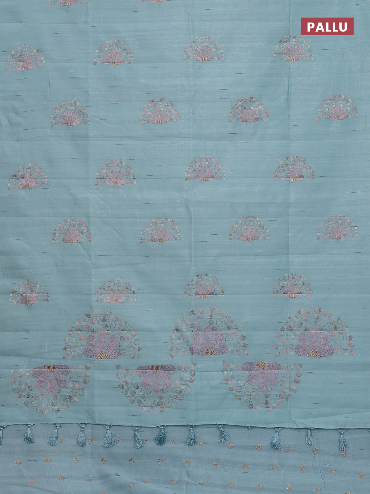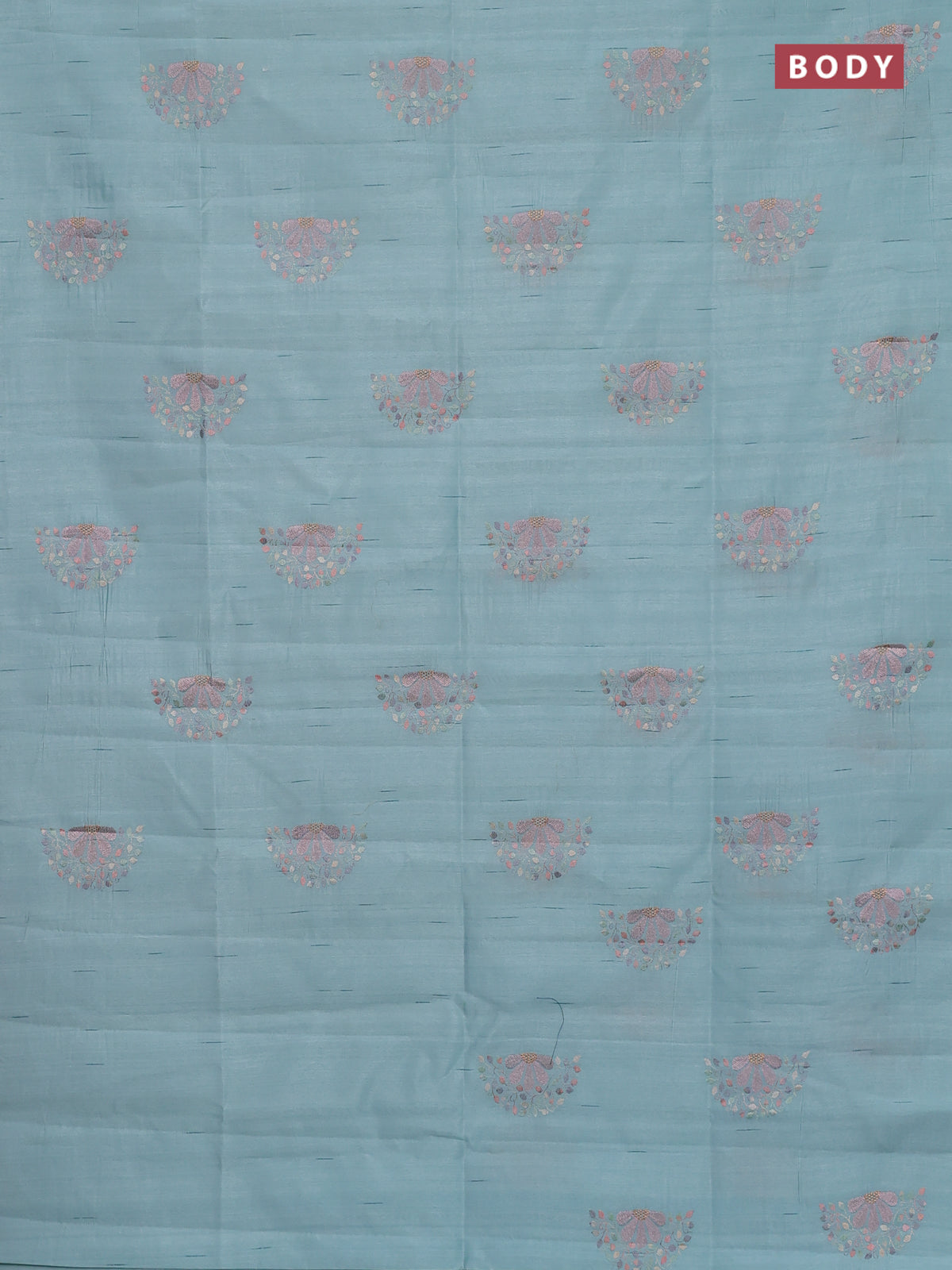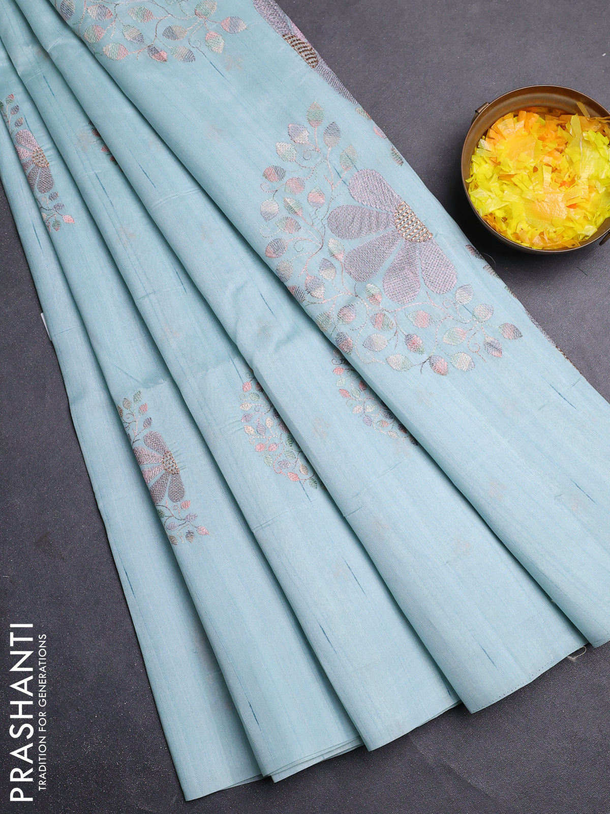 Semi raw silk saree teal blue with embroidery buttas in borderless style