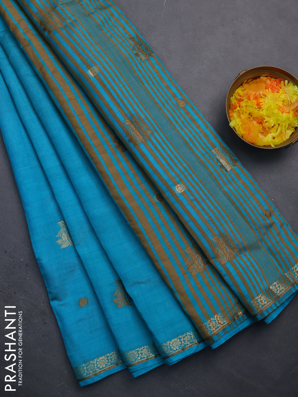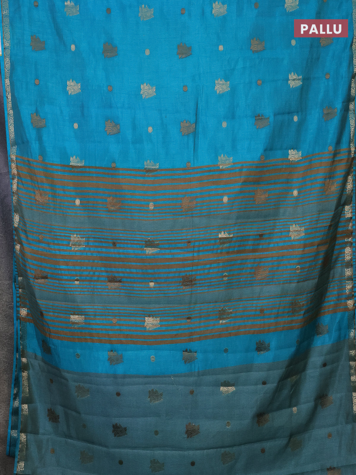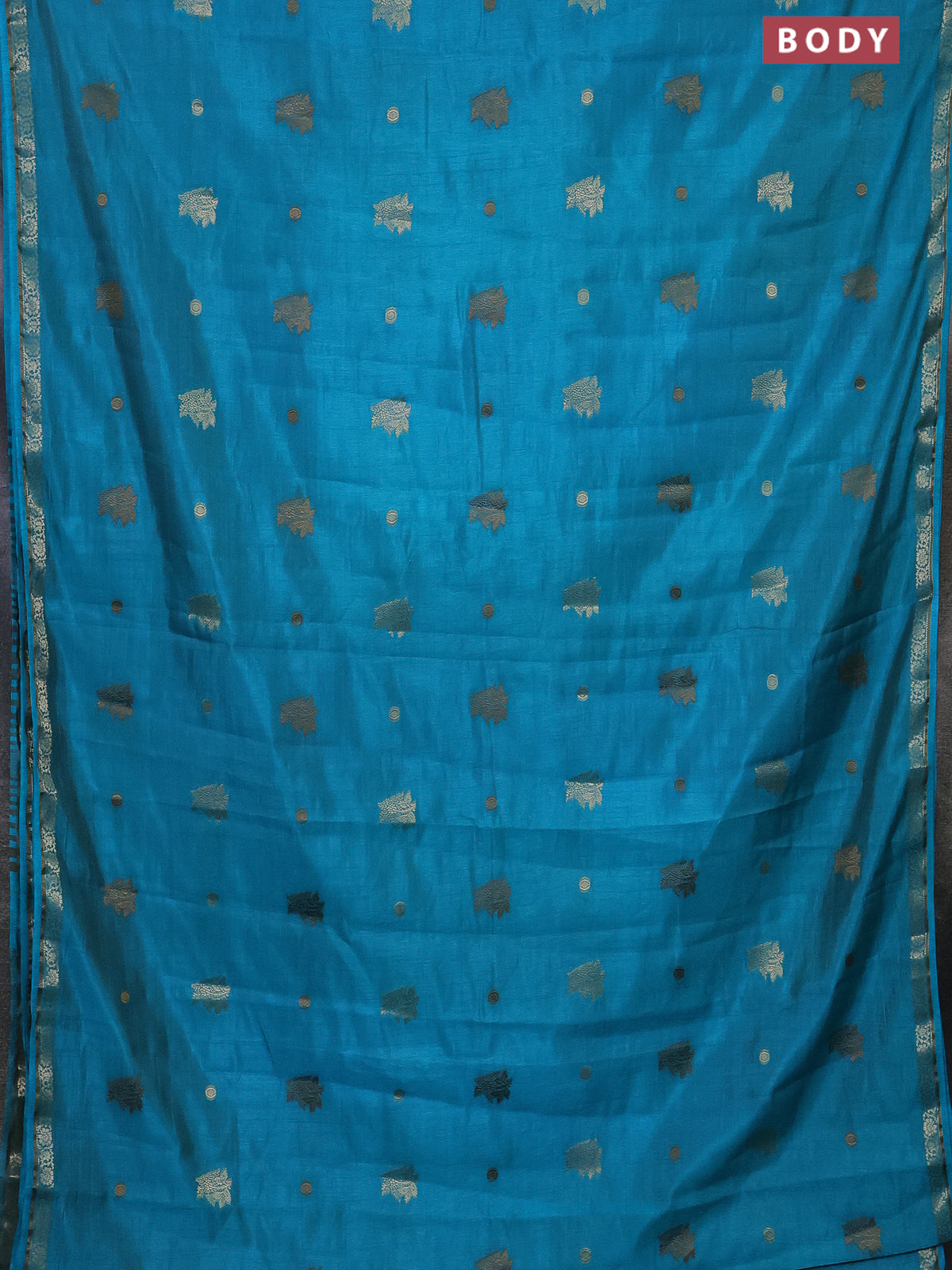 Semi raw silk saree teal blue with woven buttas and zari woven border