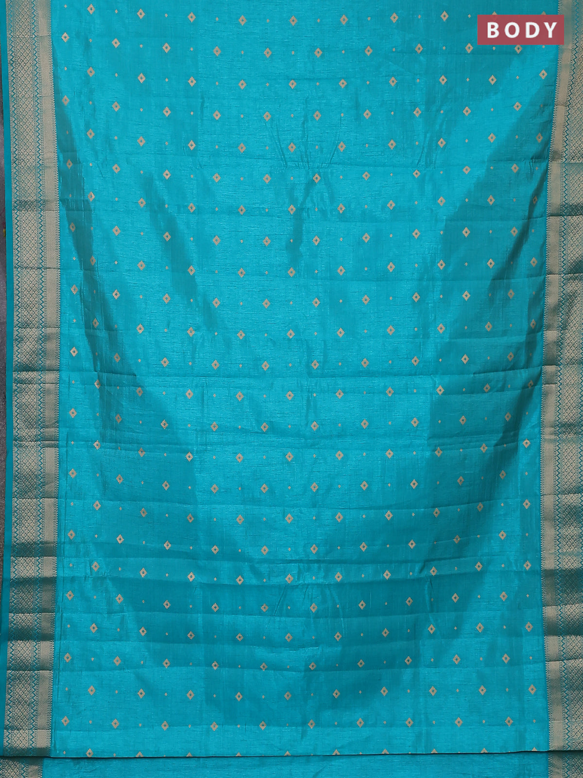 Semi raw silk saree teal blue with zari woven buttas and zari woven border