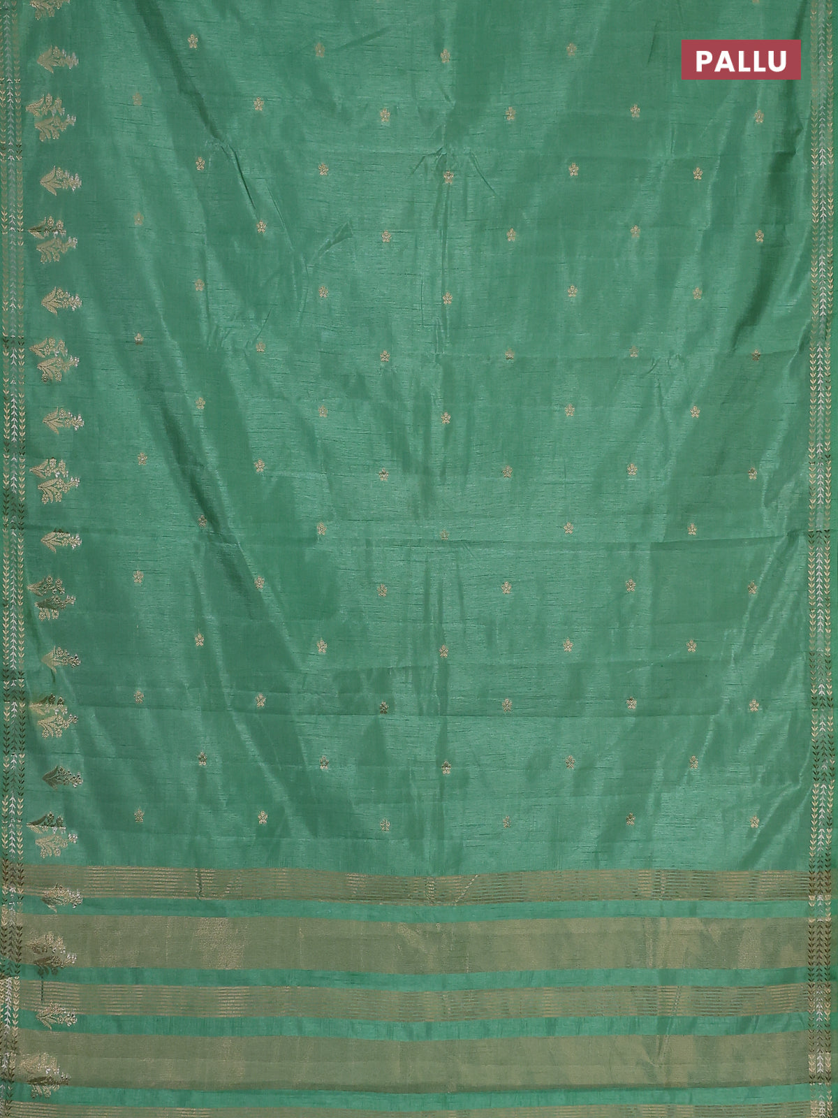 Semi raw silk saree teal green shade with zari woven buttas and zari woven border