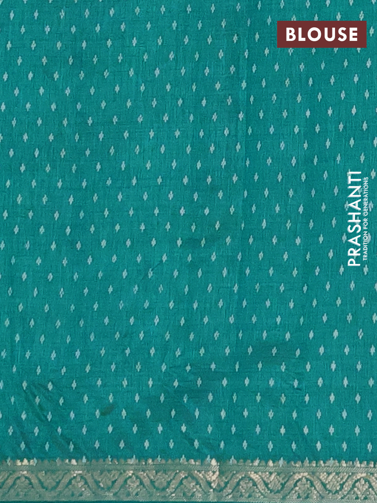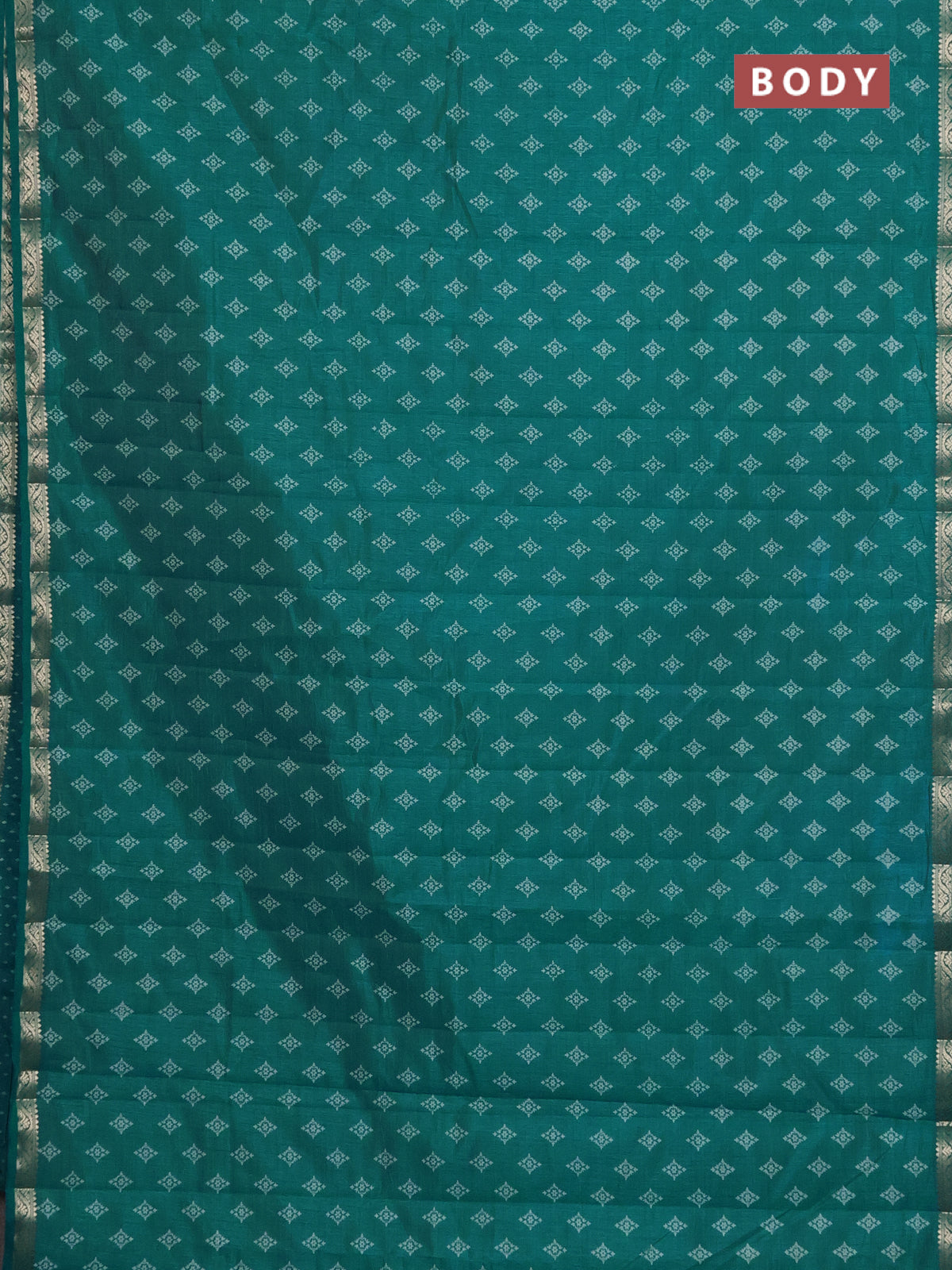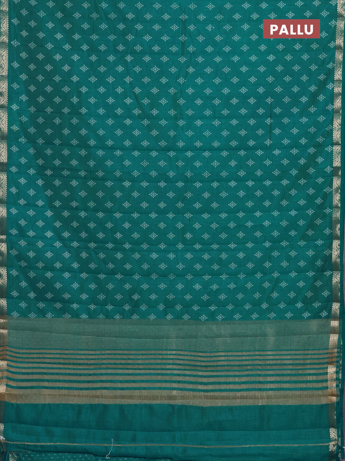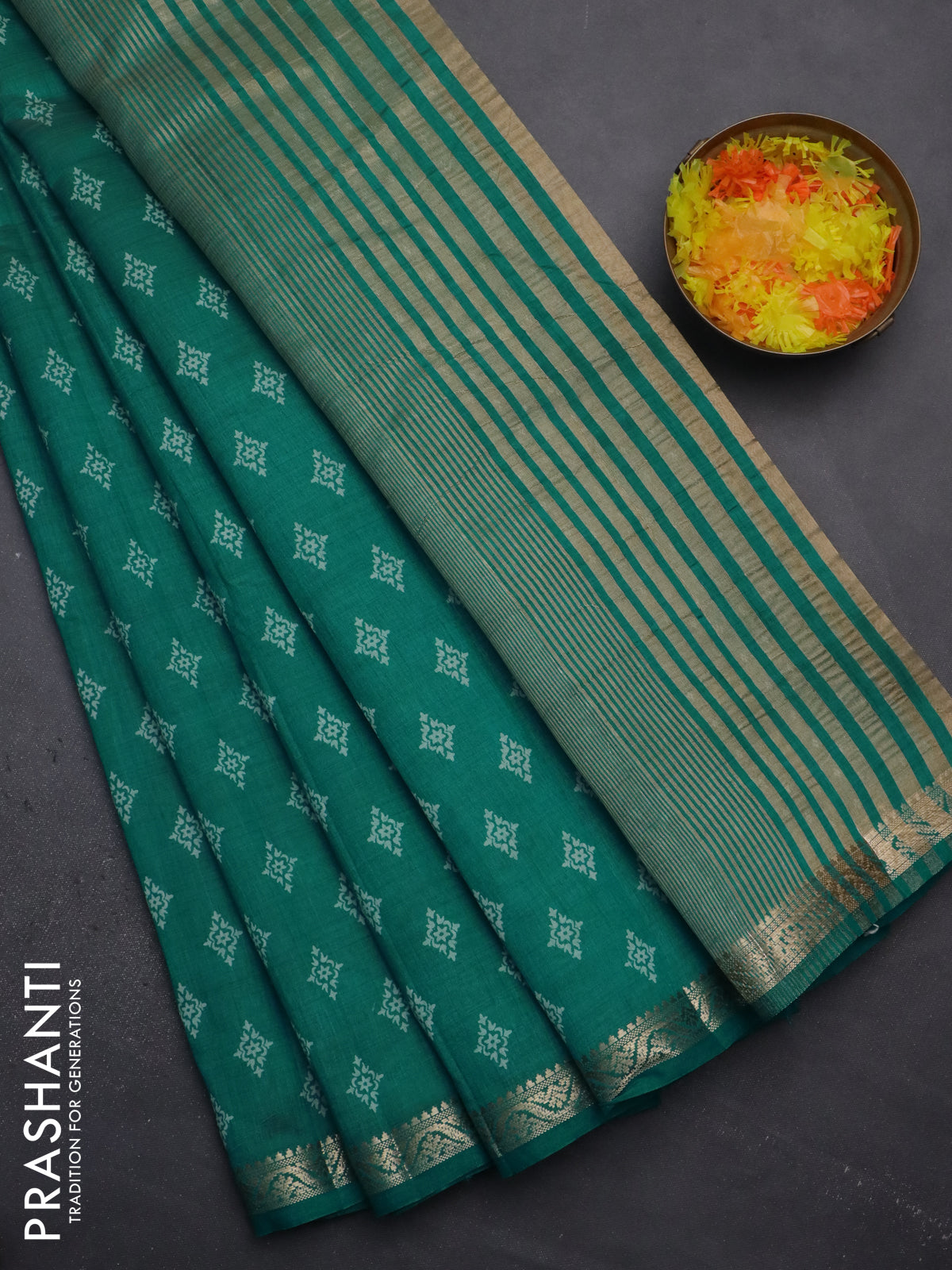 Semi raw silk saree teal green with allover butta prints and zari woven border