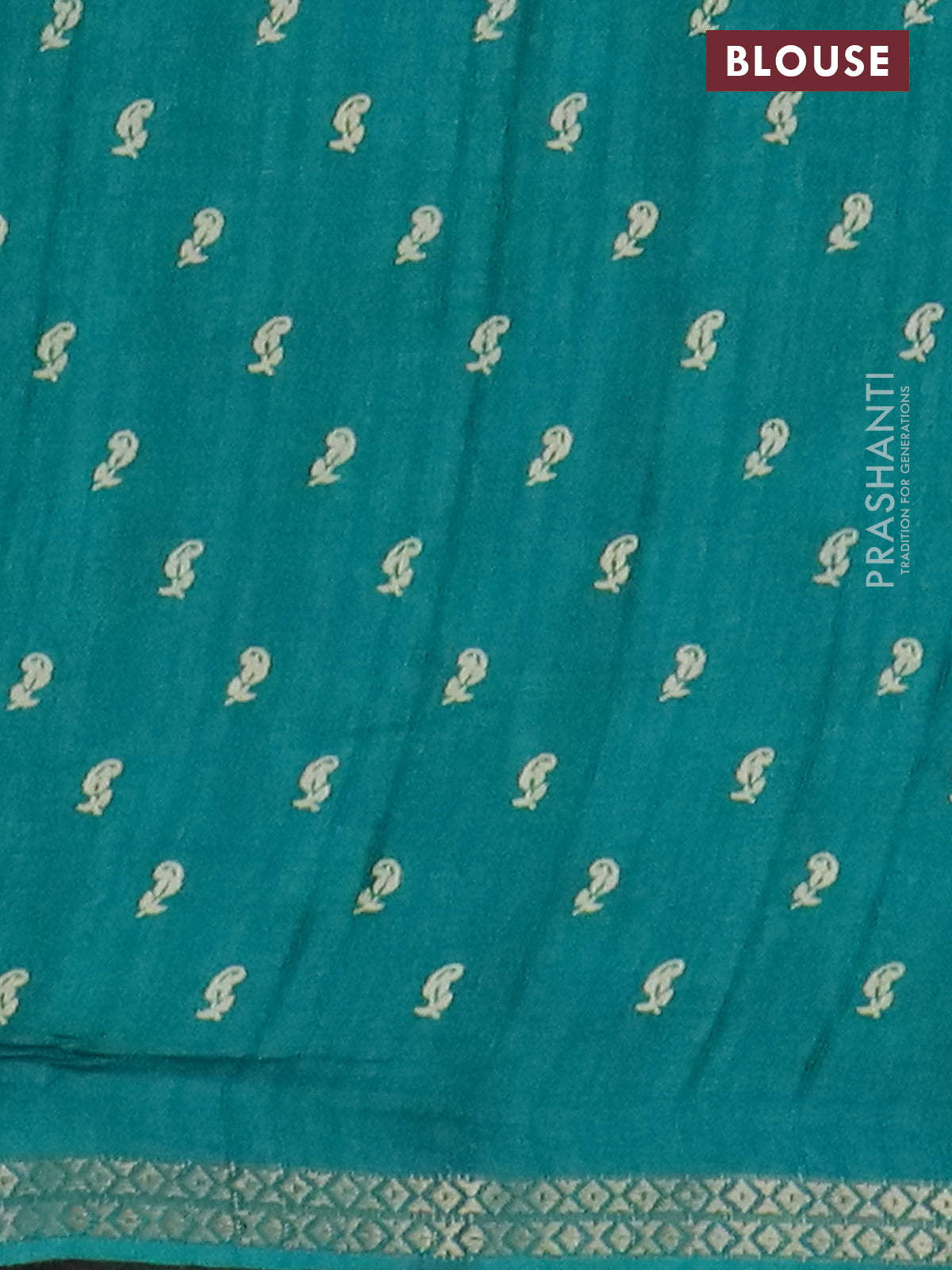 Semi raw silk saree teal green with butta prints and zari woven border