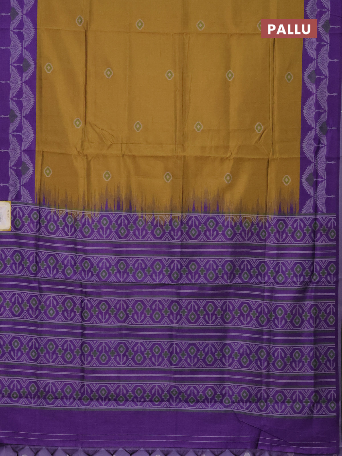 Semi sambalpuri silk saree dark mustard and violet with ikat buttas and thread woven border