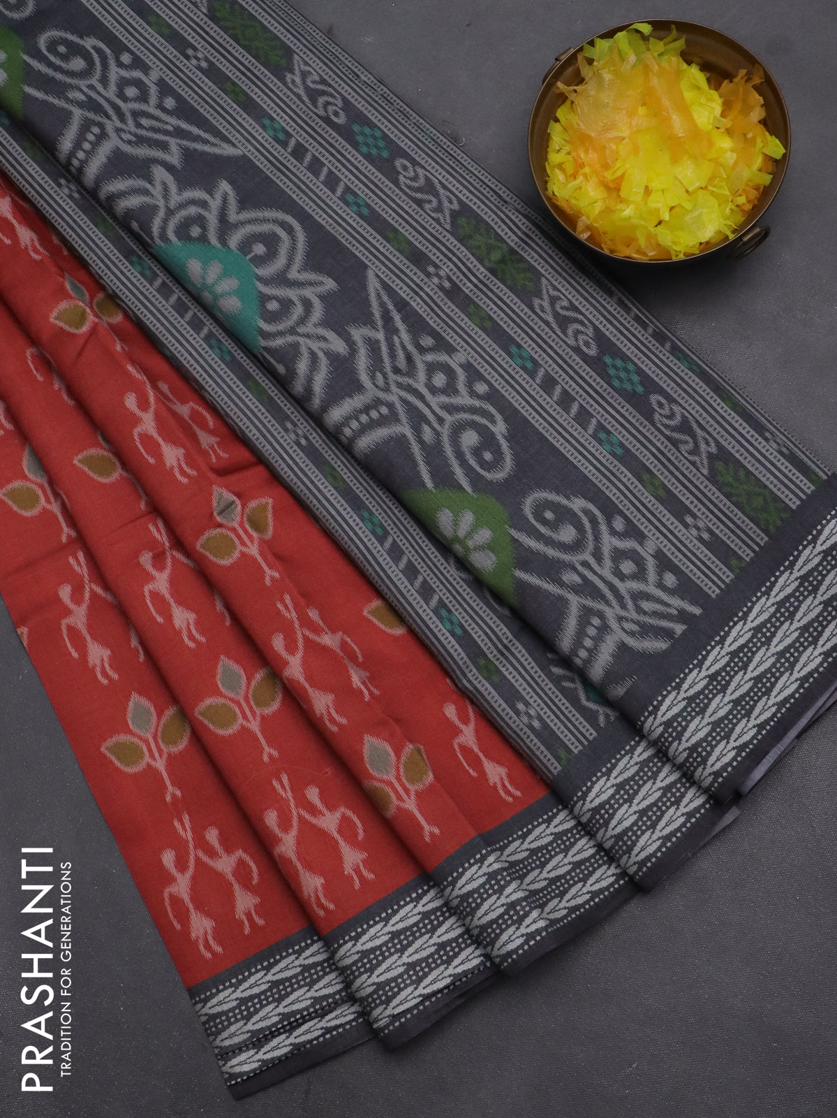 Semi sambalpuri silk saree maroon and grey with allover ikat weaves and thread woven border