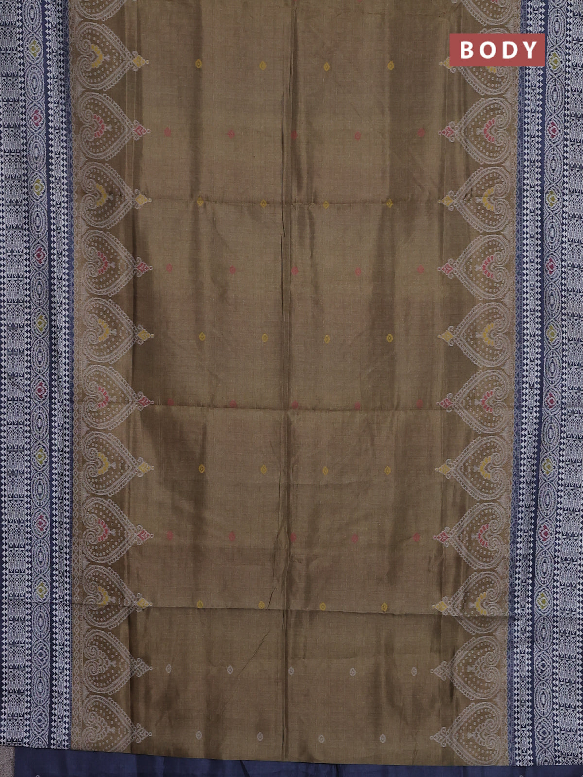 Semi sambalpuri silk saree olive green and navy blue with allover ikat buttas and thread woven border