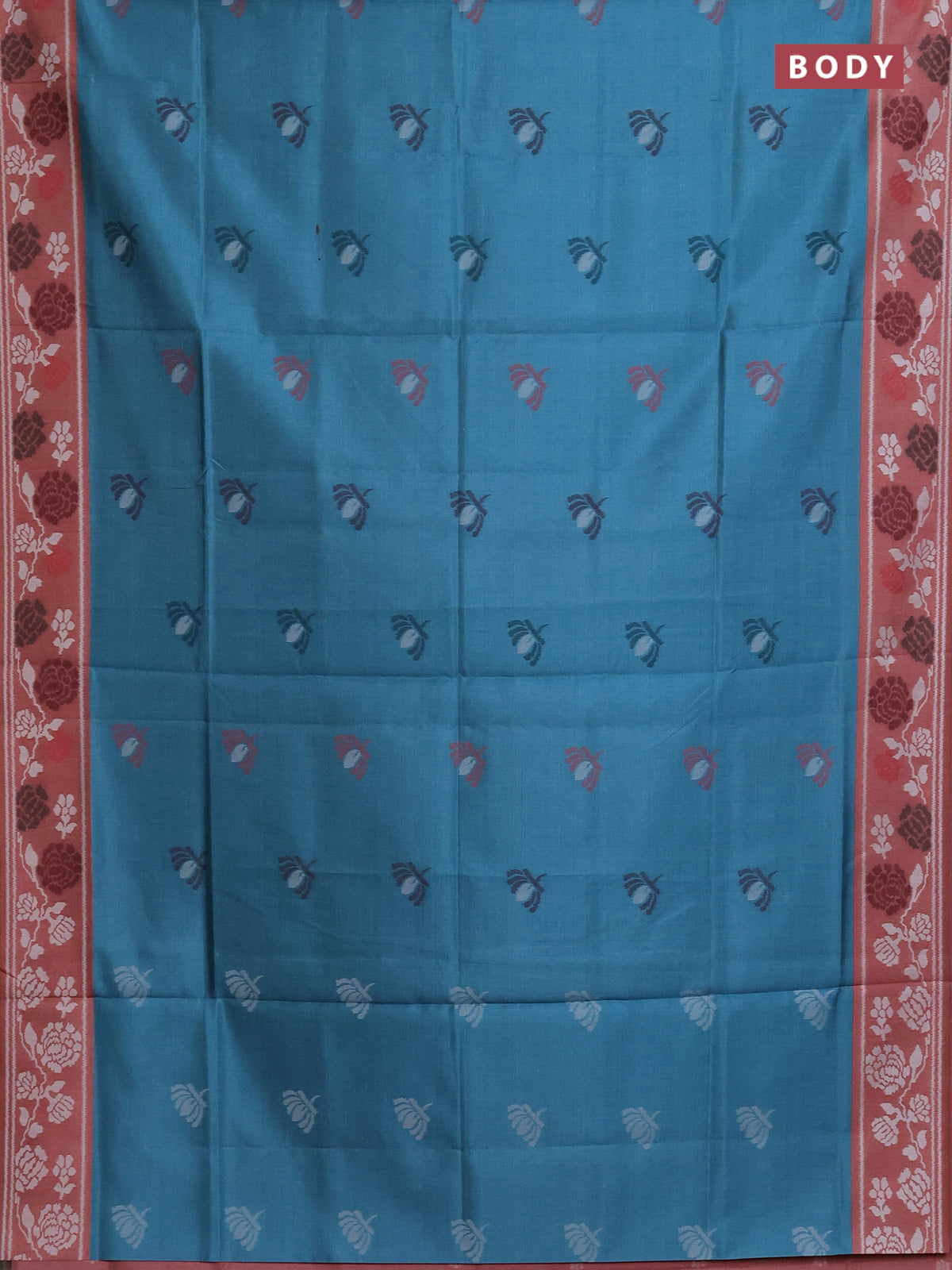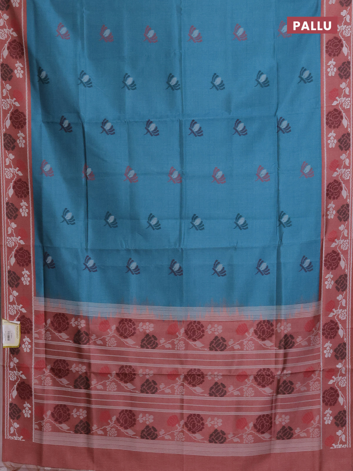 Semi sambalpuri silk saree peacock green and pastel maroon with floral ikat buttas and thread woven border