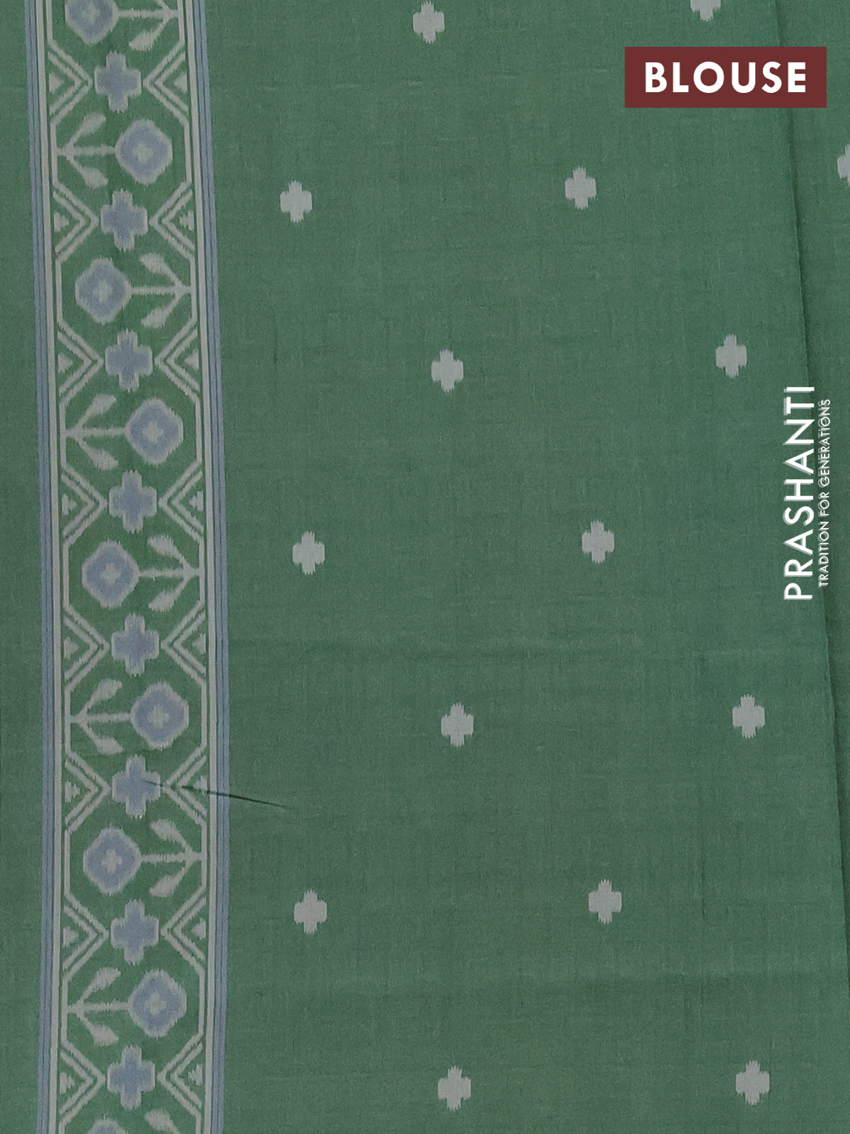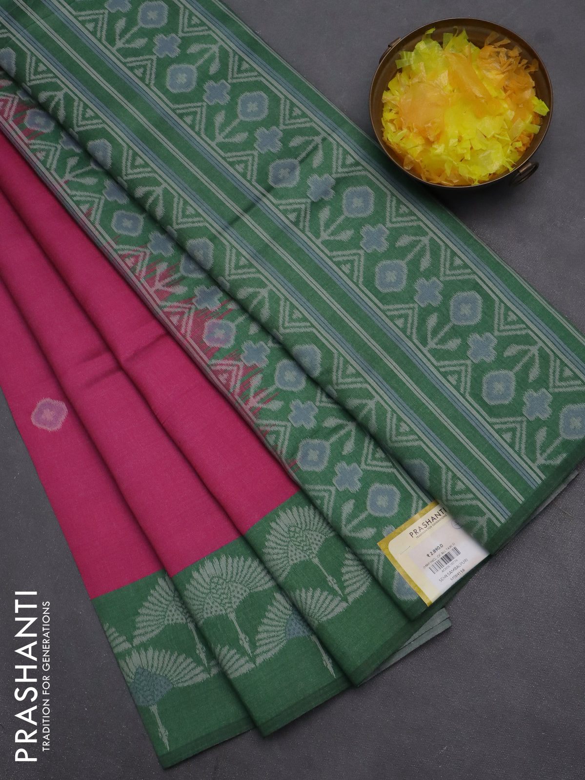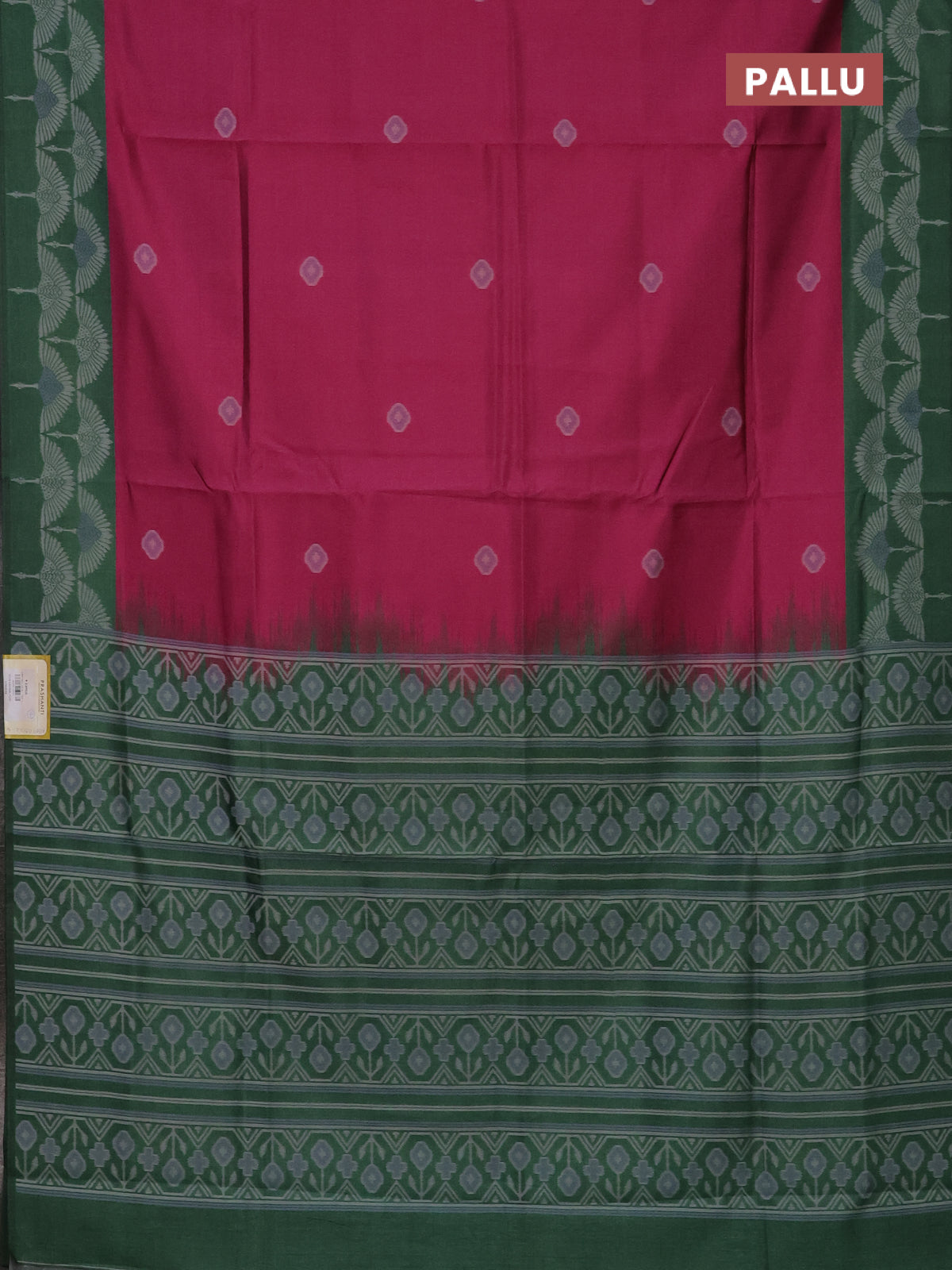 Semi sambalpuri silk saree pink and green with ikat buttas and thread woven border