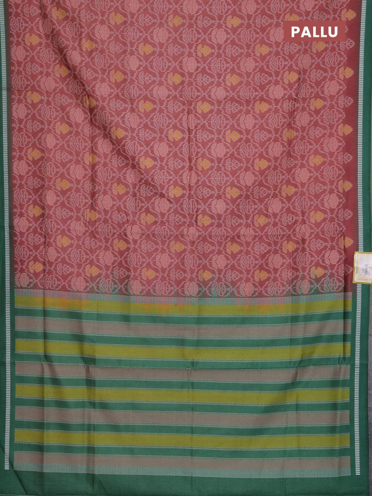 Semi sambalpuri silk saree rust shade and green with allover ikat weaves and thread woven border