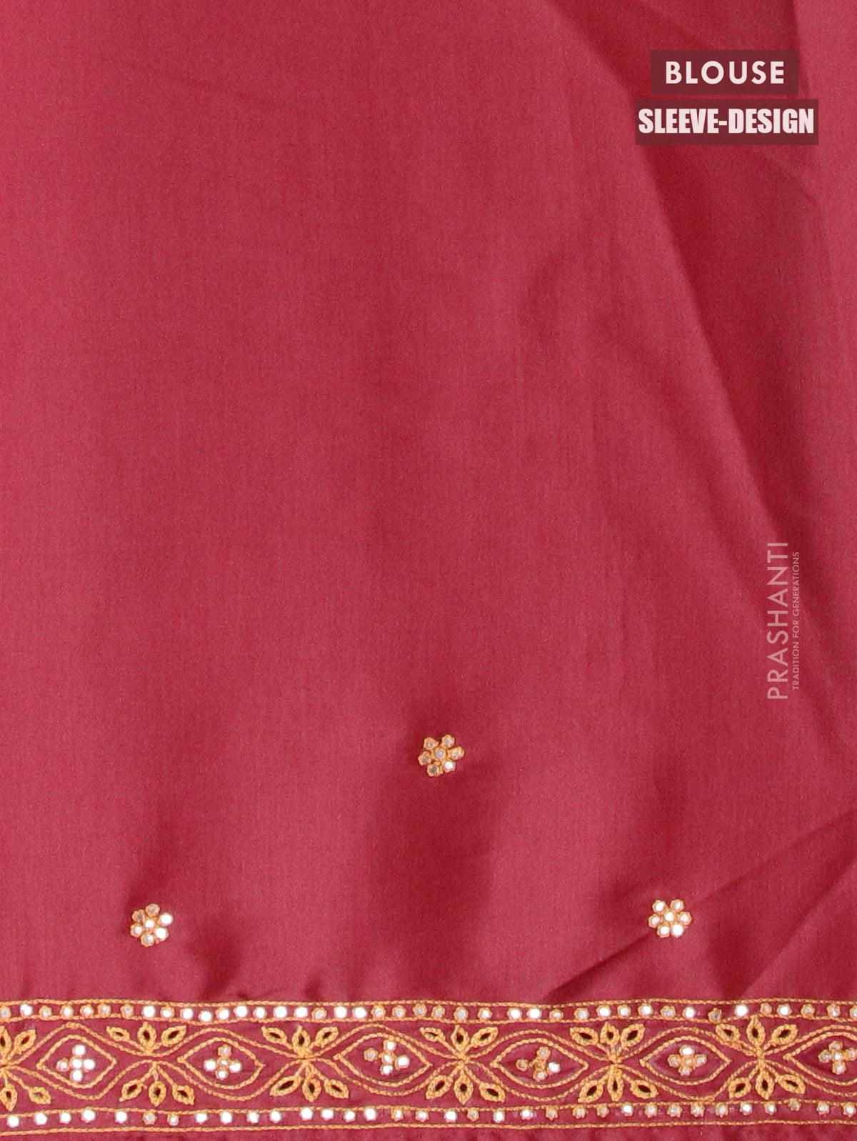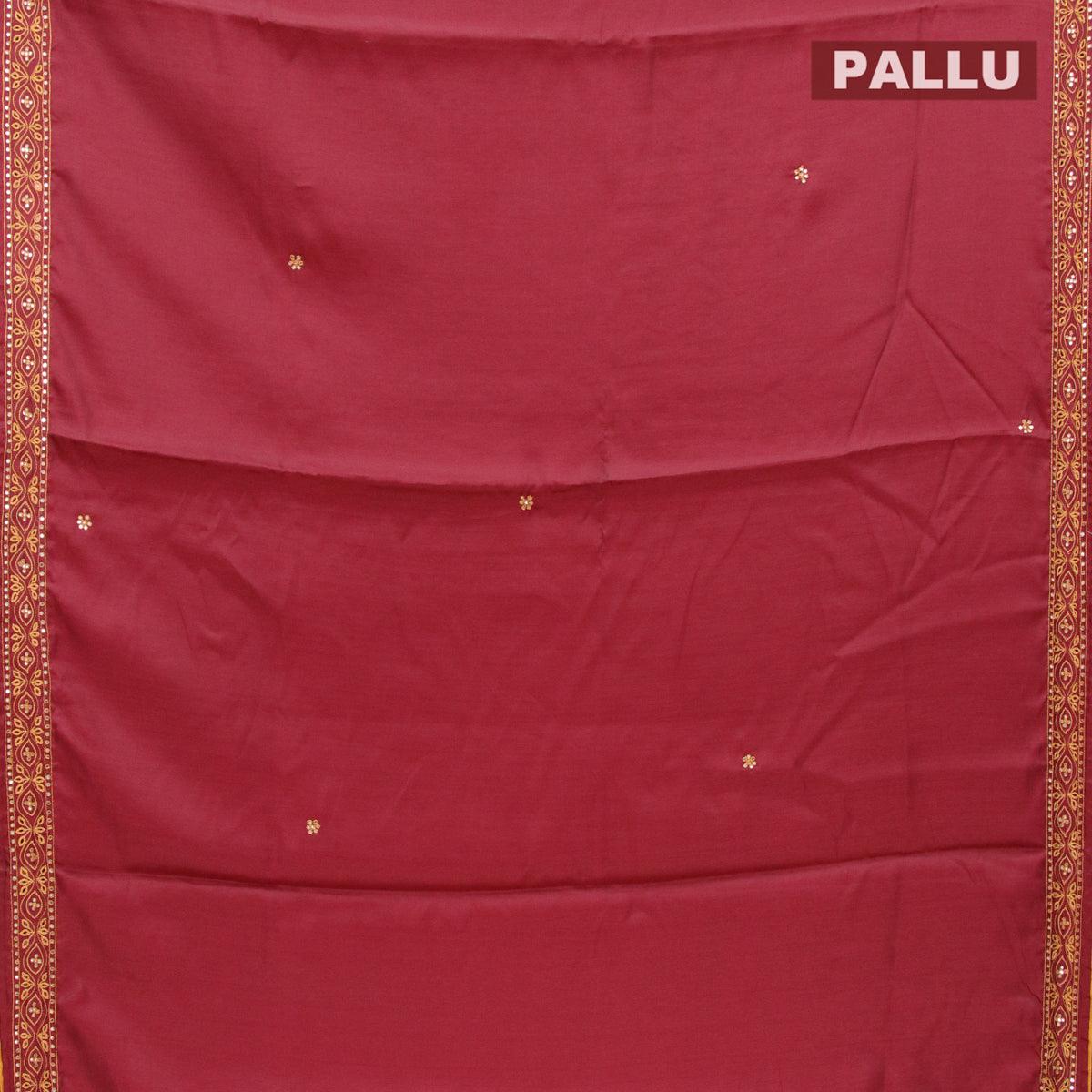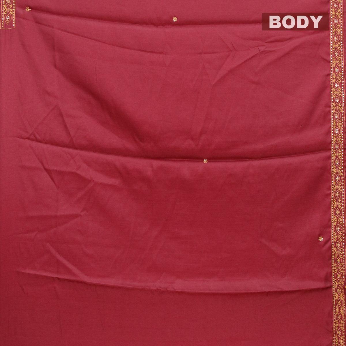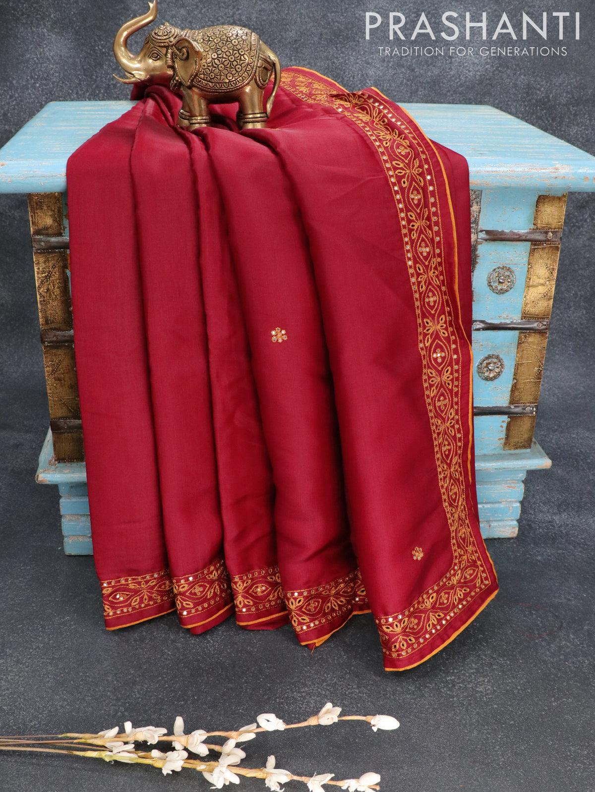 Semi satin silk saree maroon and with mirror embroidery and cut work