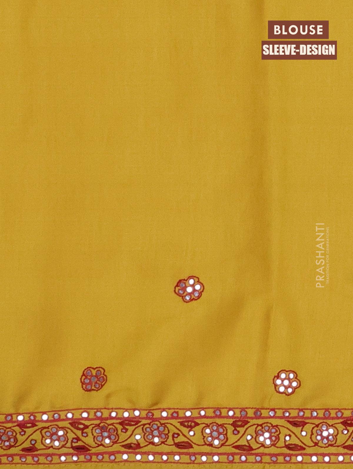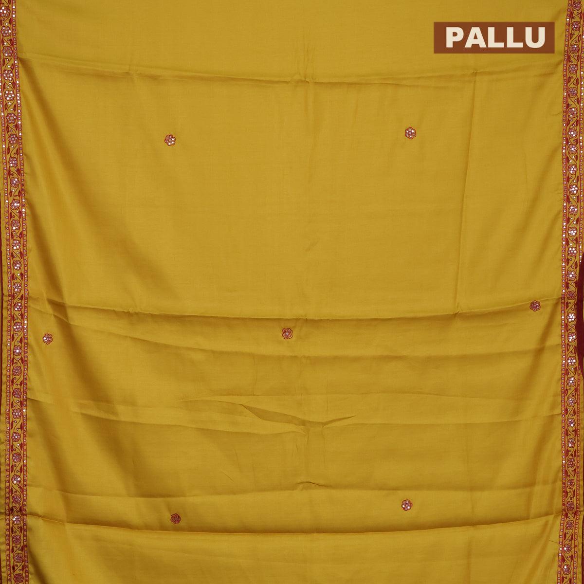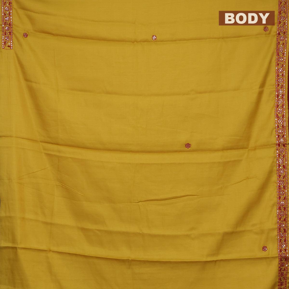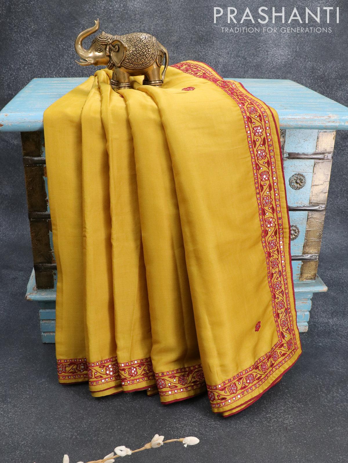 Semi satin silk saree yellow and with mirror embroided and cut work border