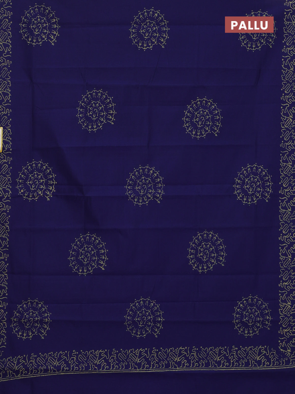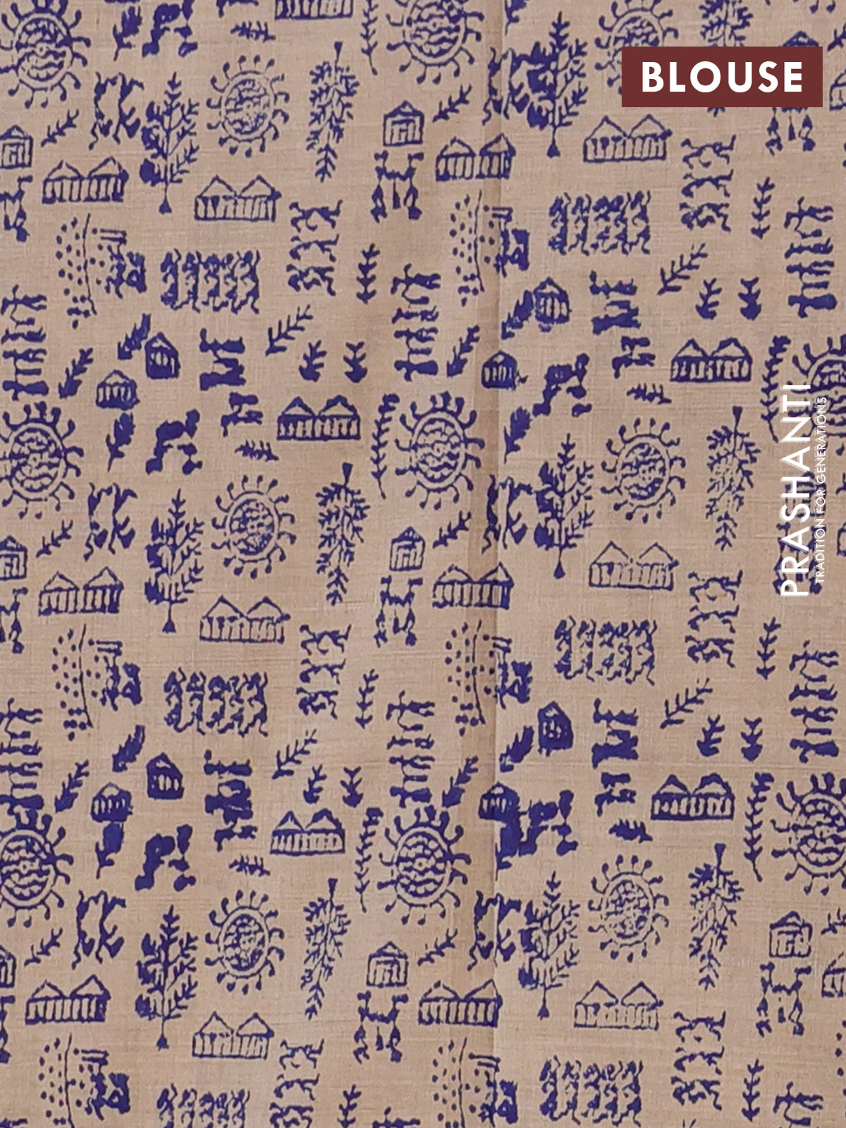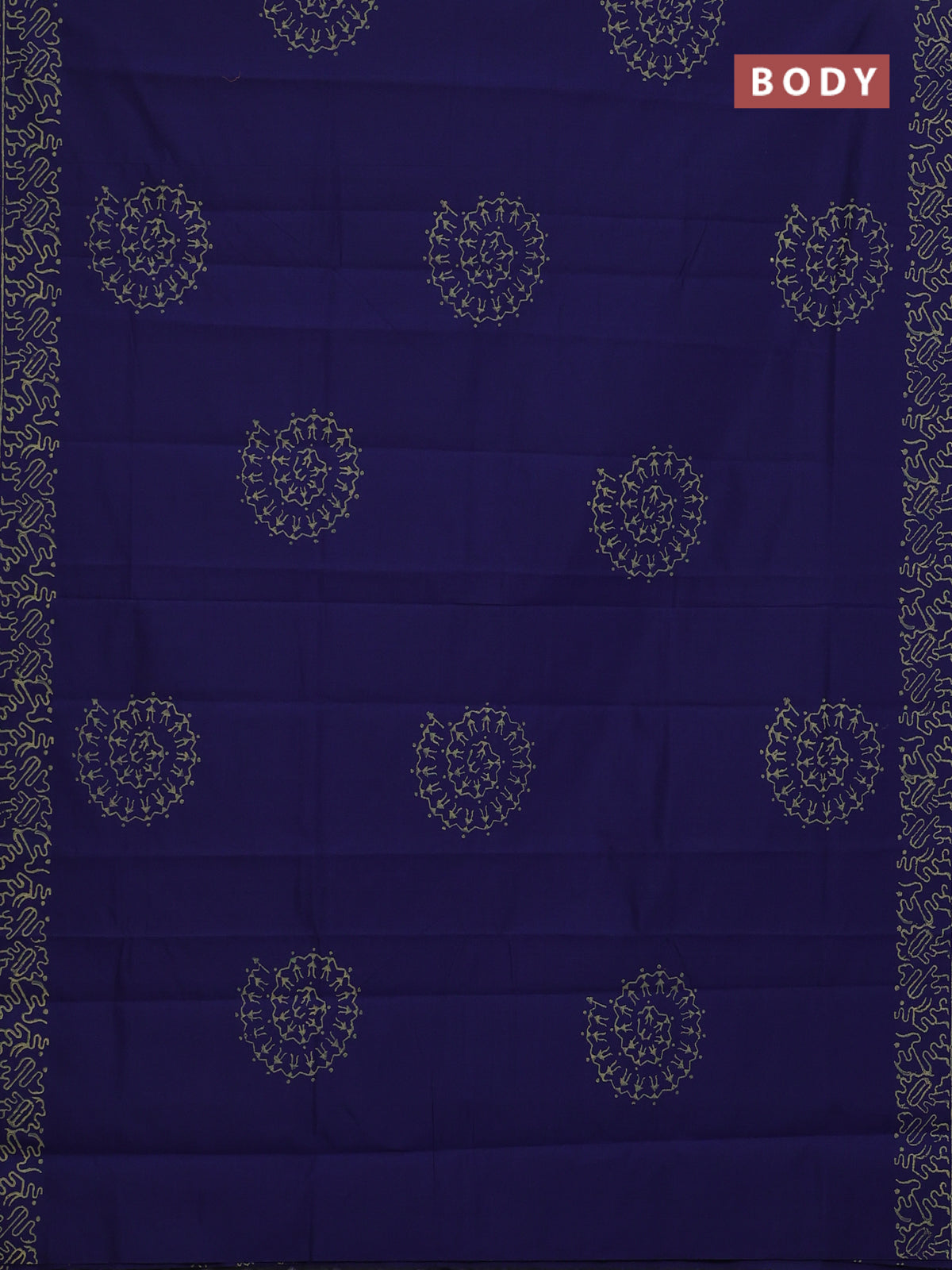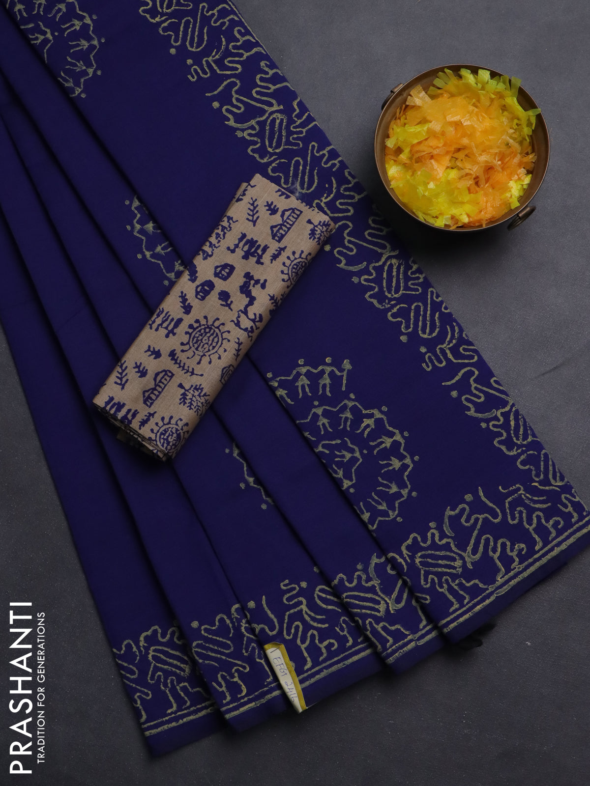 Semi silk cotton saree blue and beige with butta prints and printed border