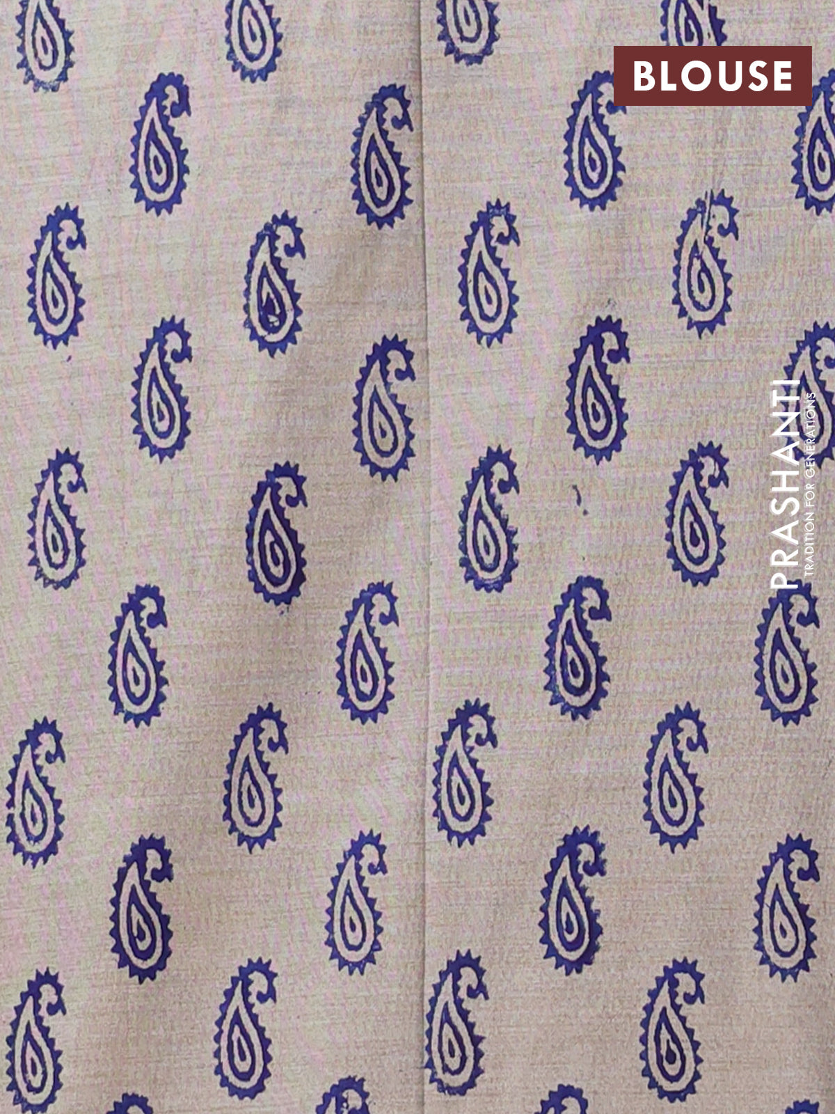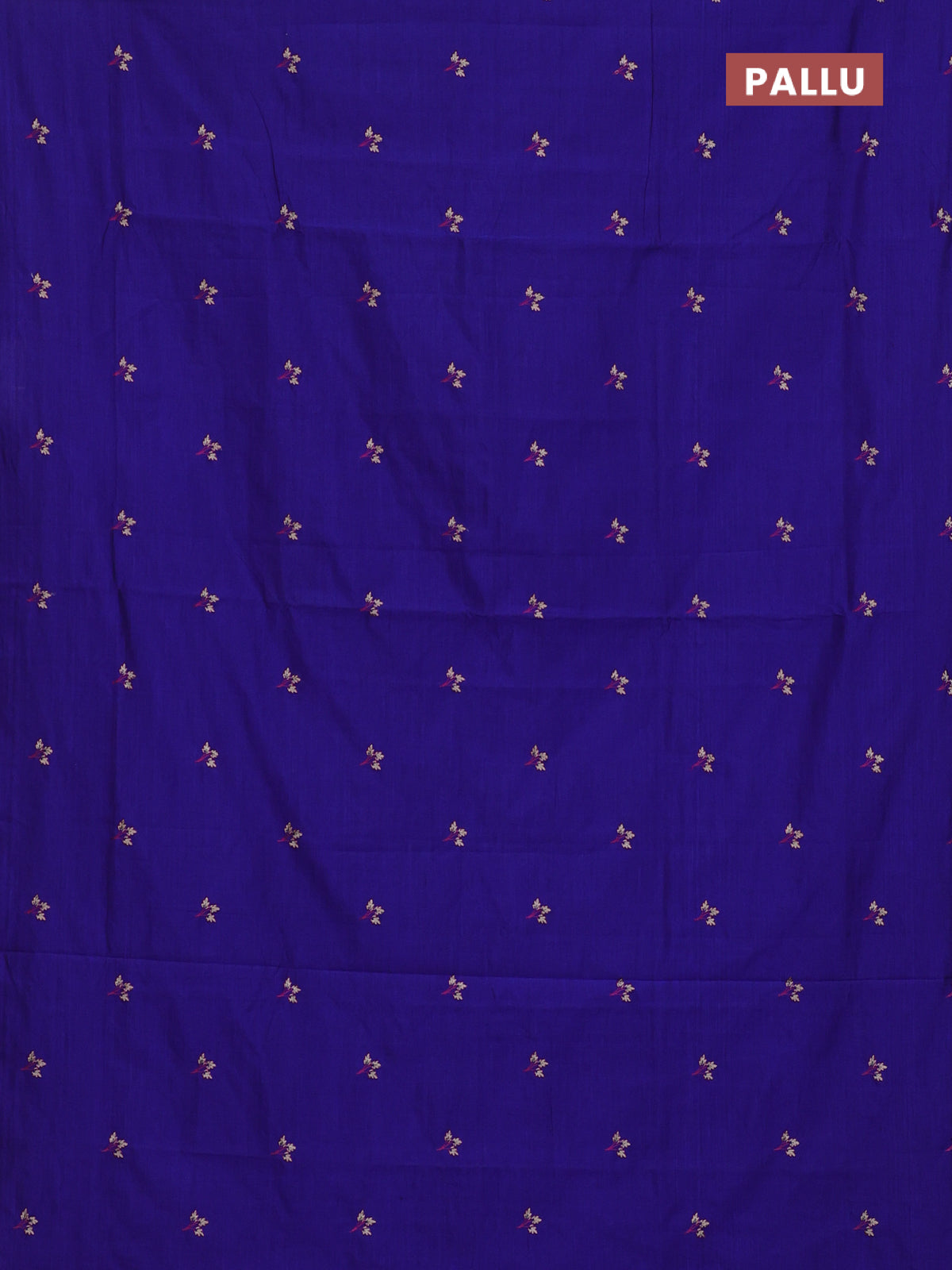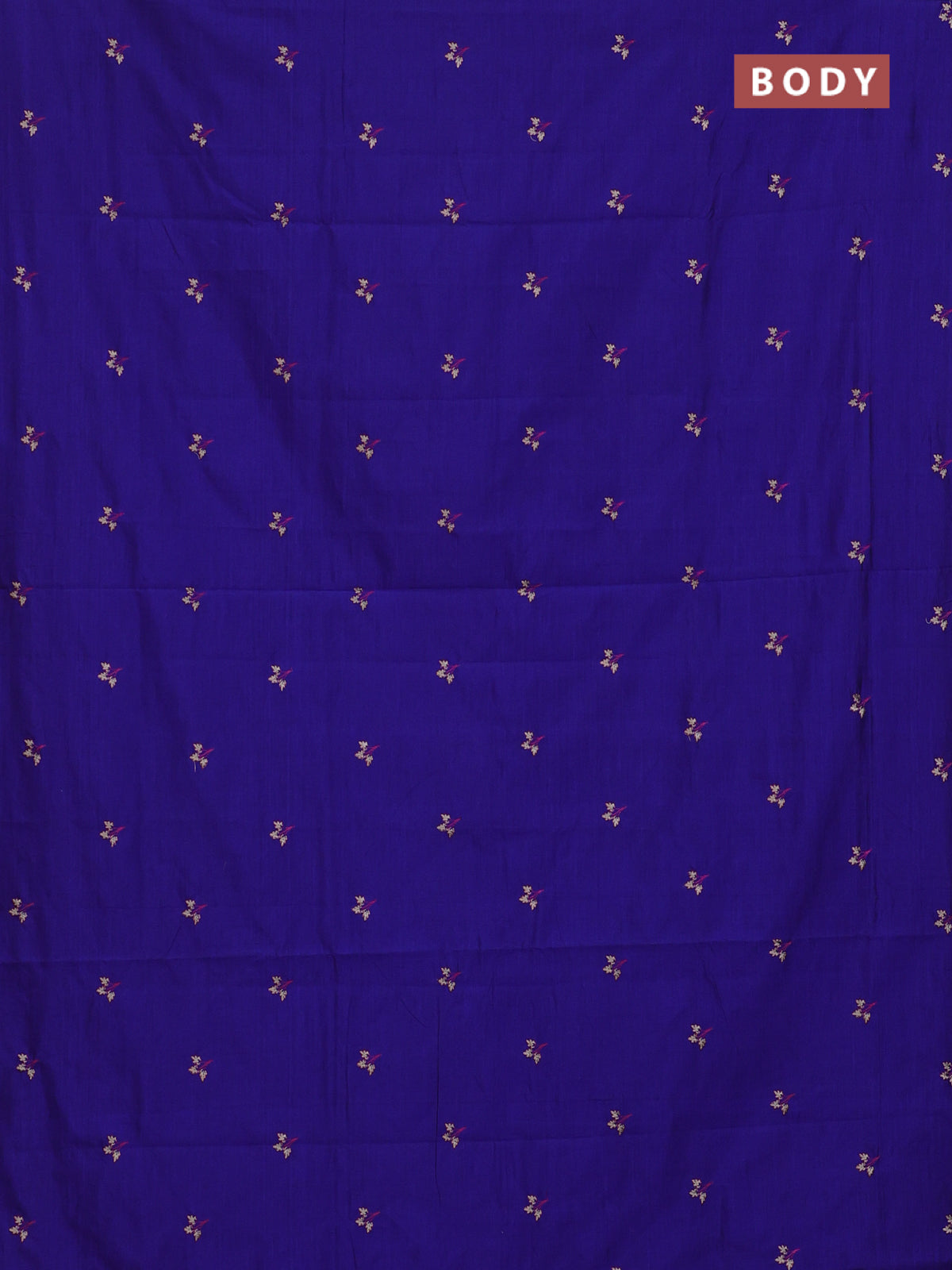 Semi silk cotton saree blue and grey with embroided buttas in borderless style