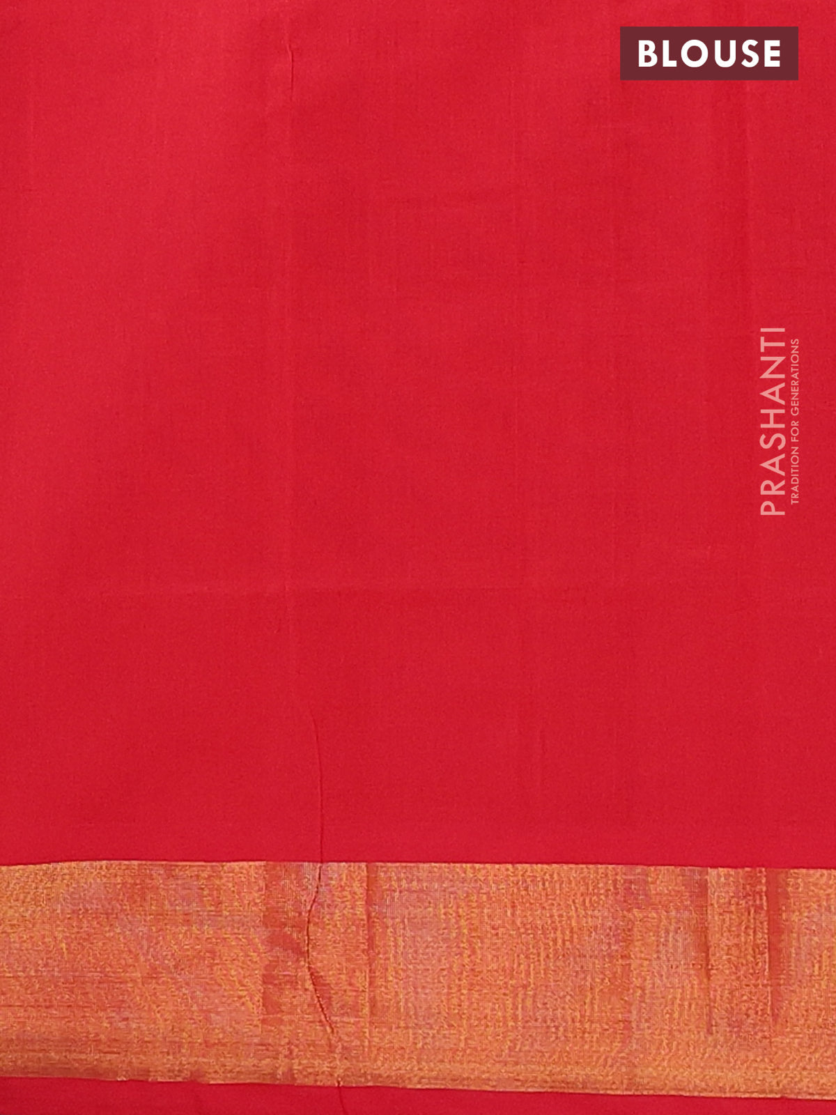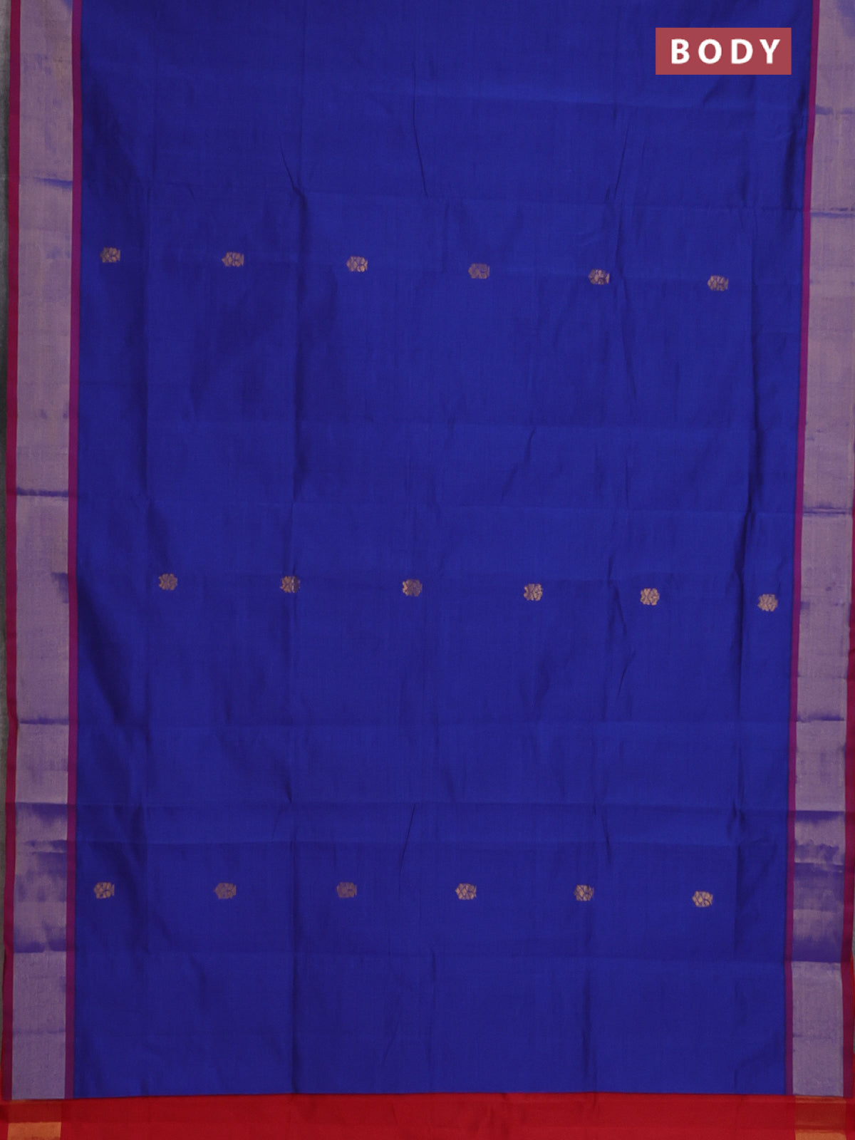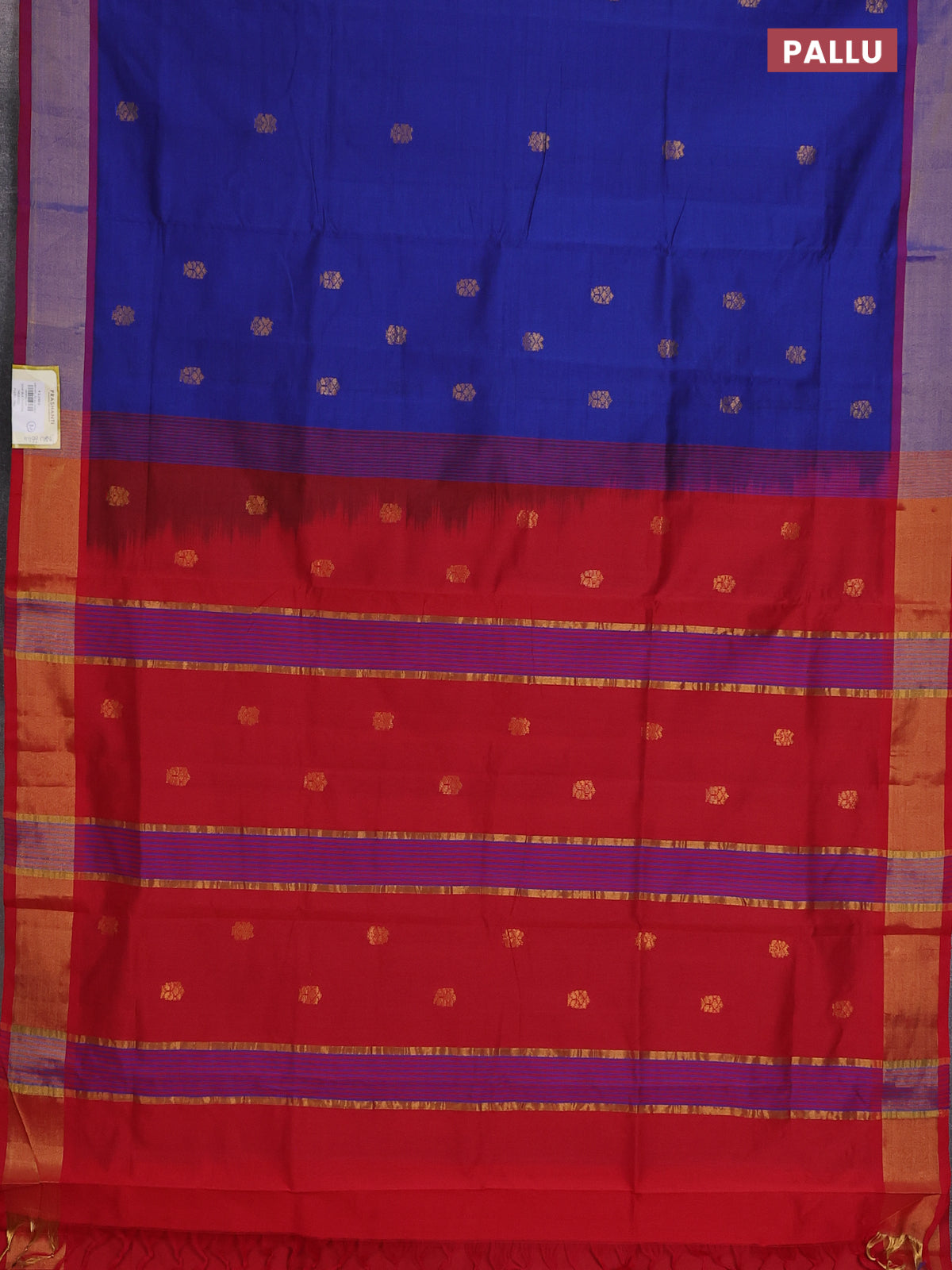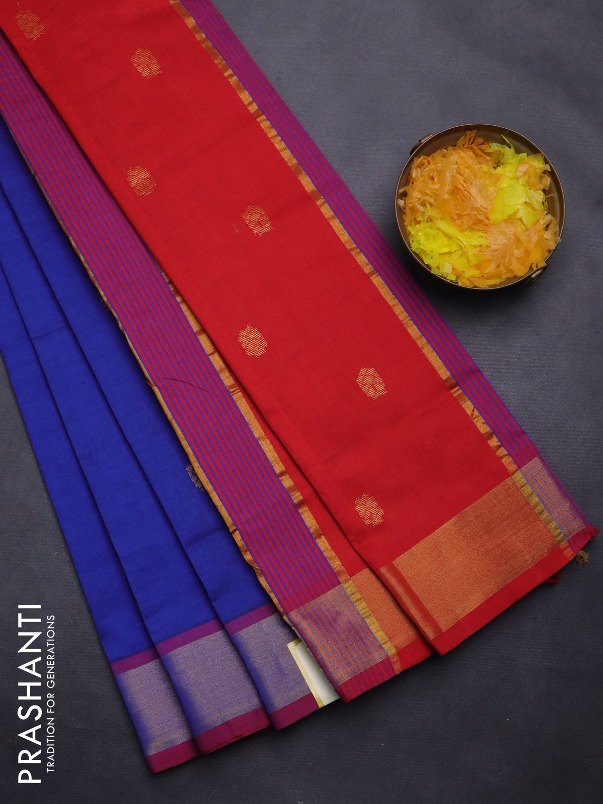 Semi silk cotton saree blue and red with zari woven buttas and zari woven border