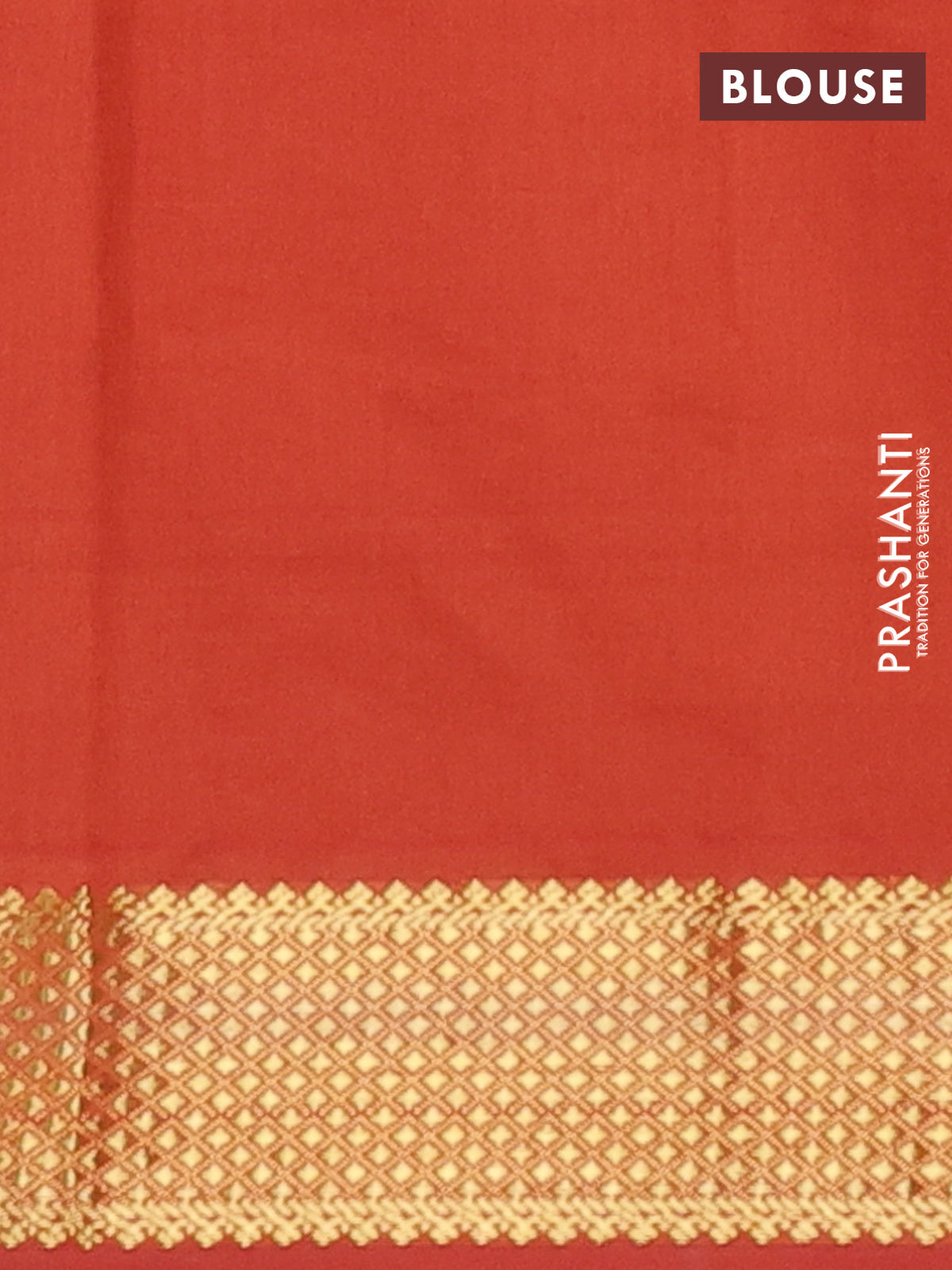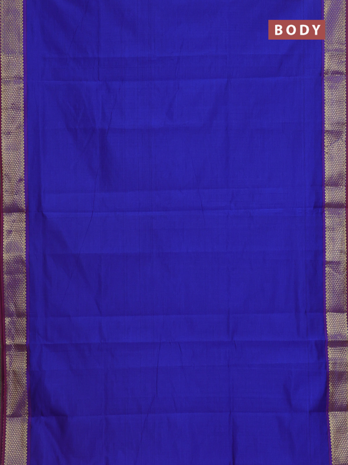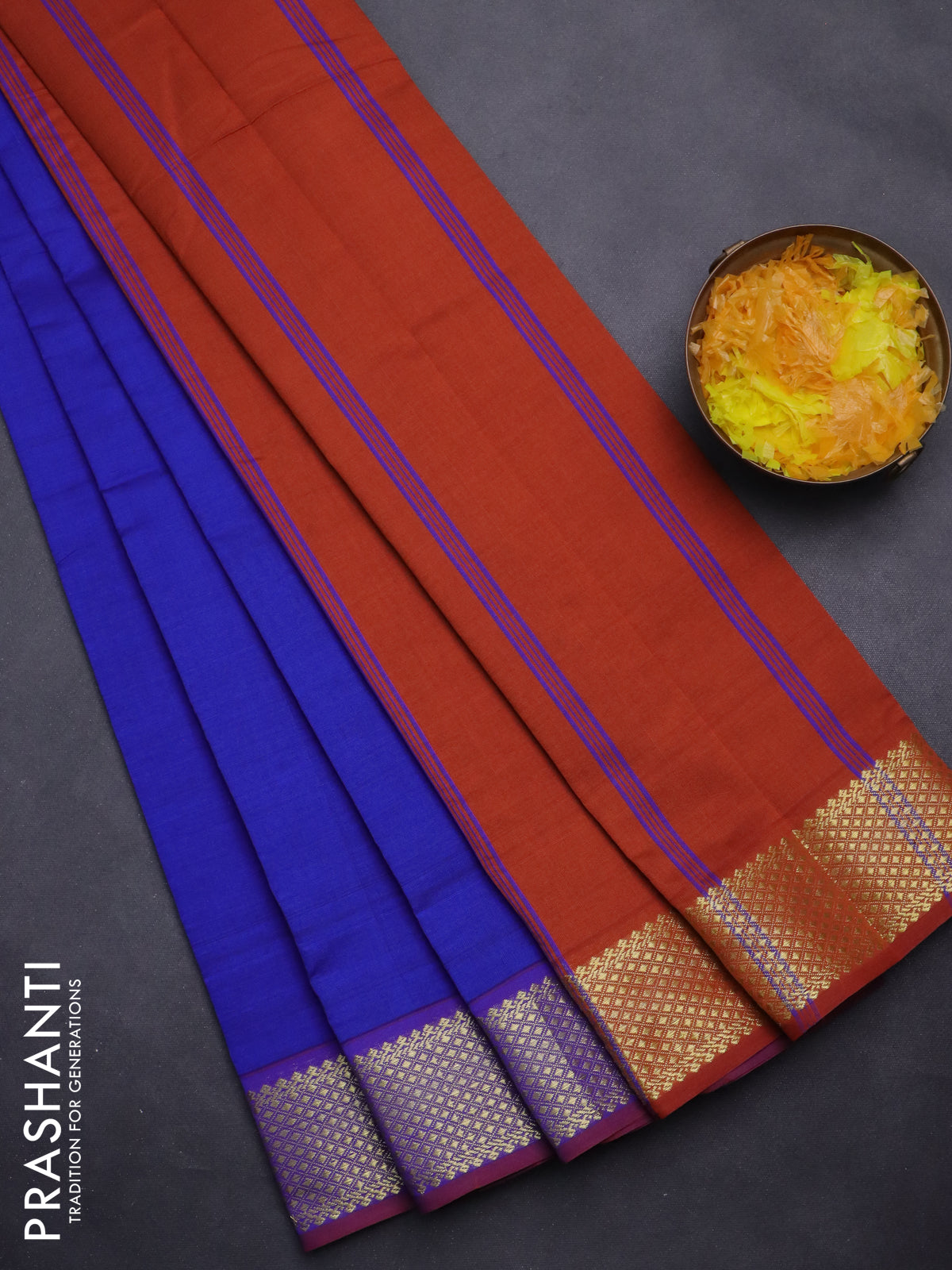 Semi silk cotton saree blue and rust shade with plain body and zari woven border