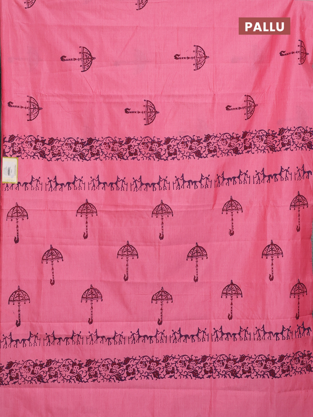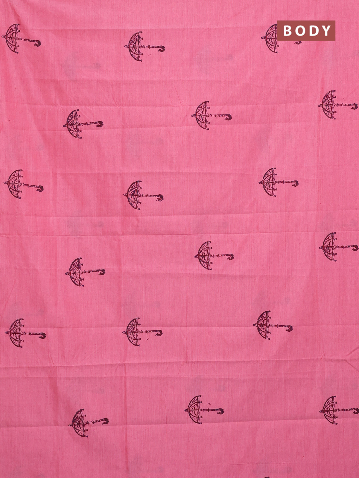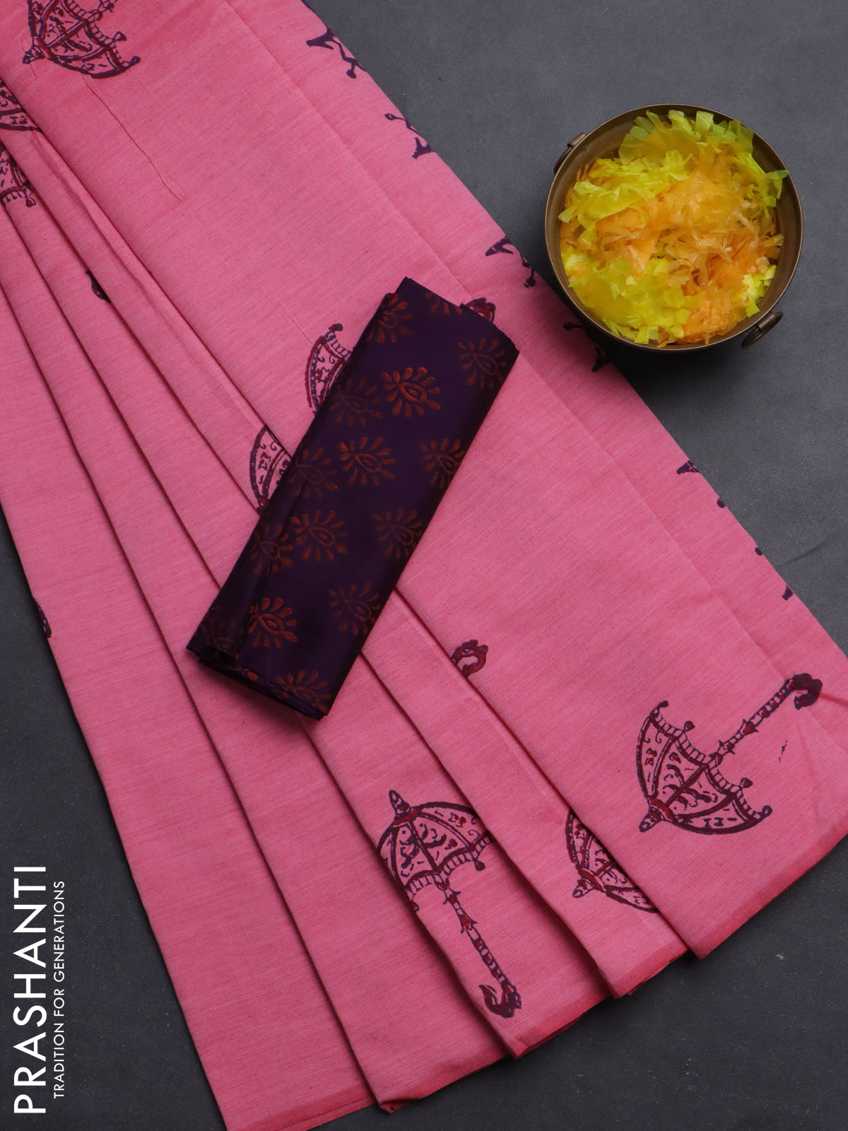 Semi silk cotton saree candy pink and deep wine with butta prints in borderless style