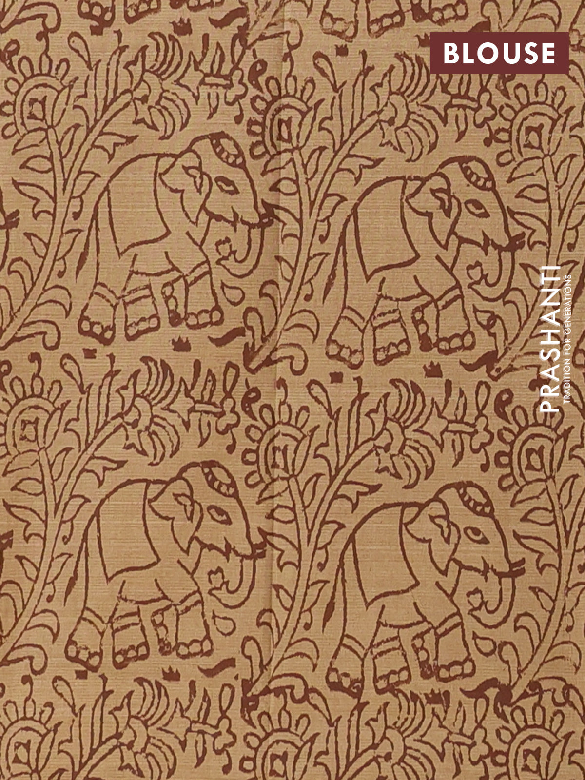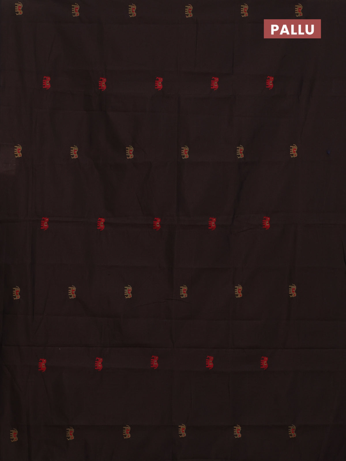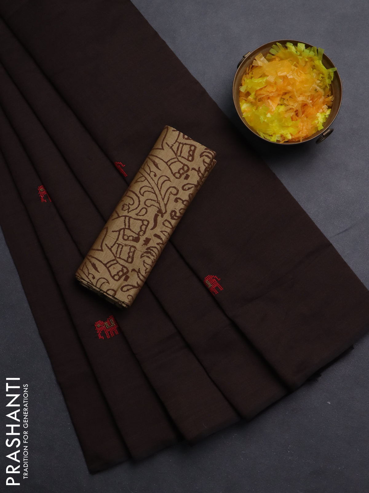 Semi silk cotton saree coffee brown and beige with embroided buttas in borderless style