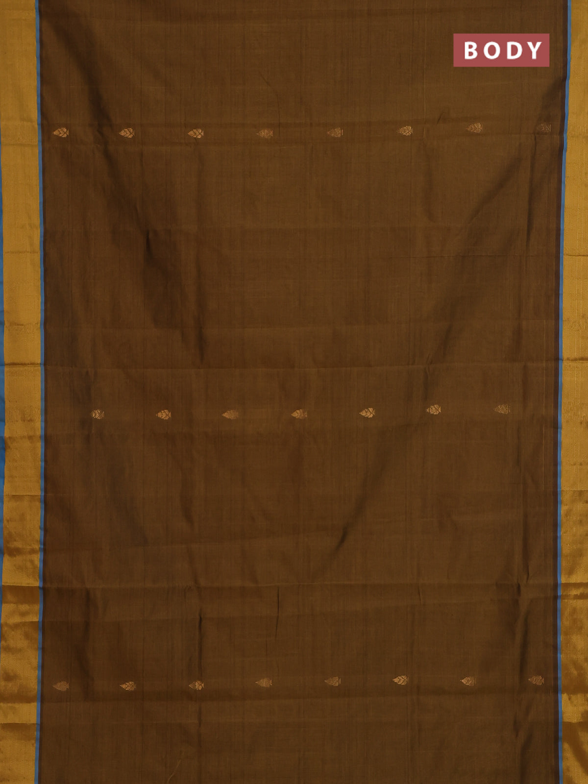 Semi silk cotton saree dark mehendi green and cs blue with zari woven buttas and zari woven border