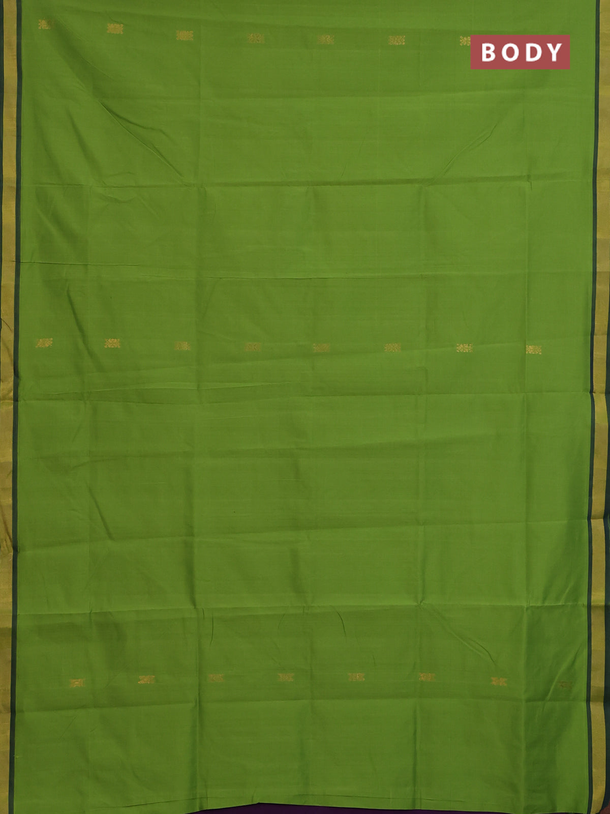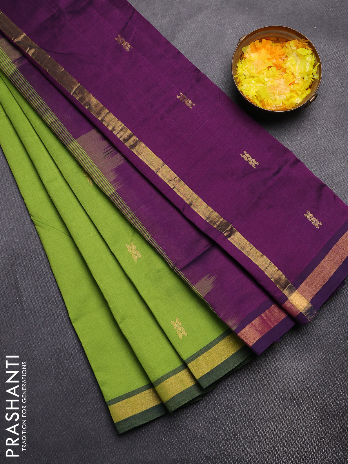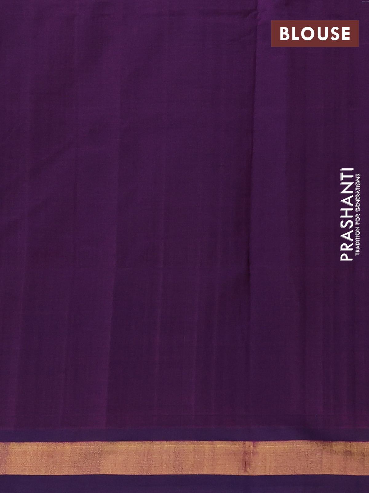 Semi silk cotton saree deep purple and light green with zari woven buttas and zari woven border