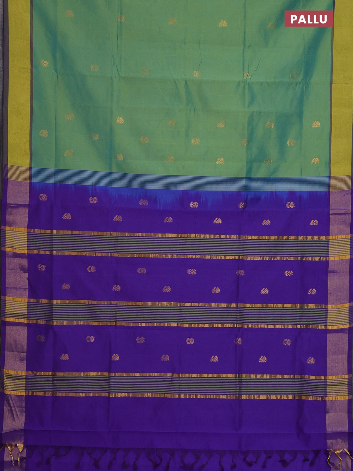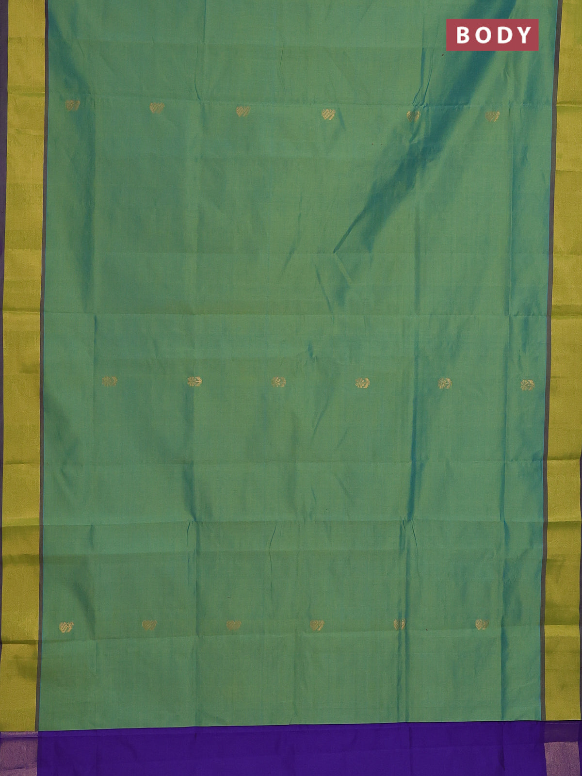 Semi silk cotton saree dual shade of green and blue with zari woven buttas and zari woven border