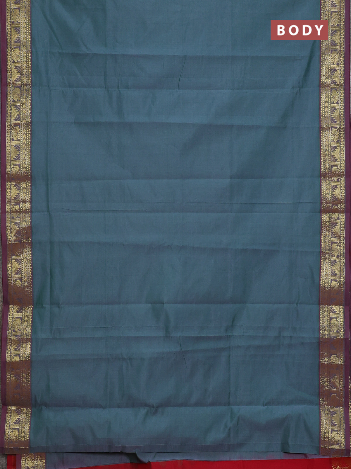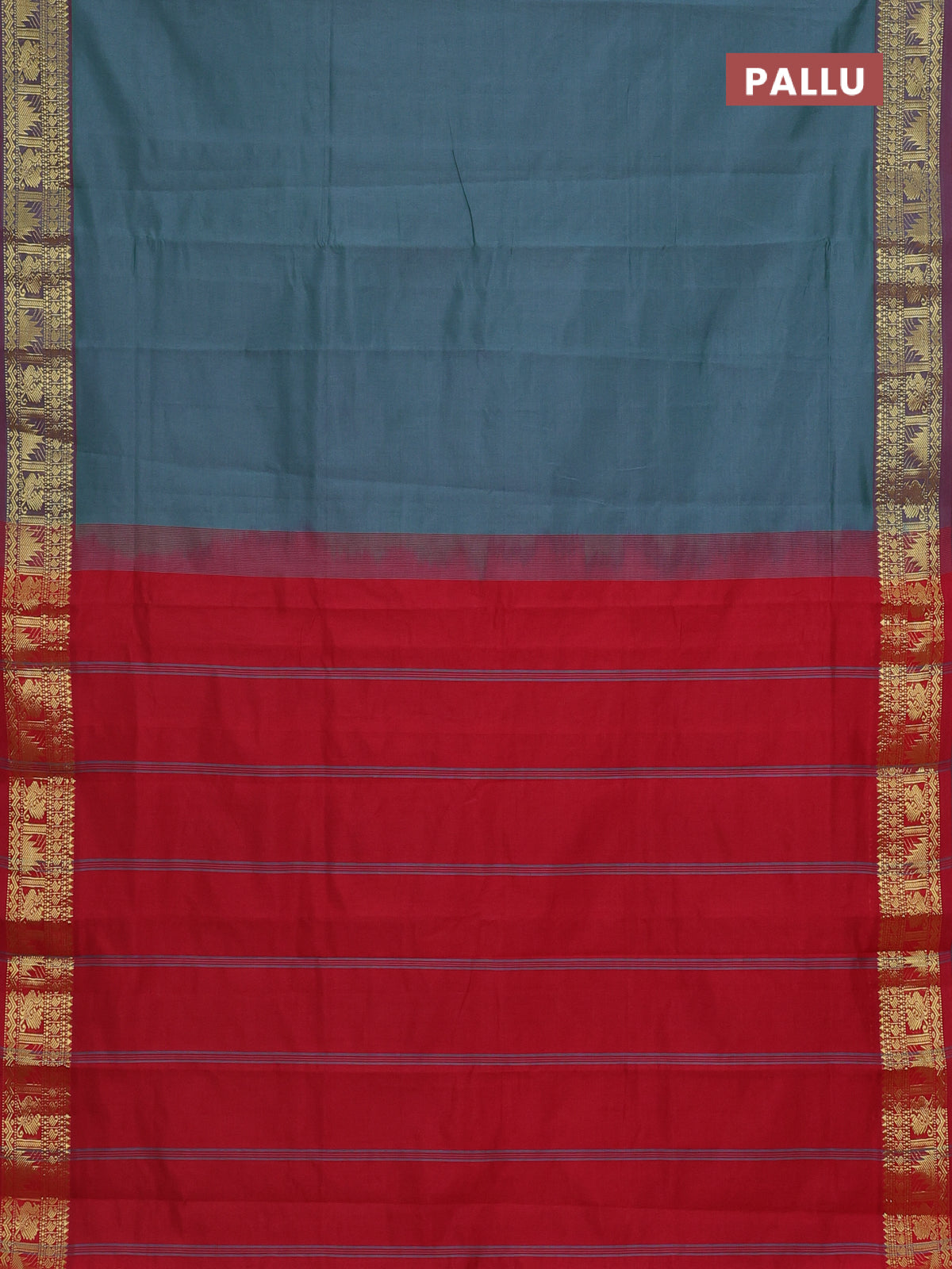 Semi silk cotton saree dual shade of green shade and red with plain body and temple & annam zari woven border