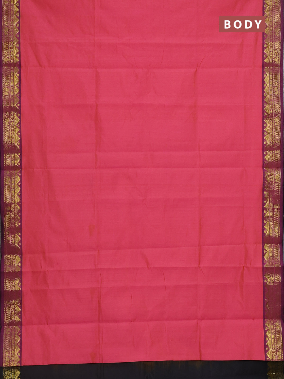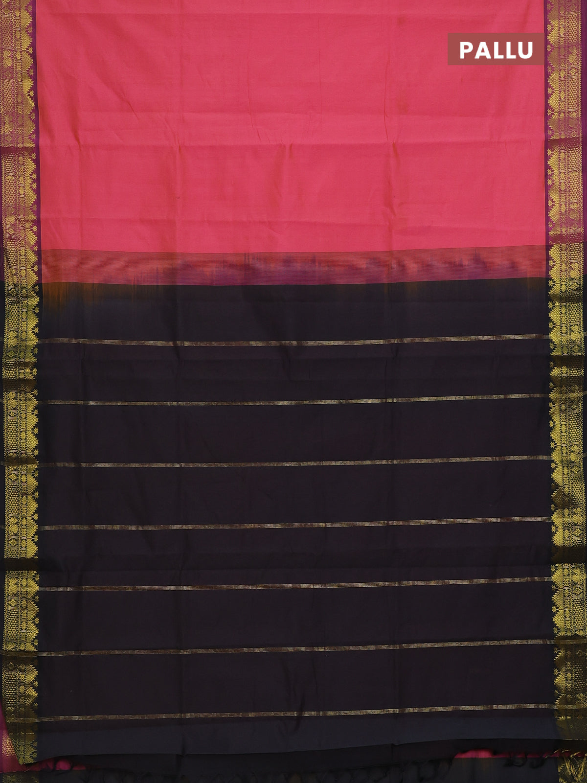 Semi silk cotton saree dual shade of pink and black with plain body and zari woven border