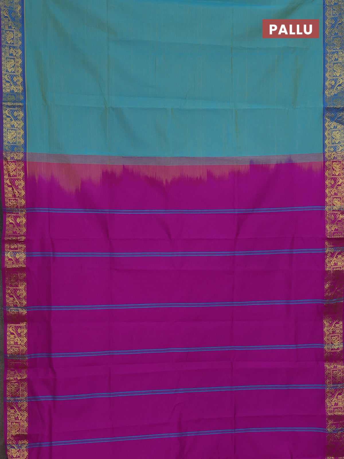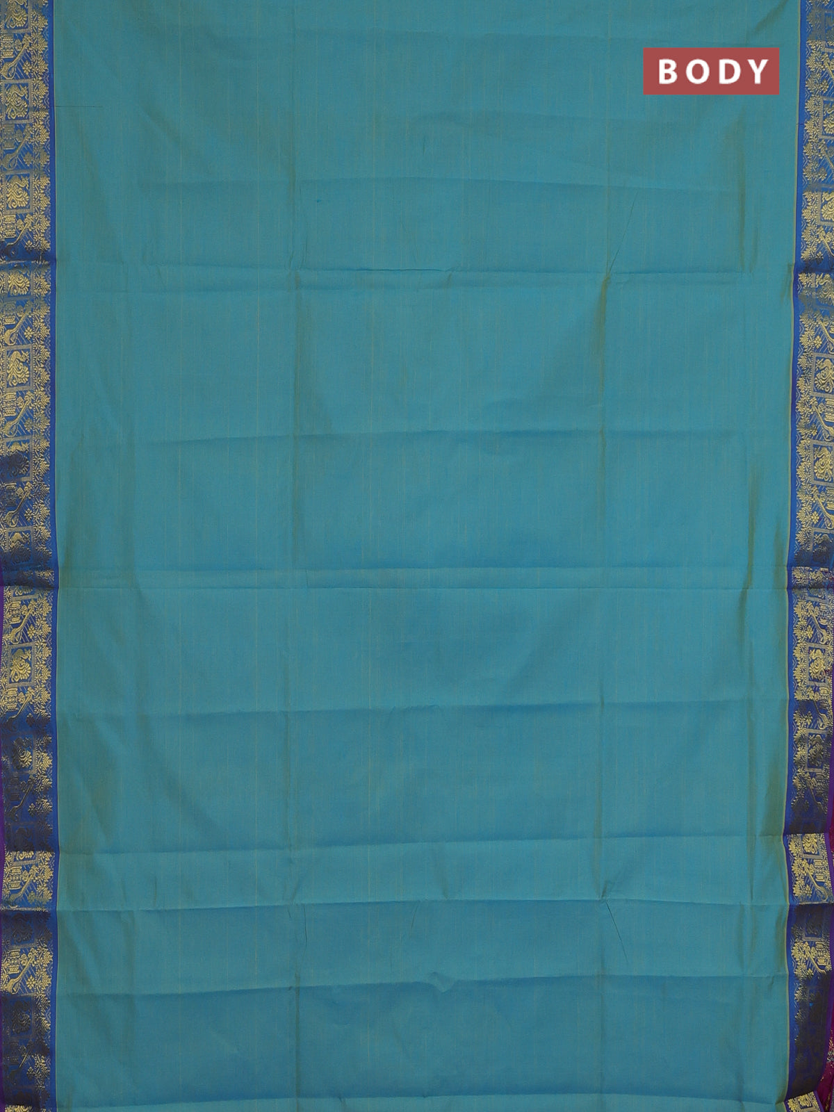 Semi silk cotton saree dual shade of teal blue and purple with plain body and zari woven border