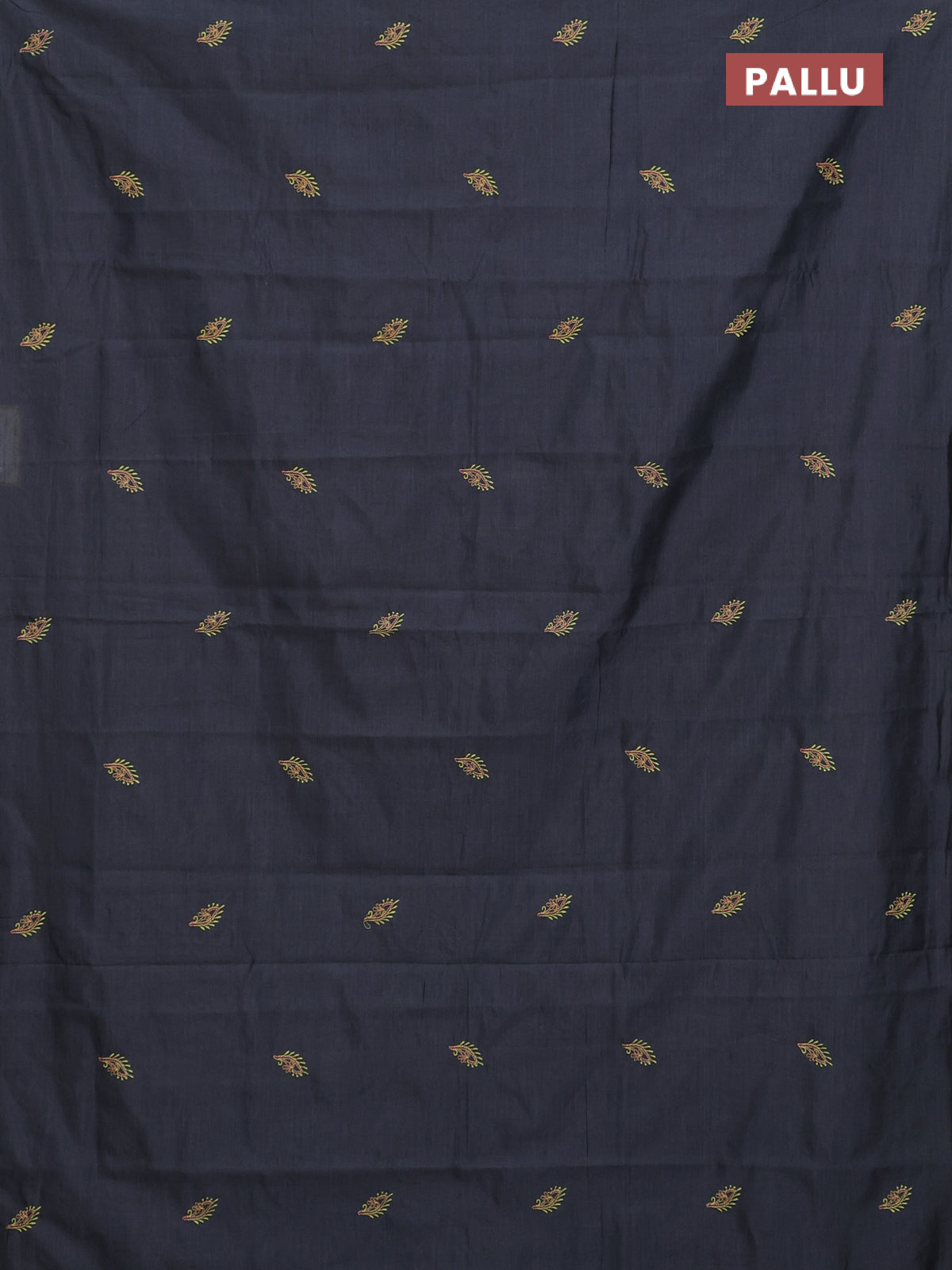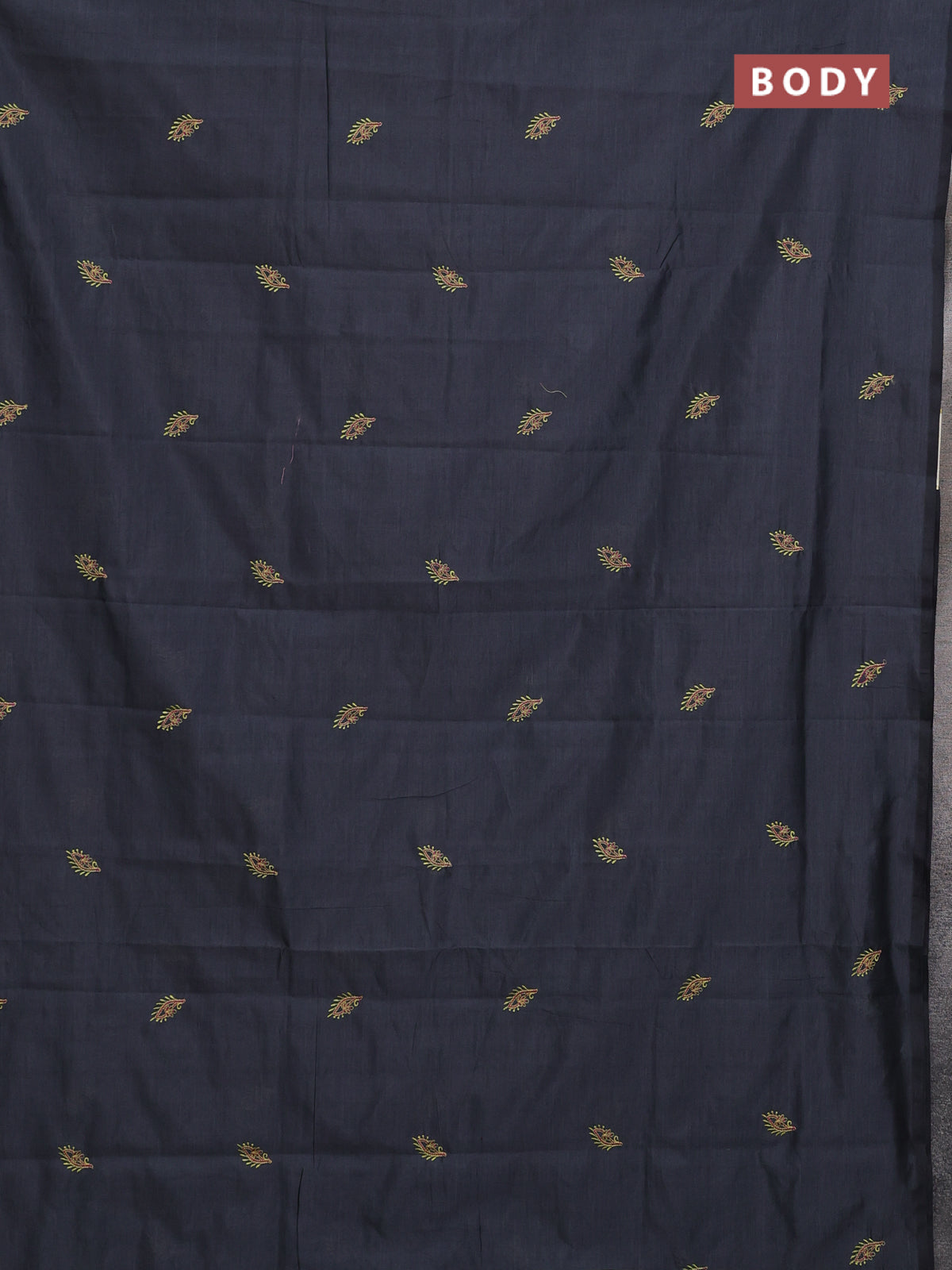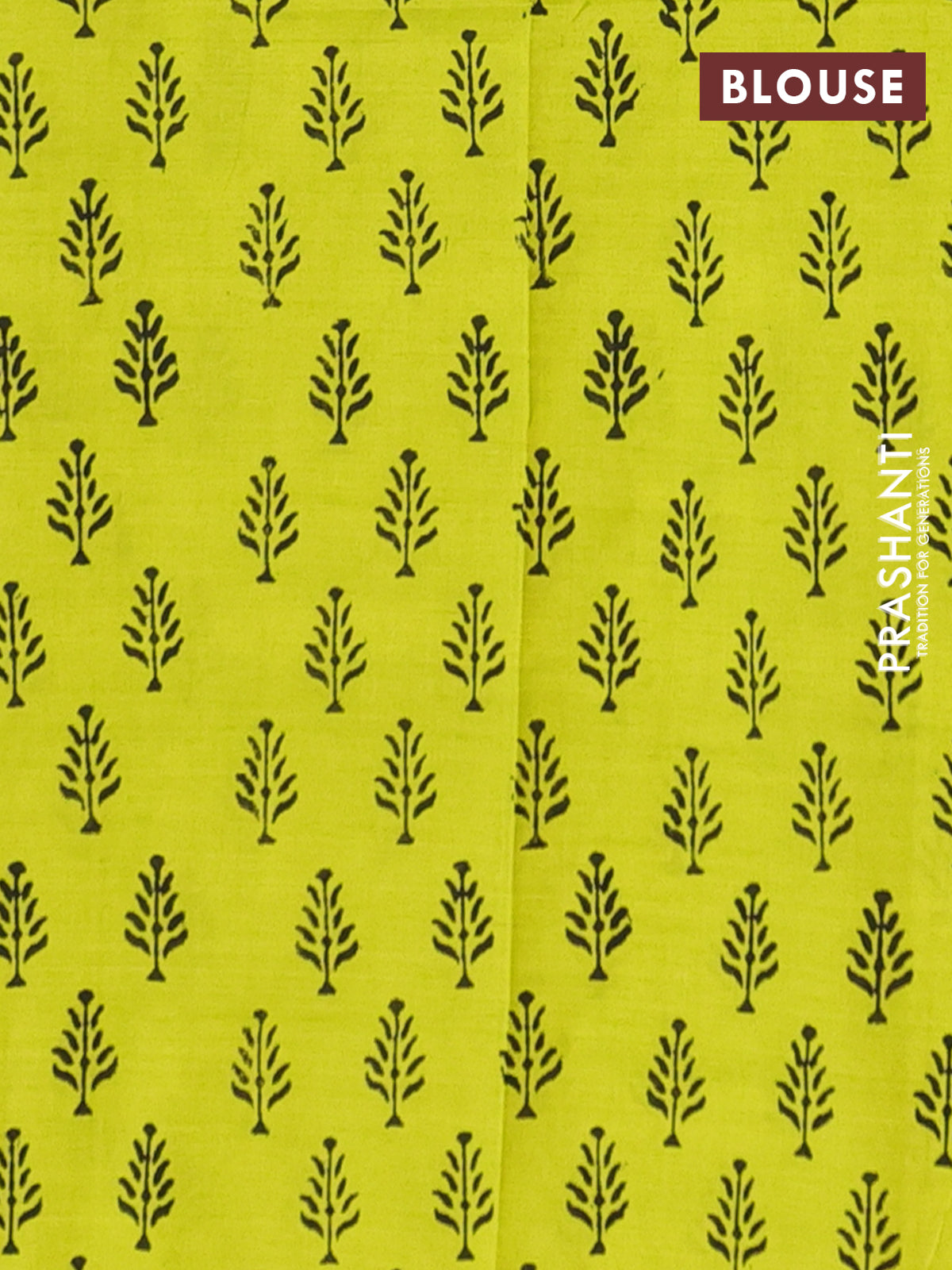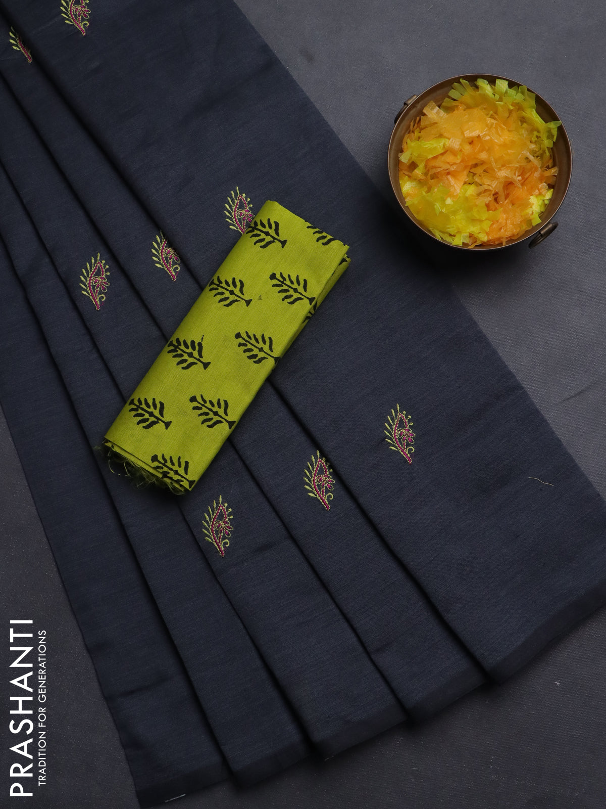 Semi silk cotton saree elephant grey and lime green with embroided buttas in borderless style