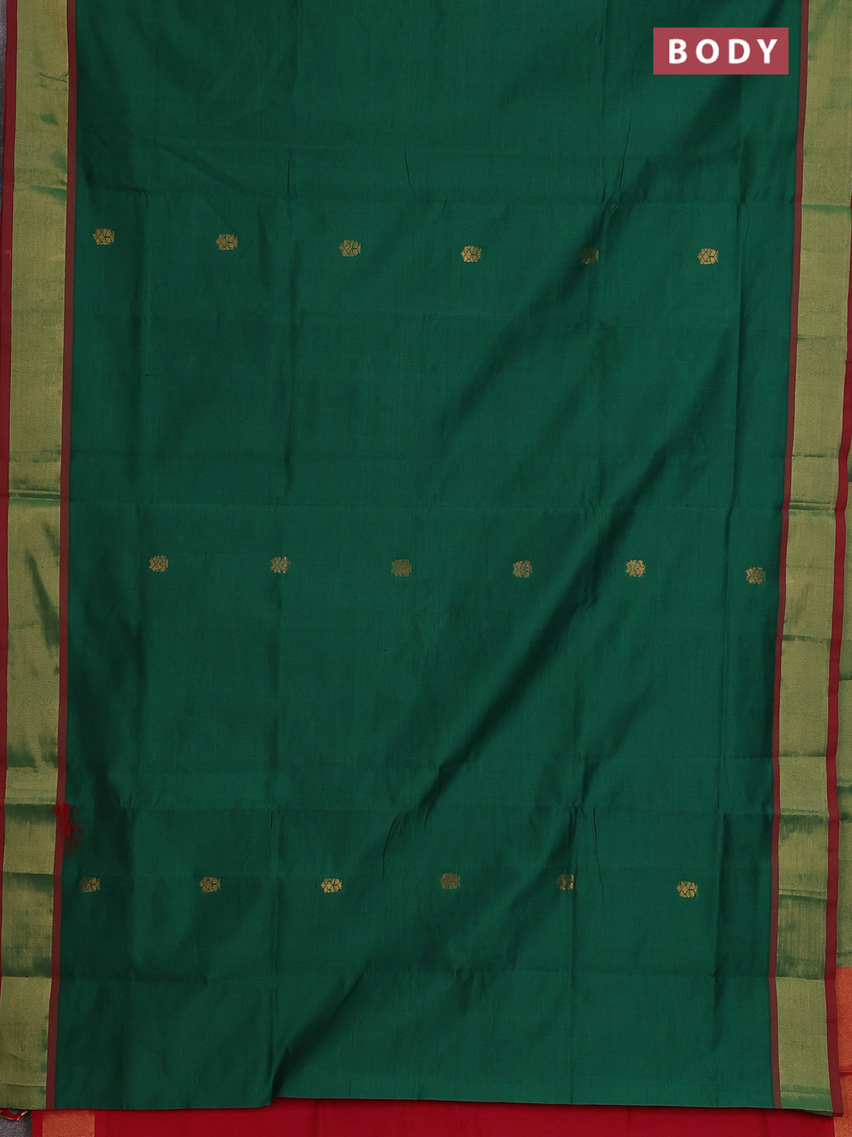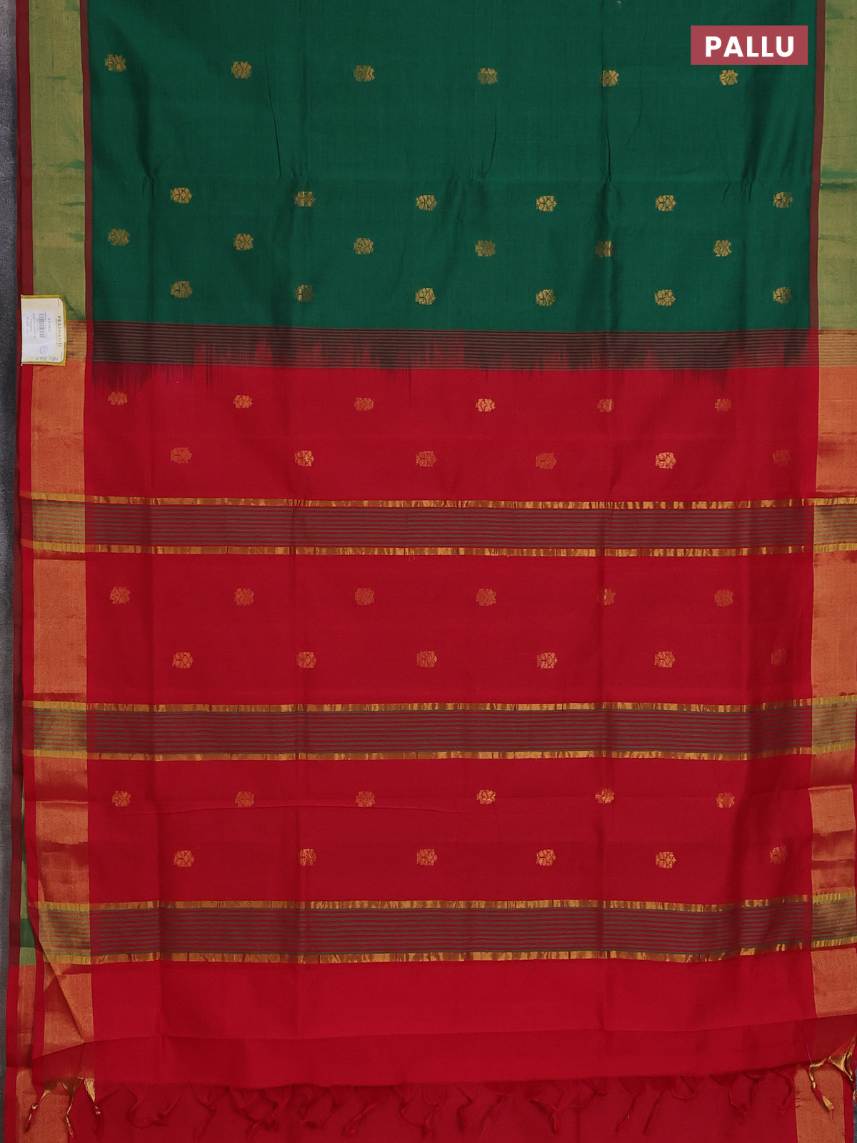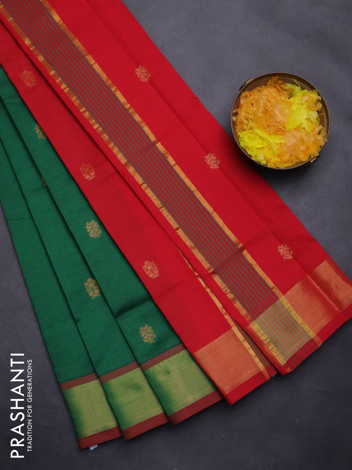 Semi silk cotton saree green and red with zari woven buttas and zari woven border