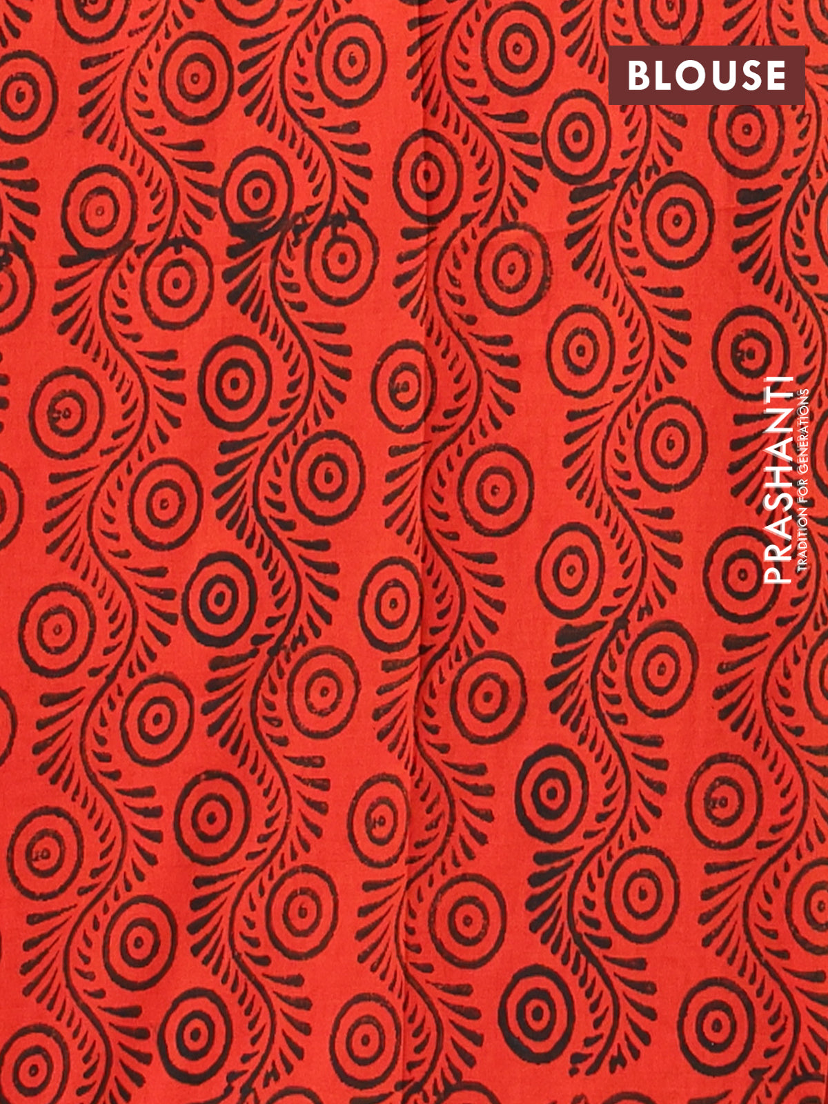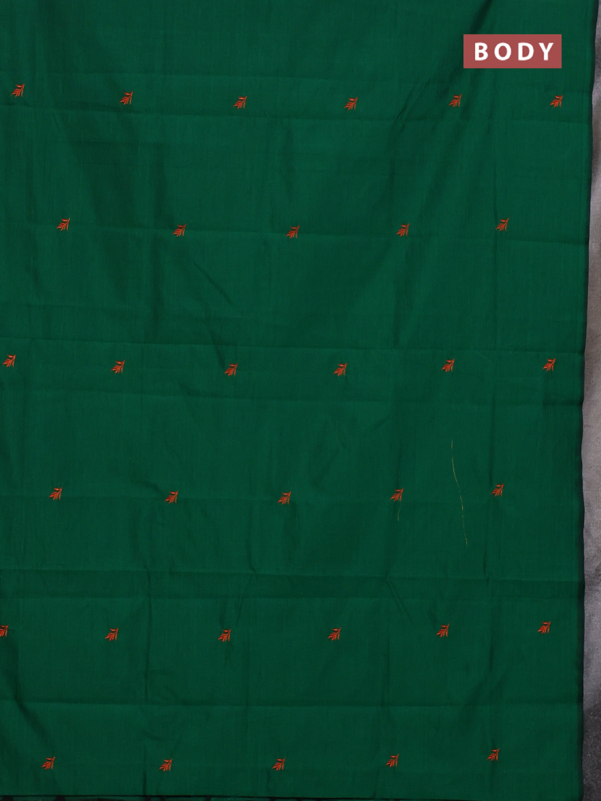 Semi silk cotton saree green and reddish orange with embroided buttas in borderless style