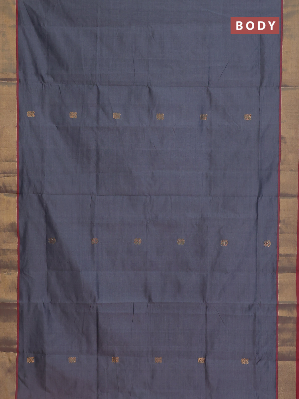 Semi silk cotton saree grey and red with zari woven buttas and zari woven border