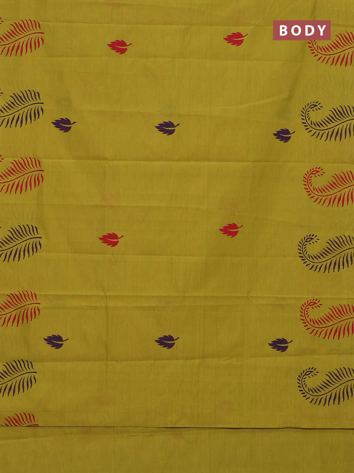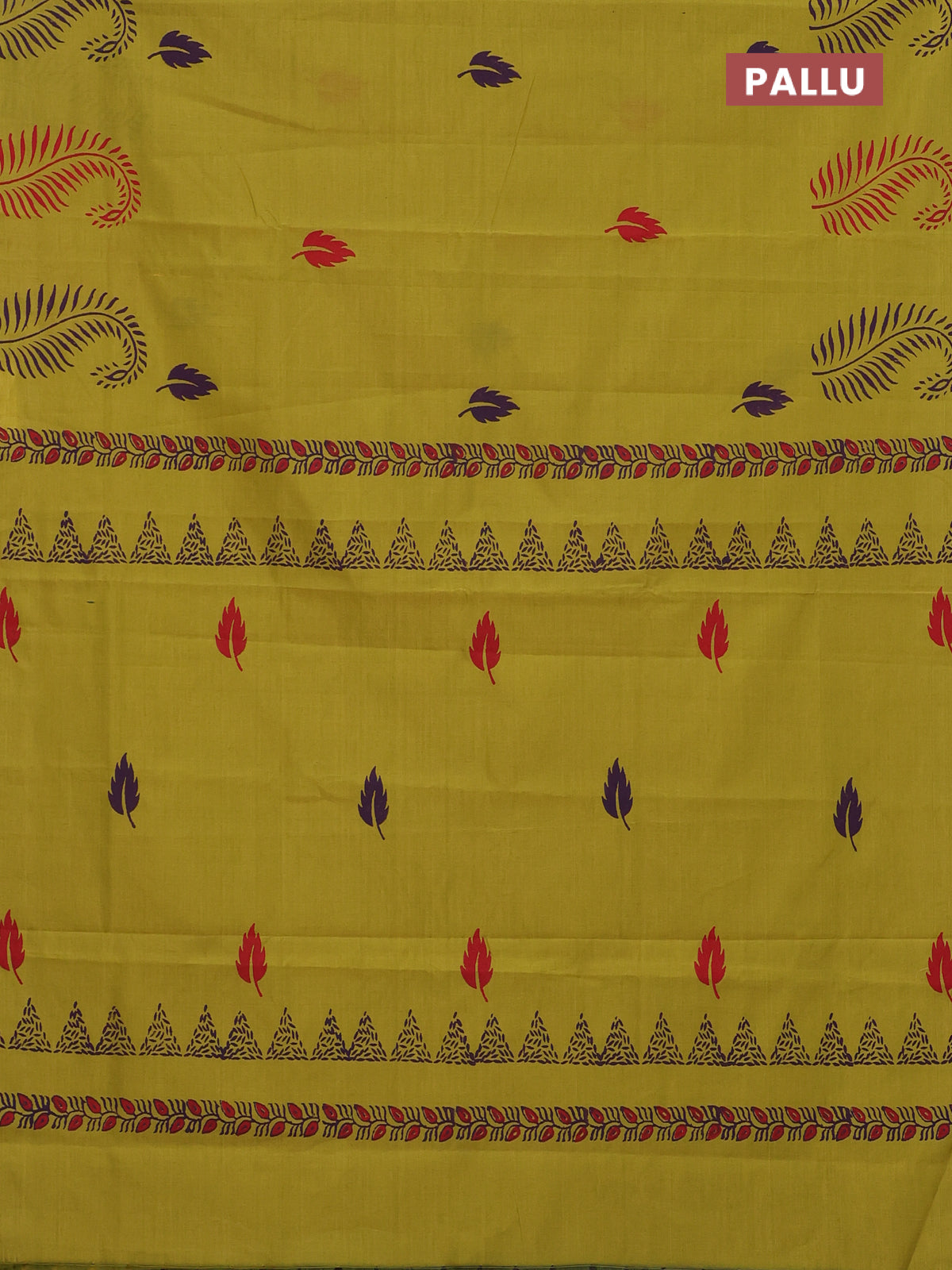Semi silk cotton saree lime green and deep purple with leaf butta prints in borderless style