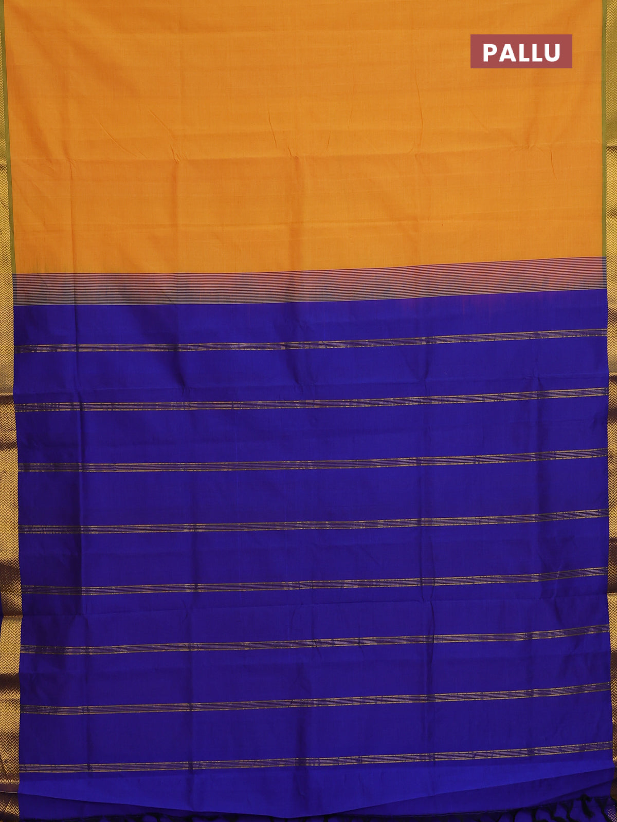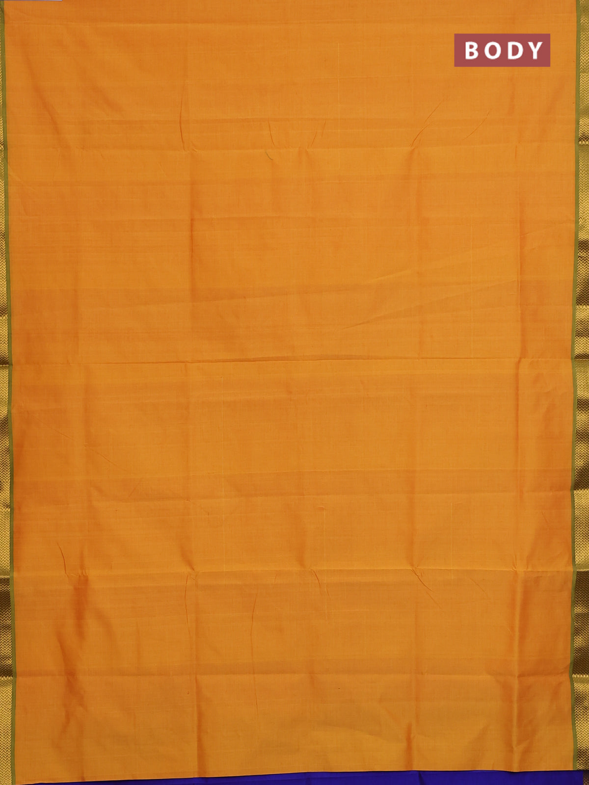 Semi silk cotton saree mango yellow and blue with plain body and zari woven border