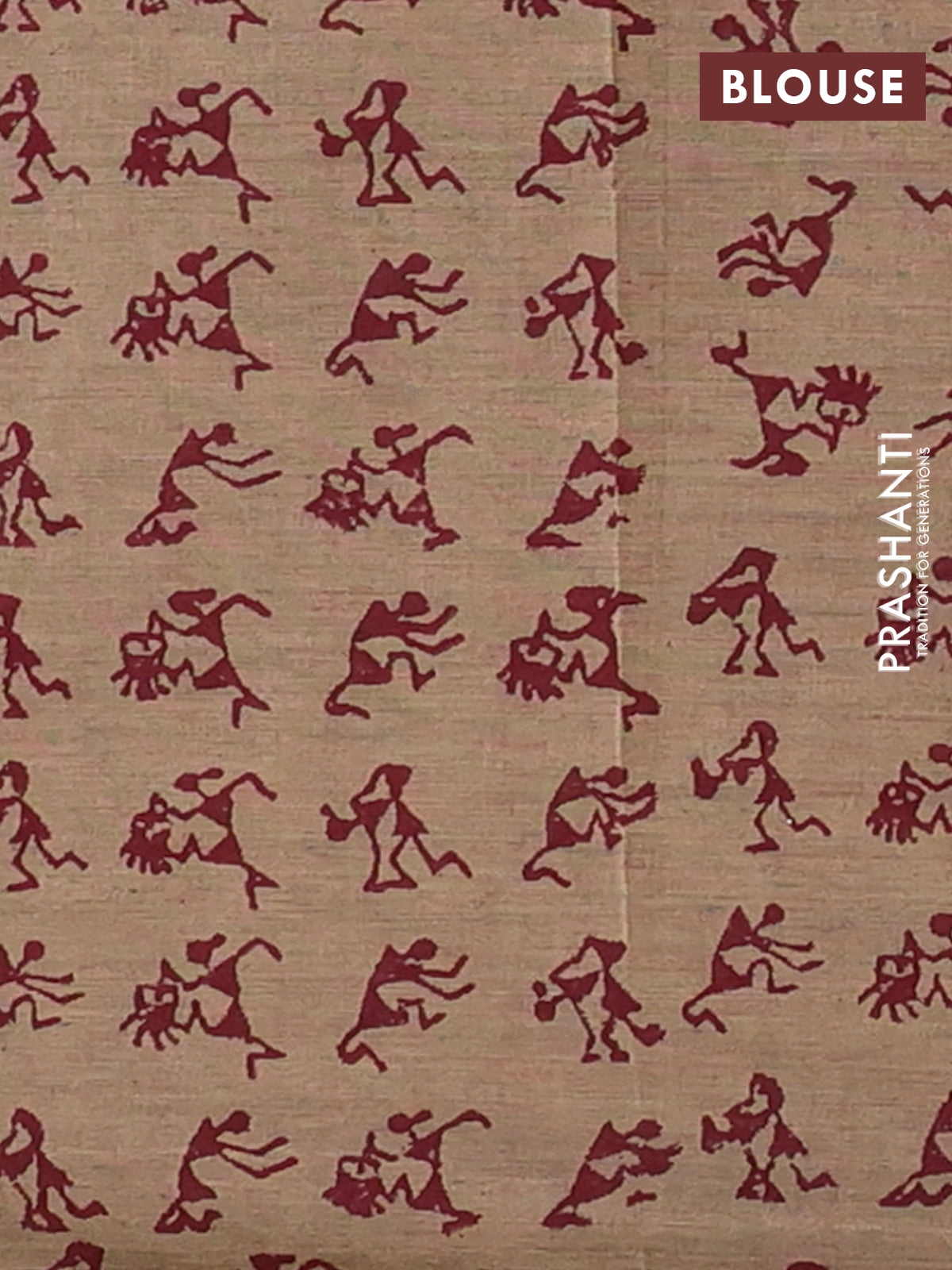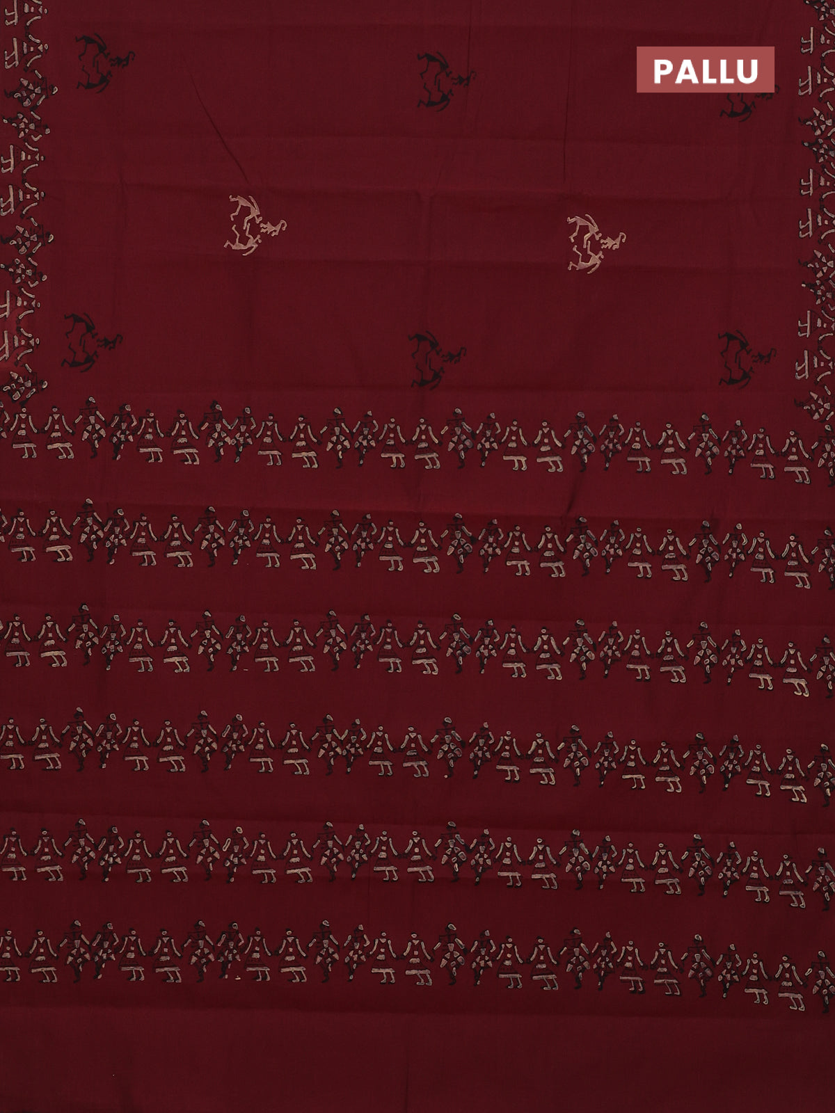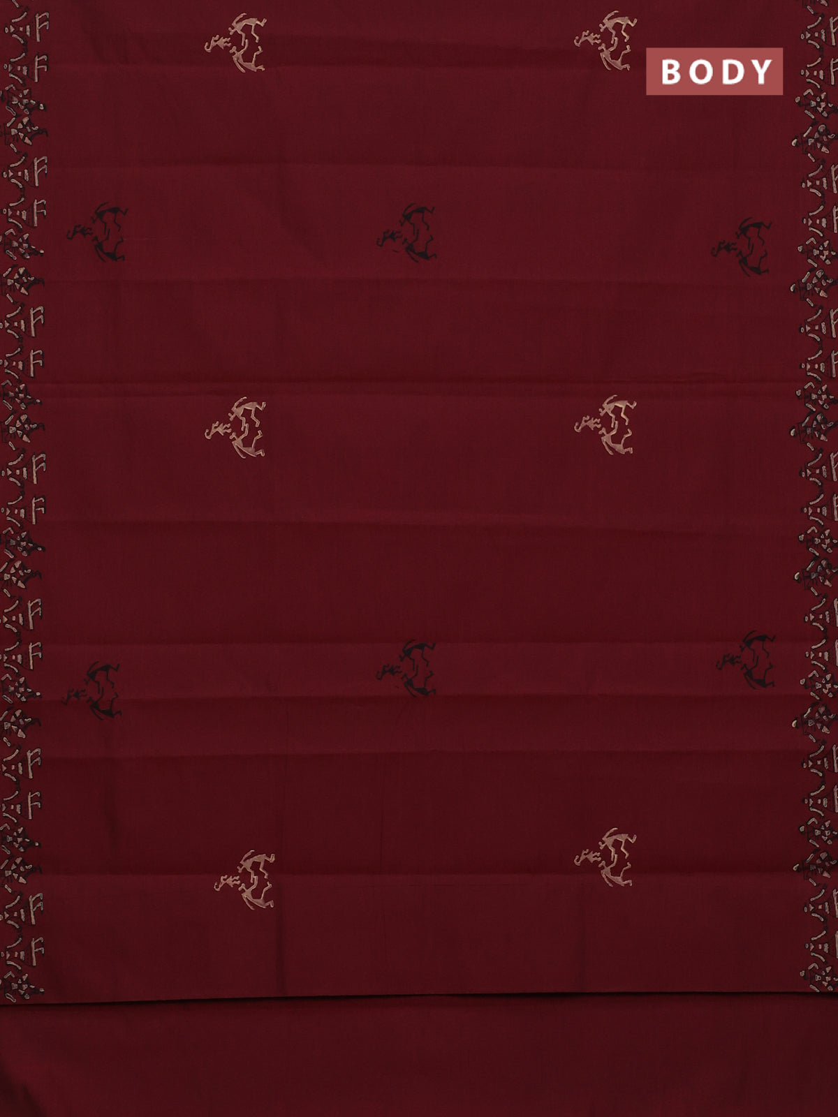 Semi silk cotton saree maroon and beige with butta prints in borderless style