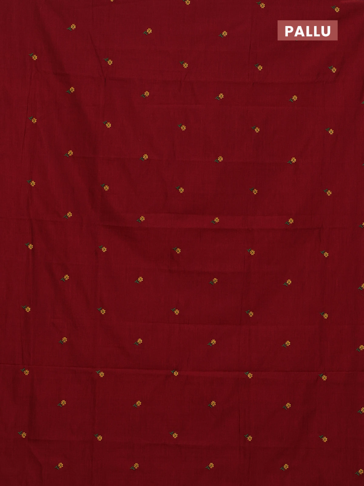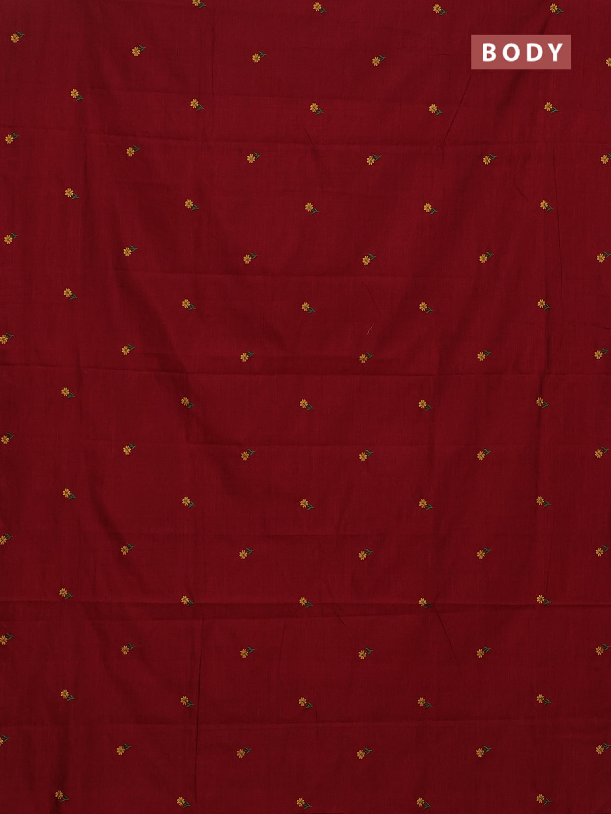 Semi silk cotton saree maroon and mustard yellow with embroided buttas in borderless style