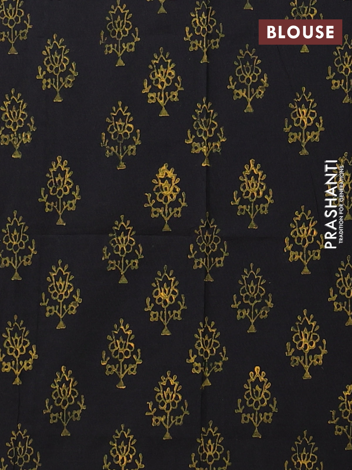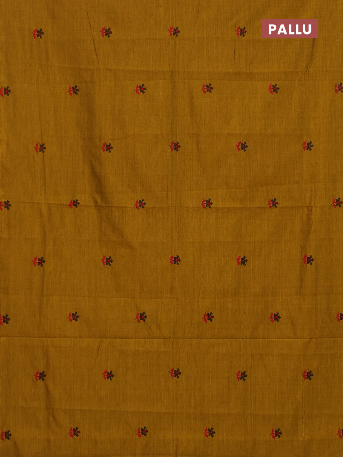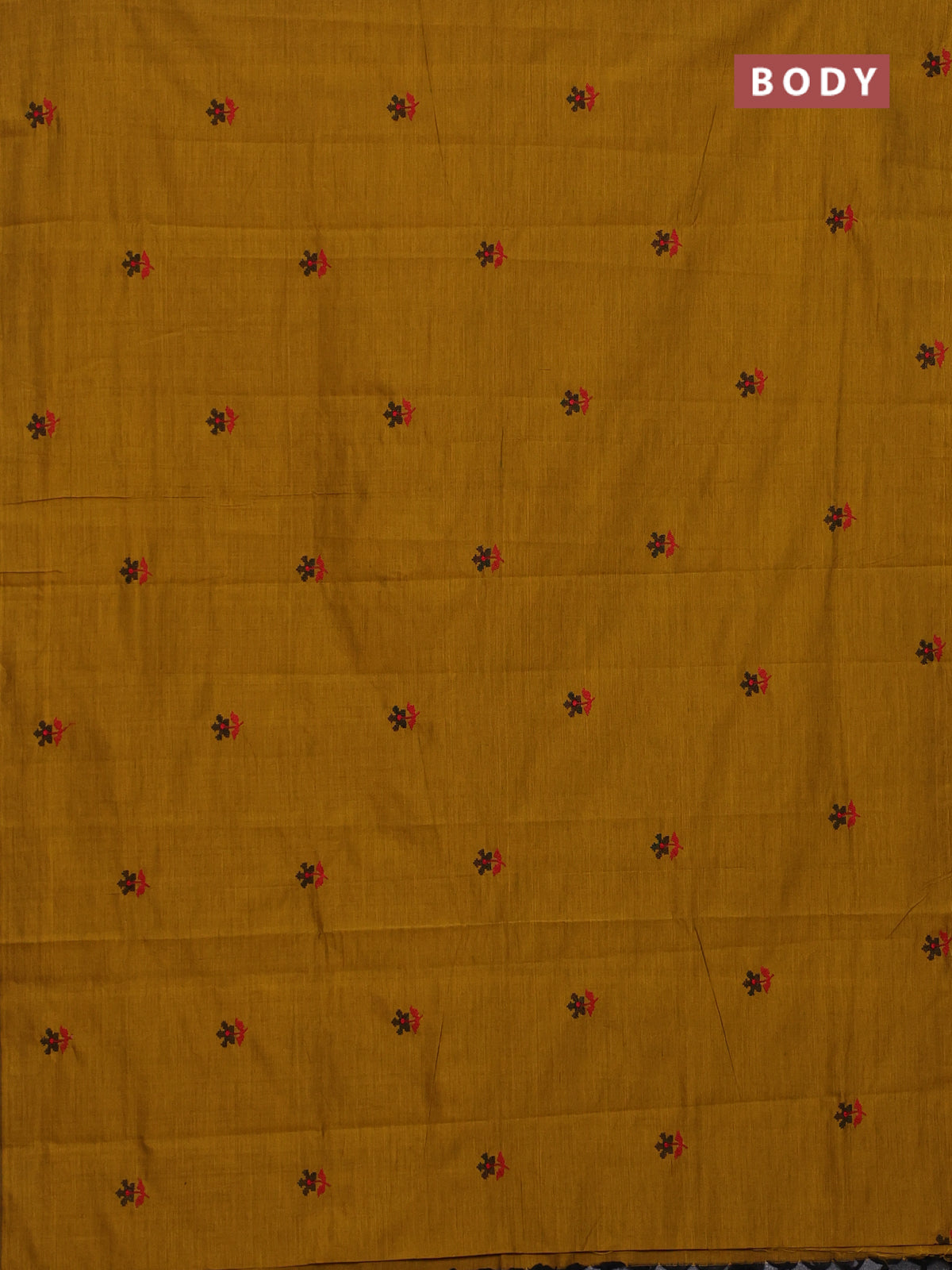 Semi silk cotton saree mustard yellow and black with embroided buttas in borderless style