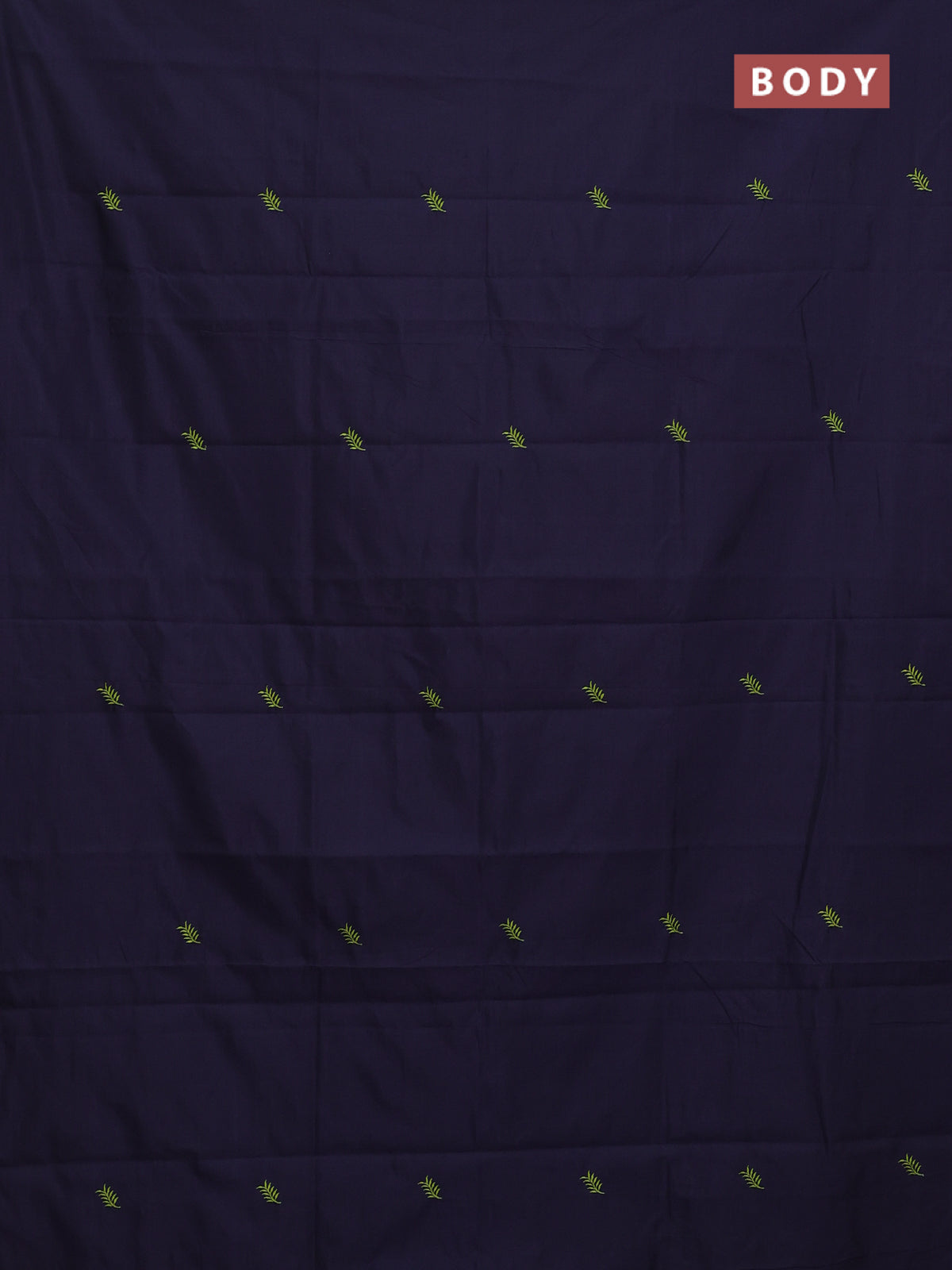 Semi silk cotton saree navy blue and fluorescent green with embroided buttas in borderless style