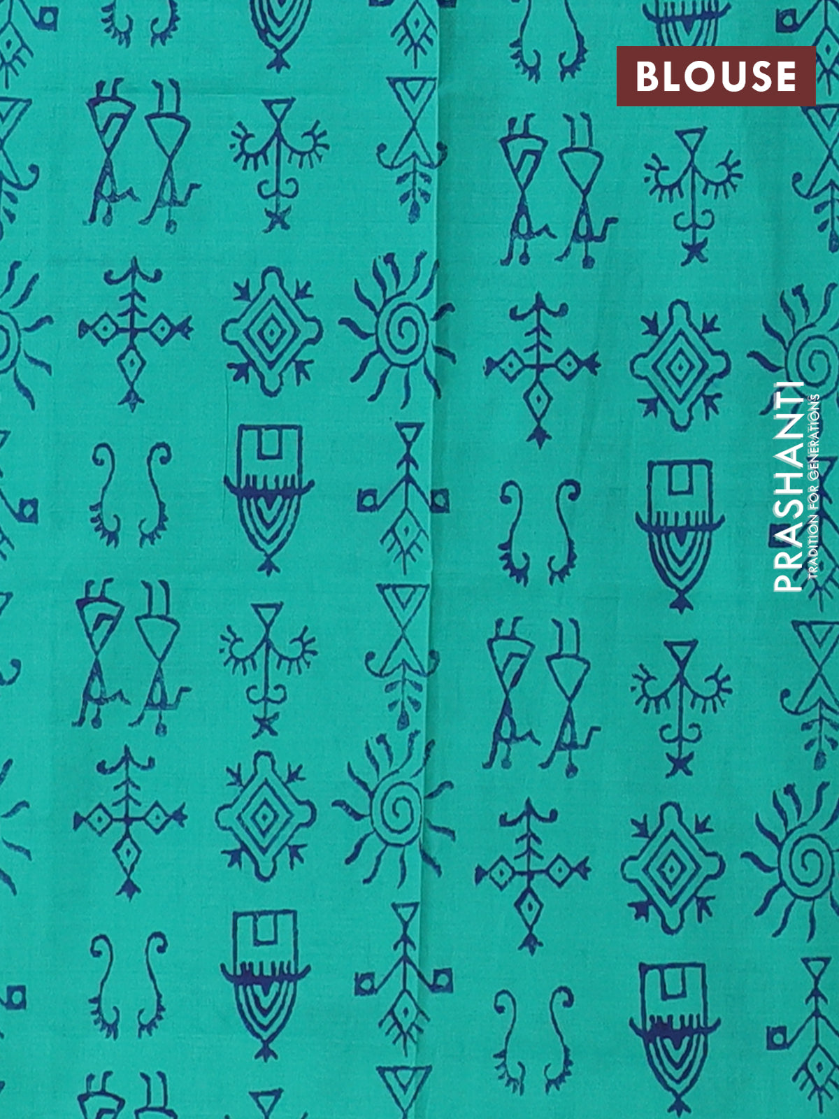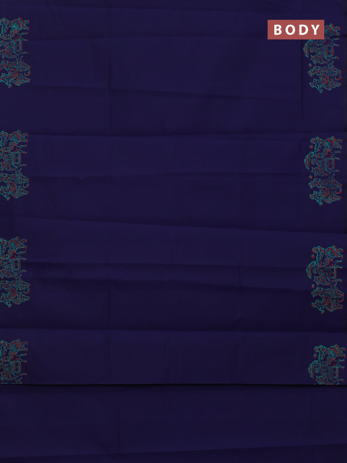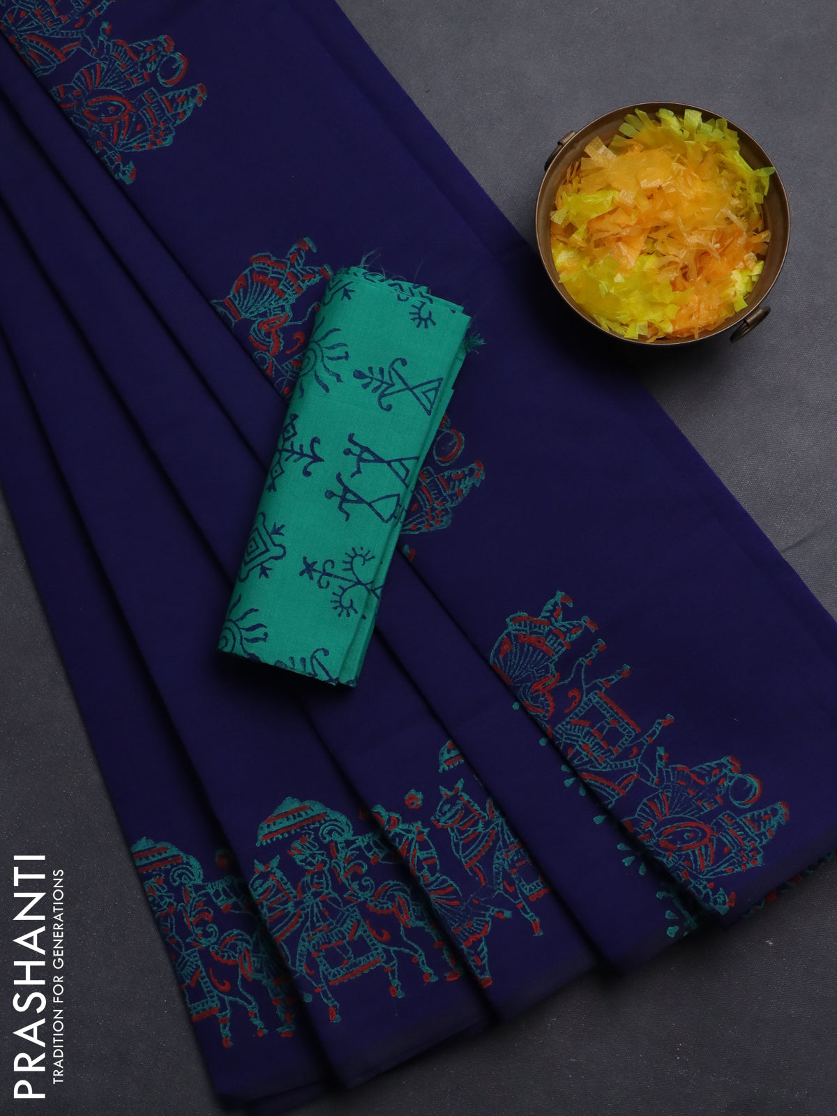 Semi silk cotton saree navy blue and teal green with butta prints in borderless style