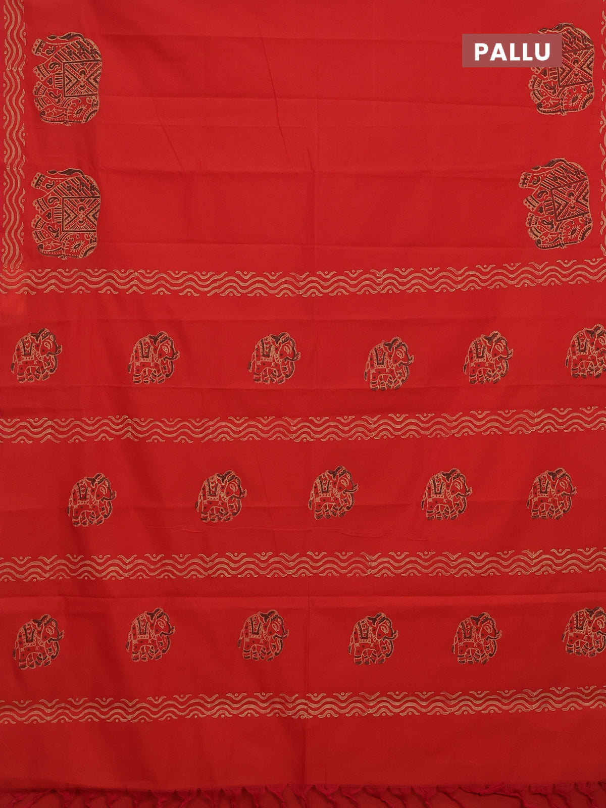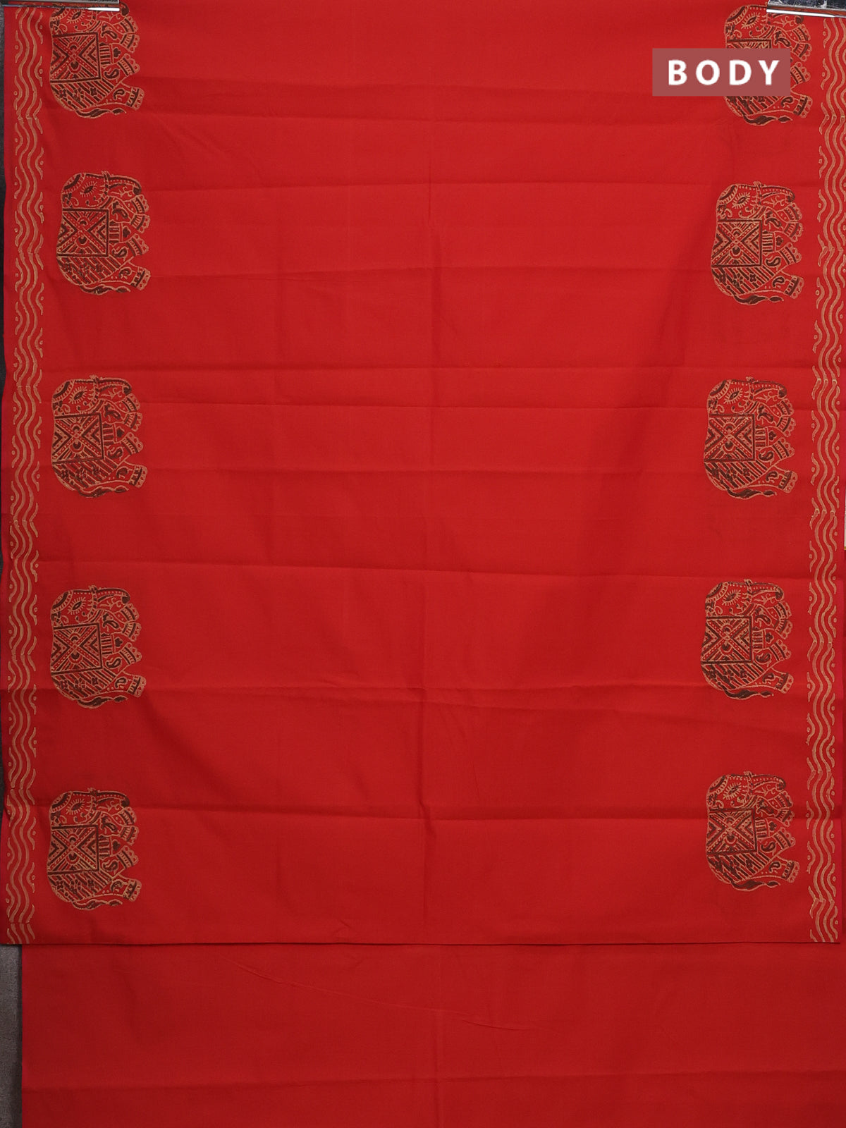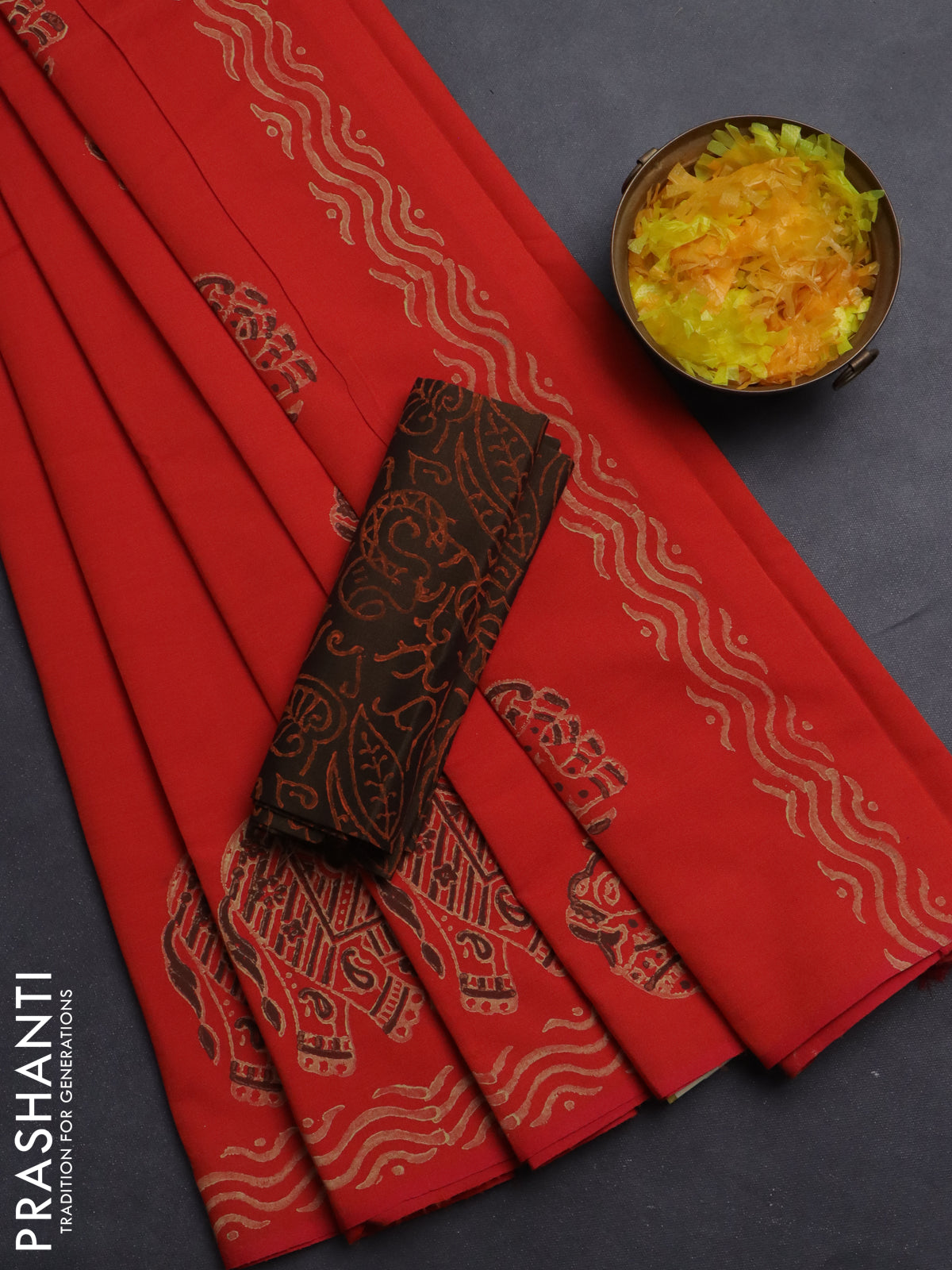 Semi silk cotton saree orange and dark brown with butta prints and printed border