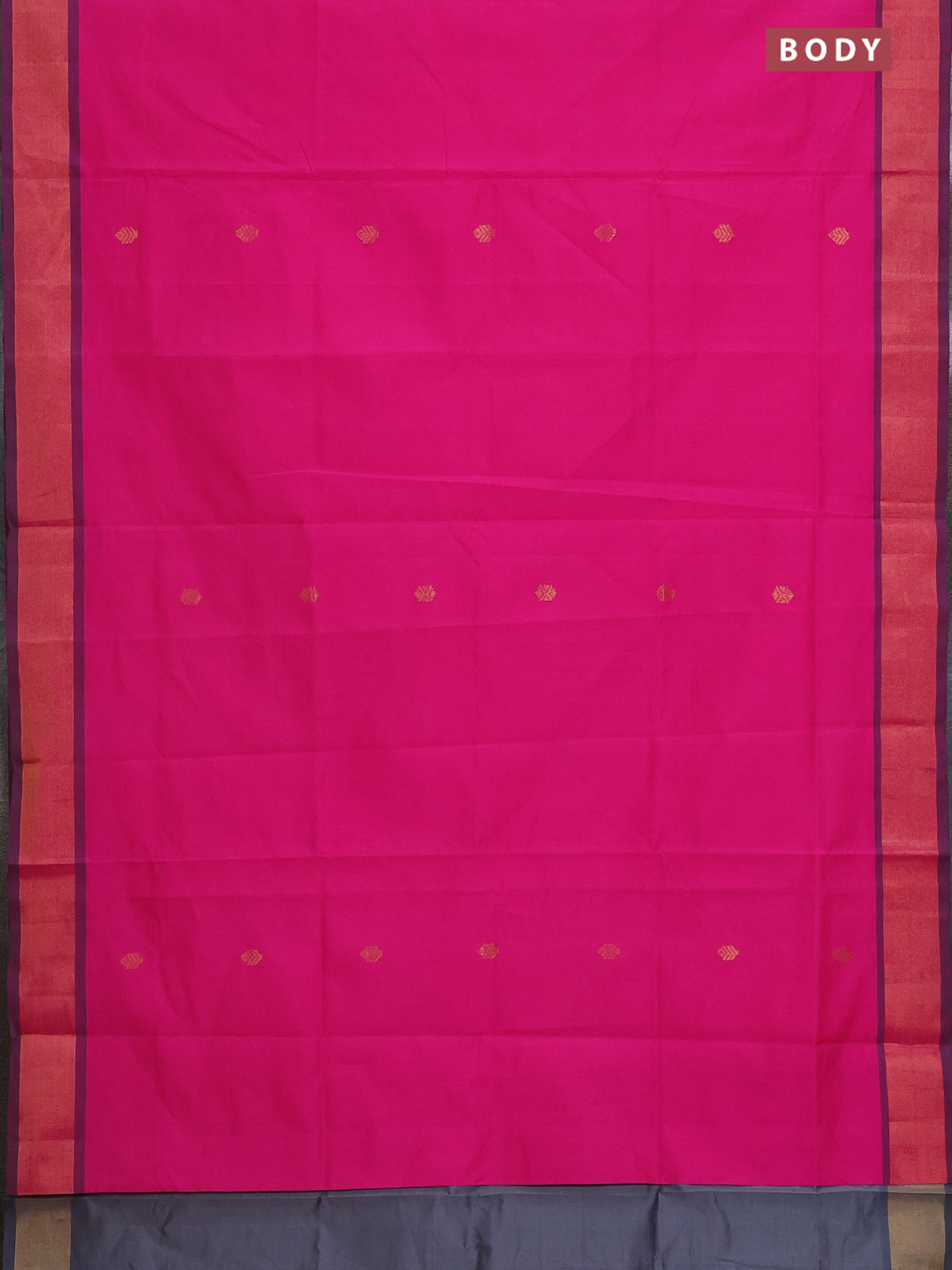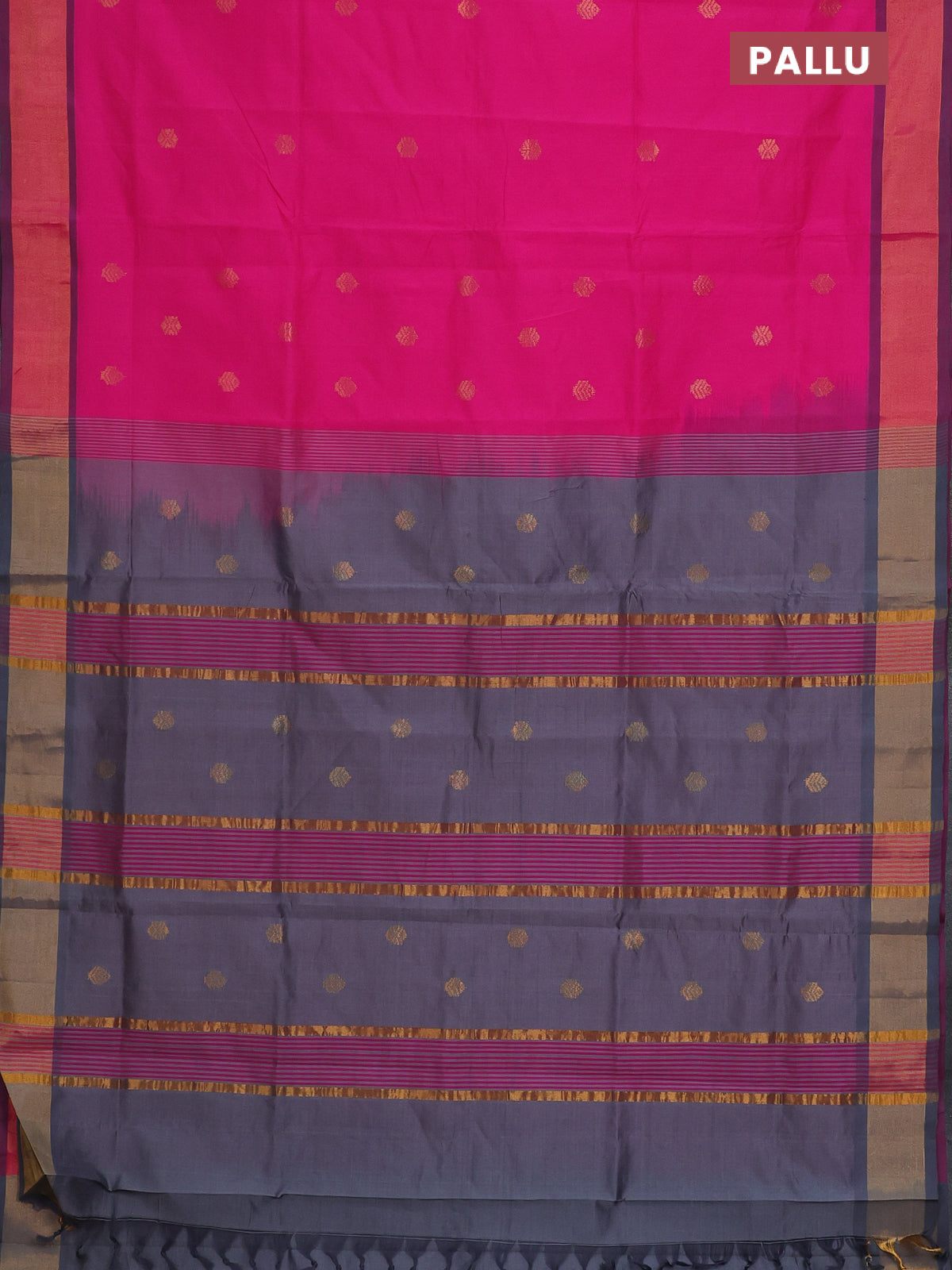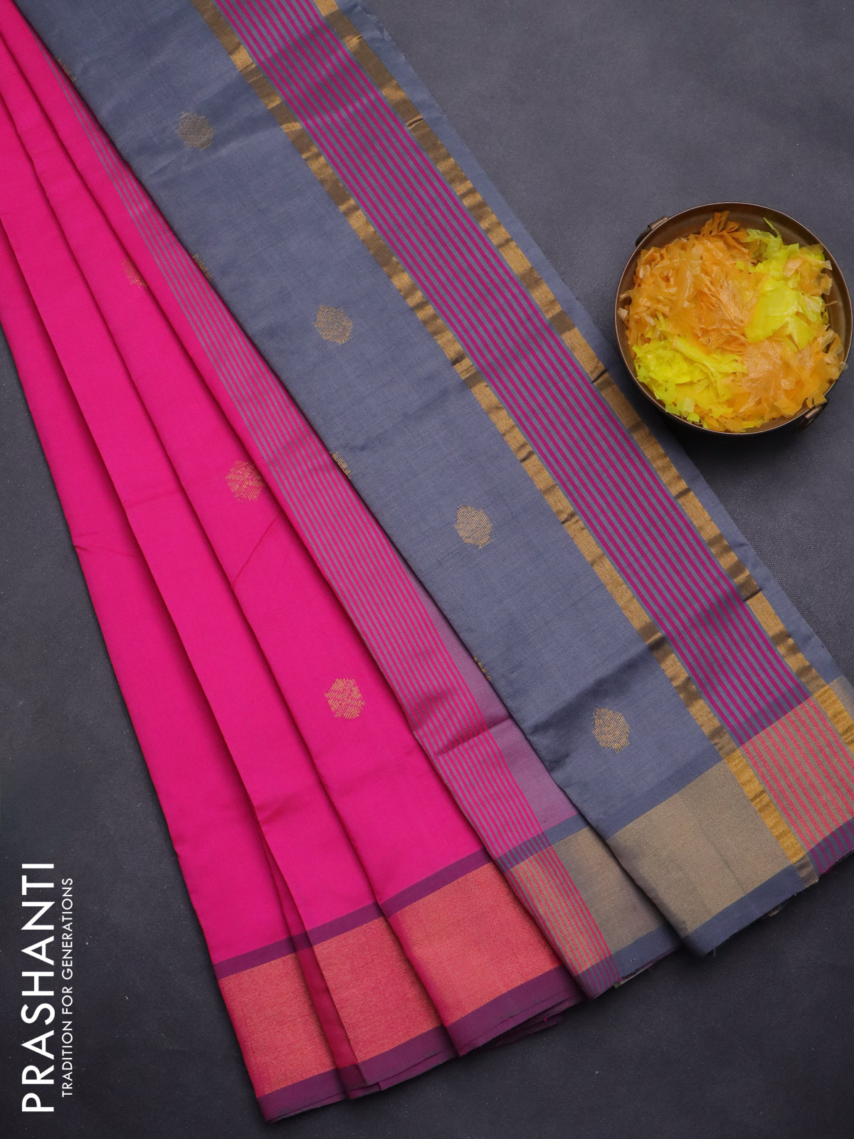 Semi silk cotton saree pink and grey with zari woven buttas and zari woven border
