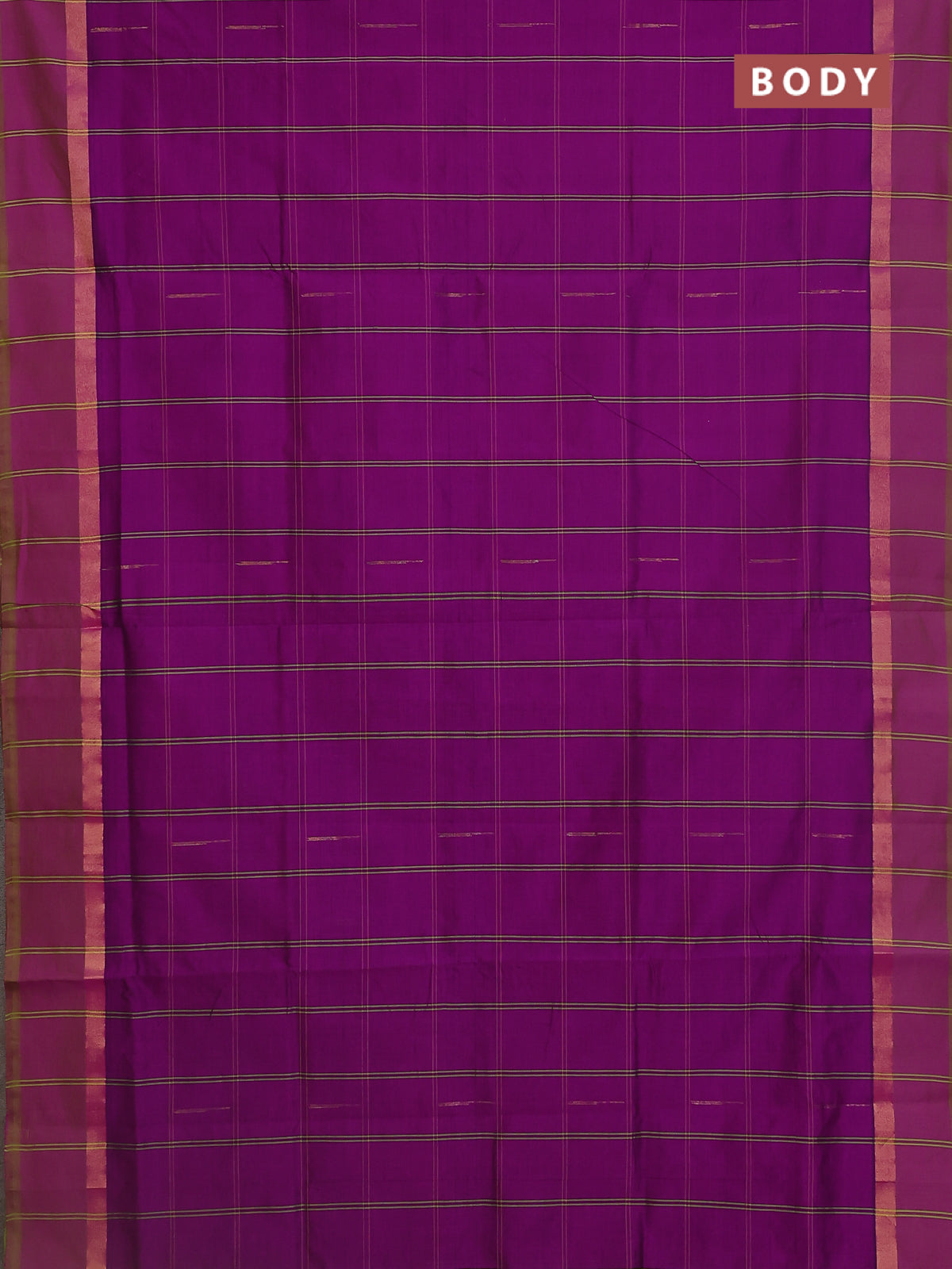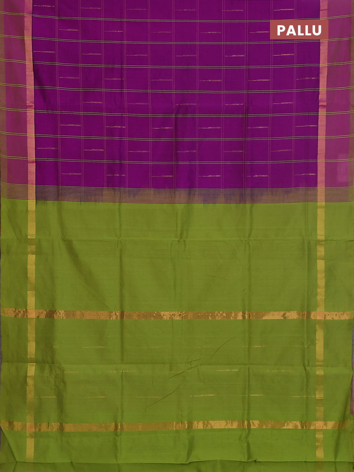 Semi silk cotton saree purple and light green with allover checks & zari buttas and zari woven simple border