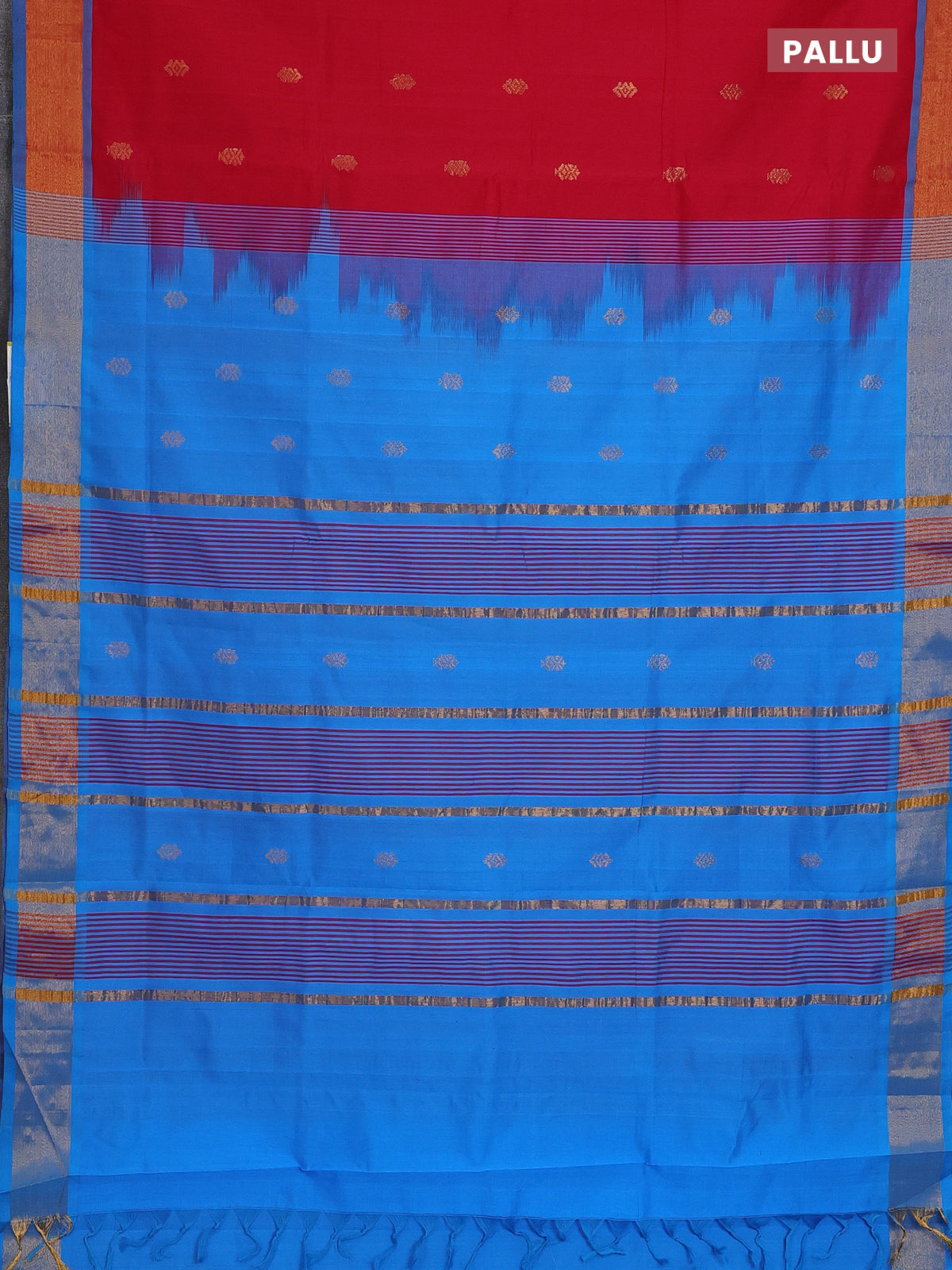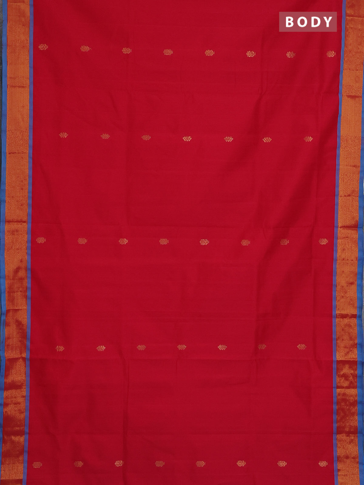 Semi silk cotton saree red and blue with zari woven buttas and zari woven border