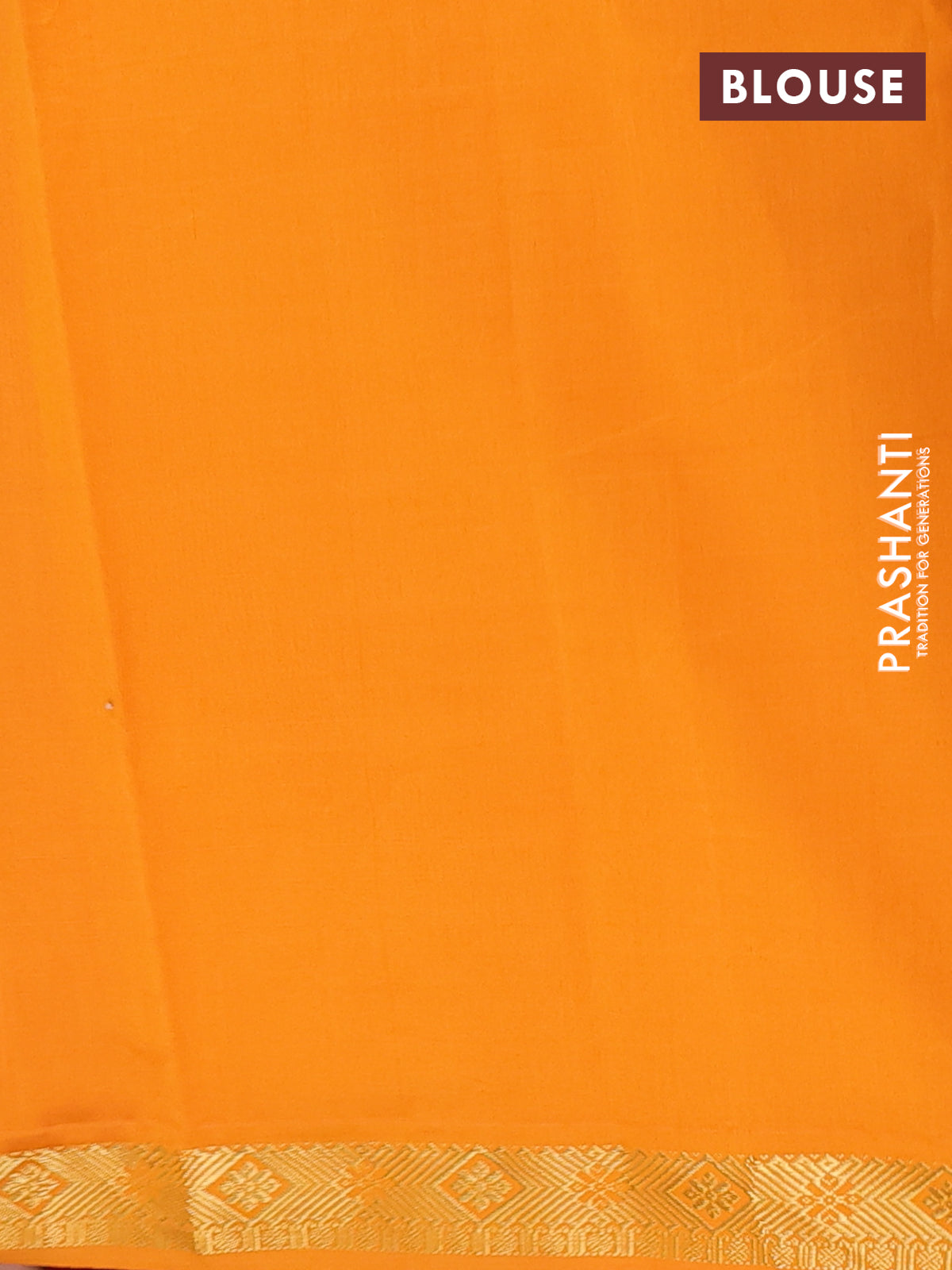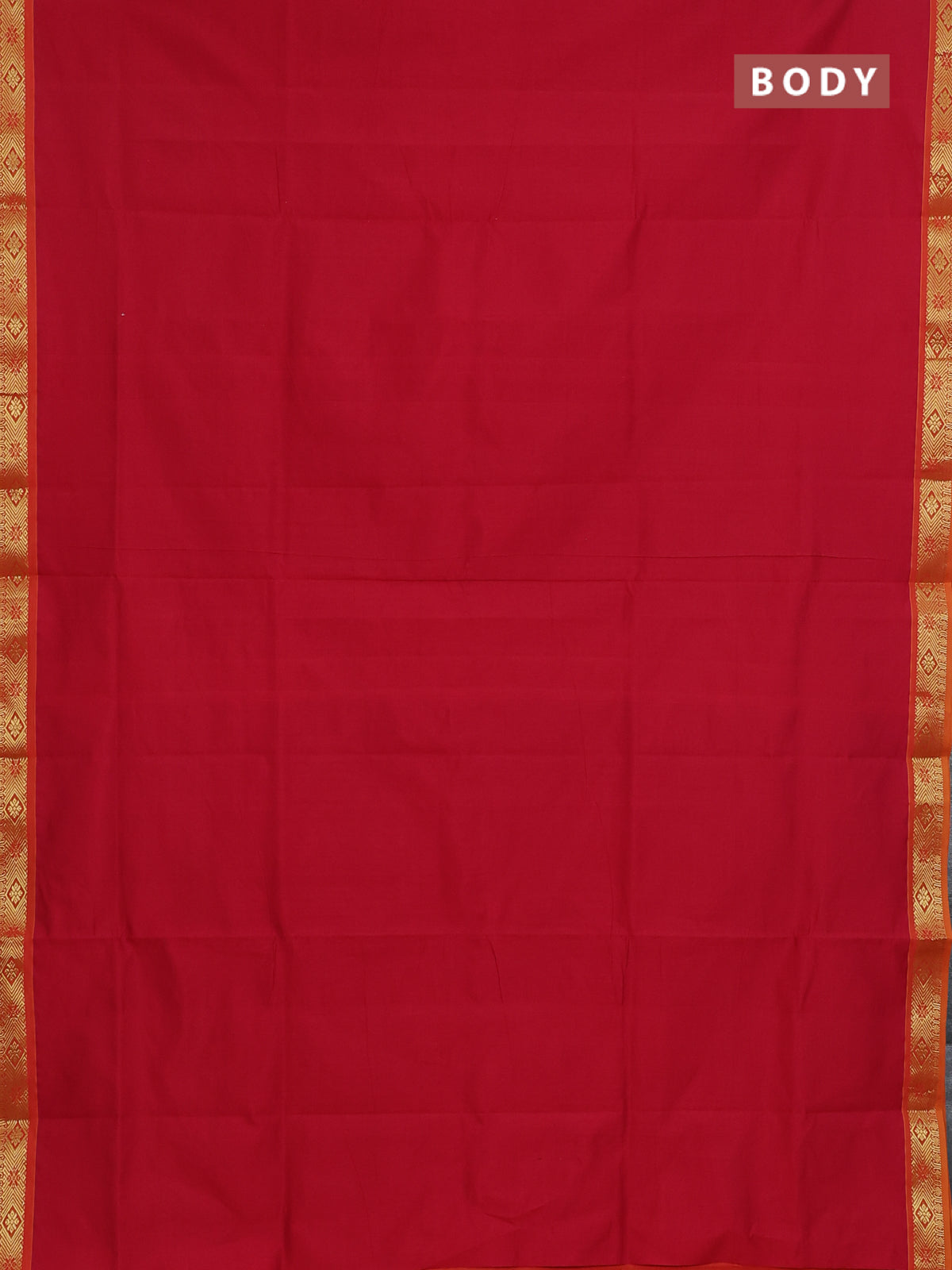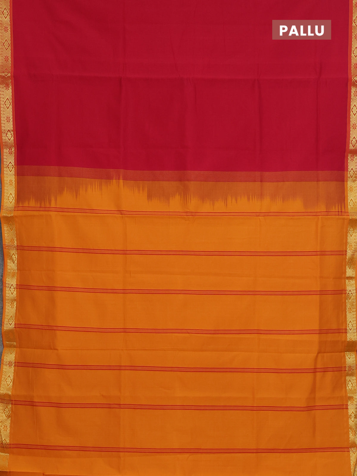 Semi silk cotton saree red and mango yellow with plain body and zari woven border