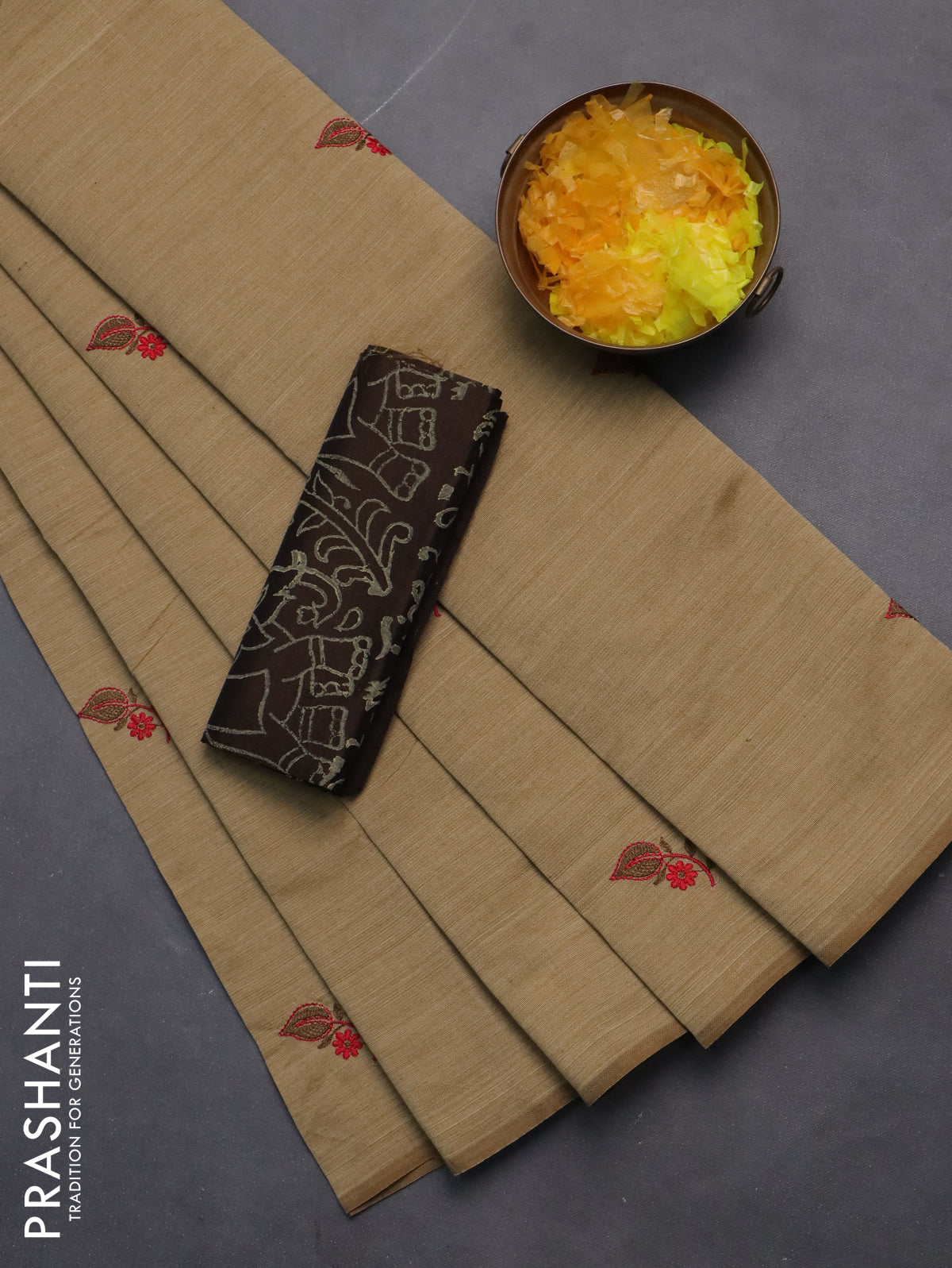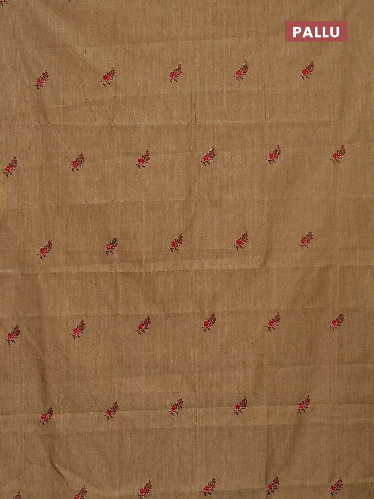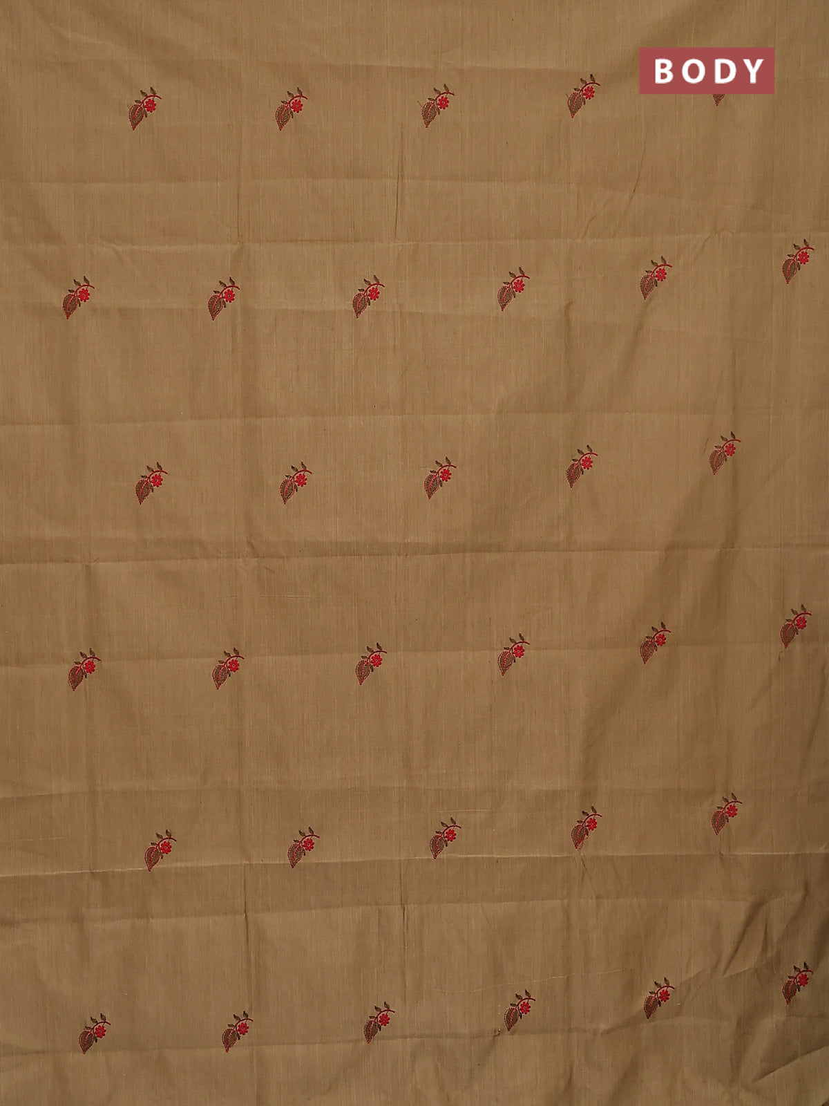 Semi silk cotton saree sandal and brown with embroided buttas in borderless style