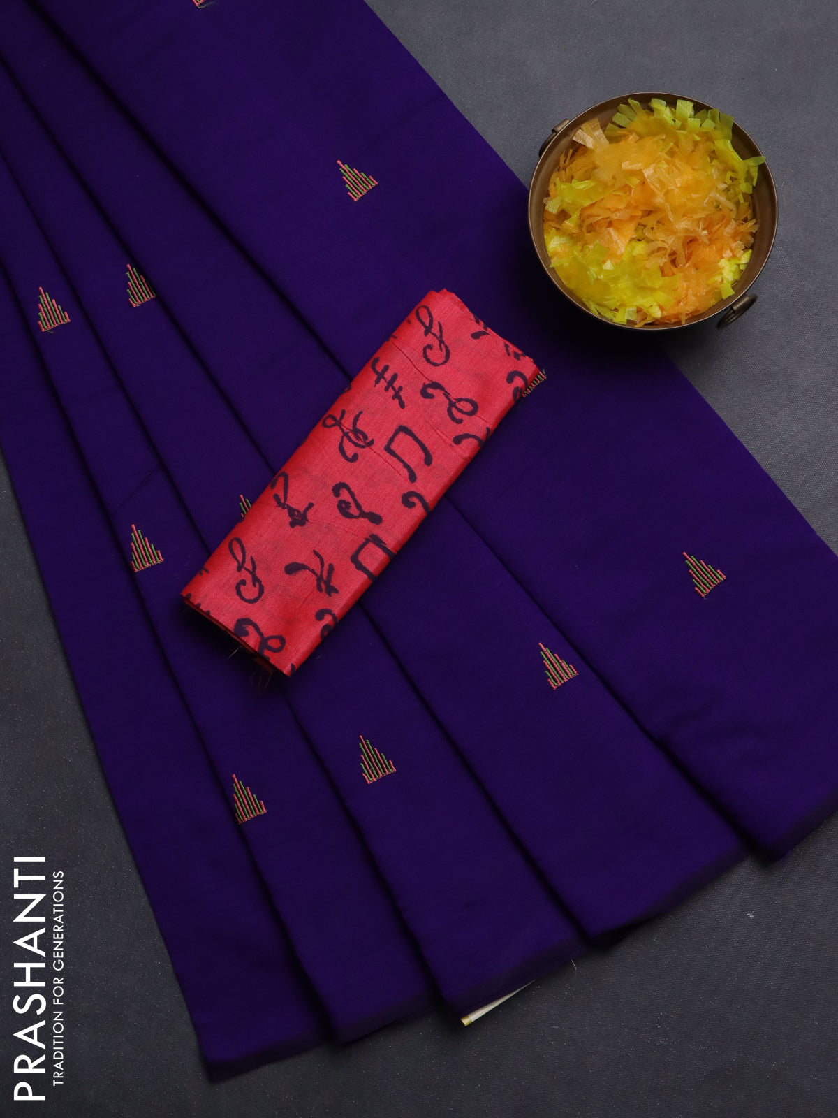 Semi silk cotton saree violet and peach pink with embroided buttas in borderless style