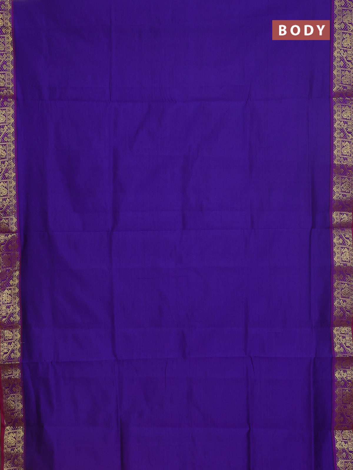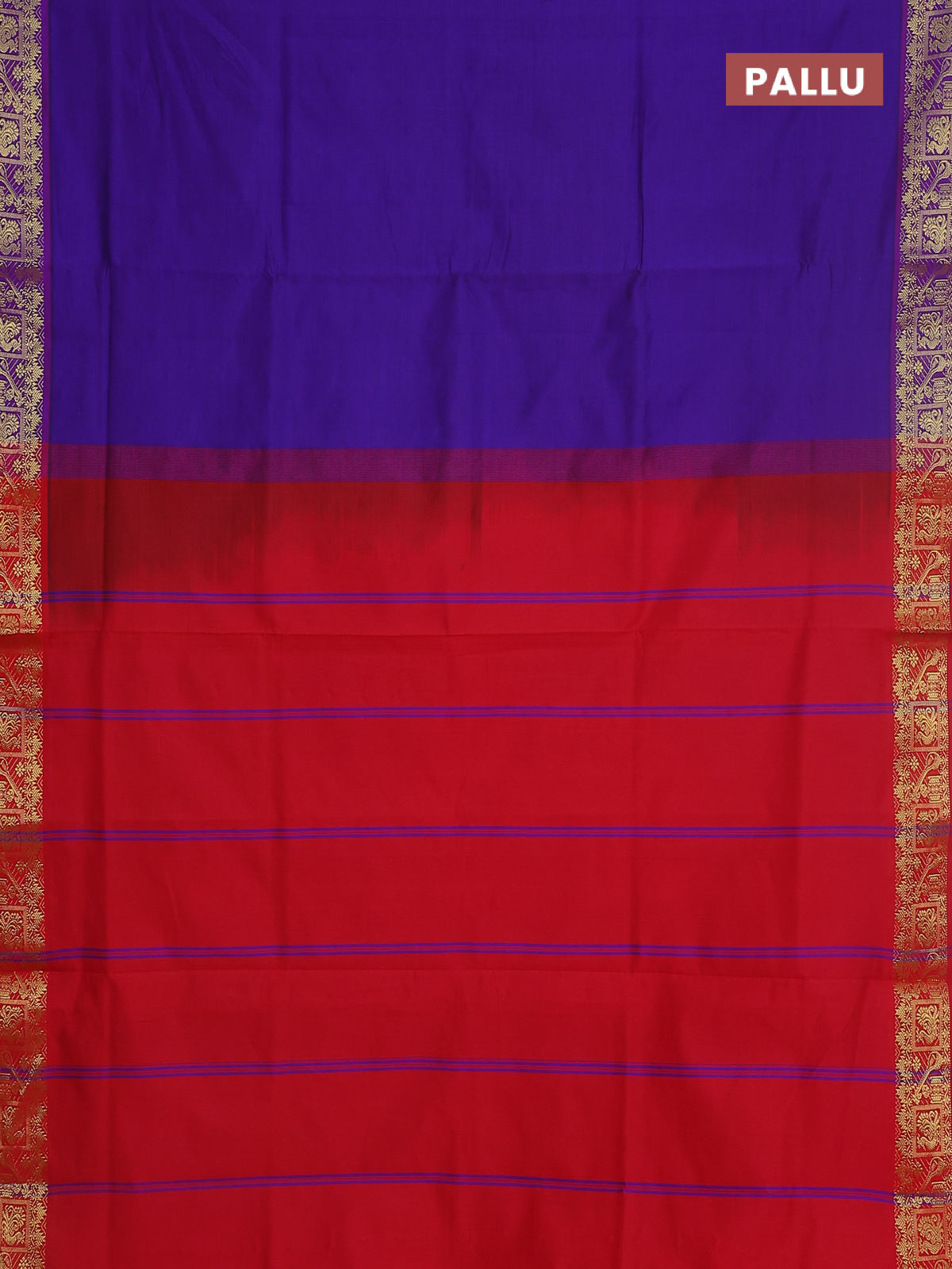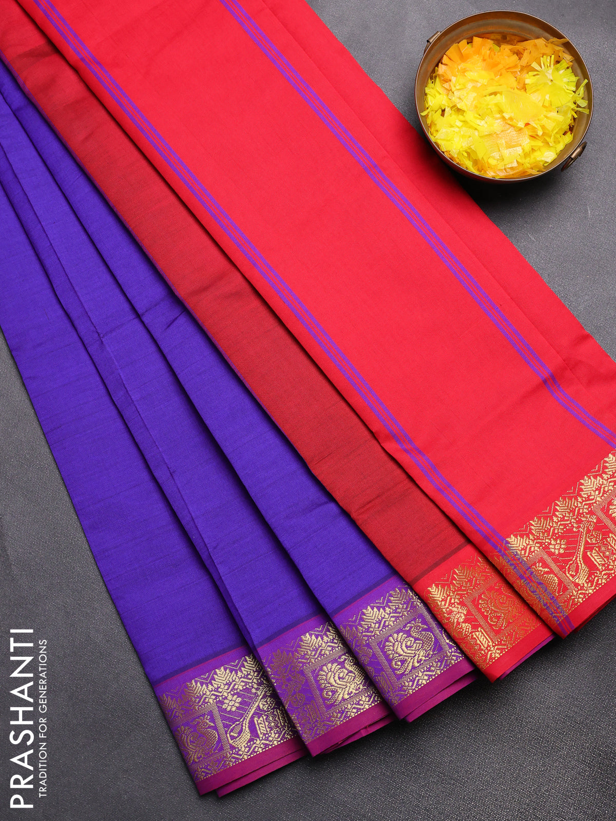 Semi silk cotton saree violet and red with plain body and zari woven border