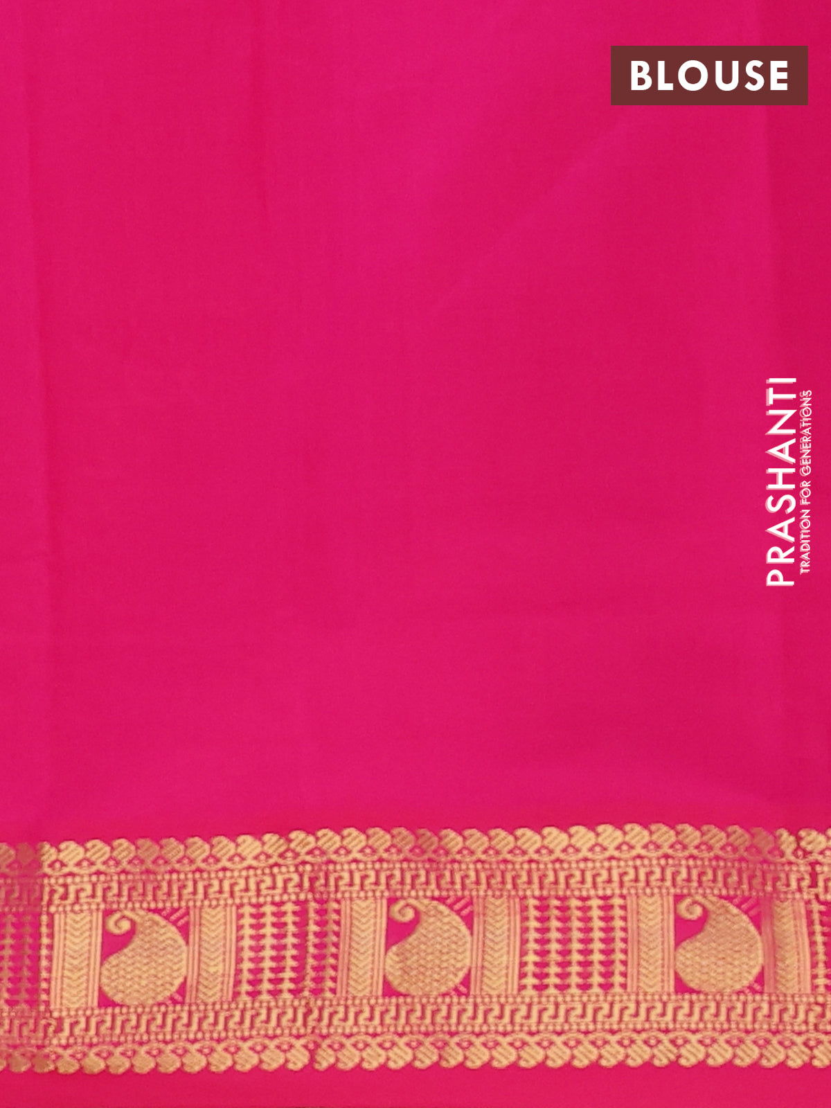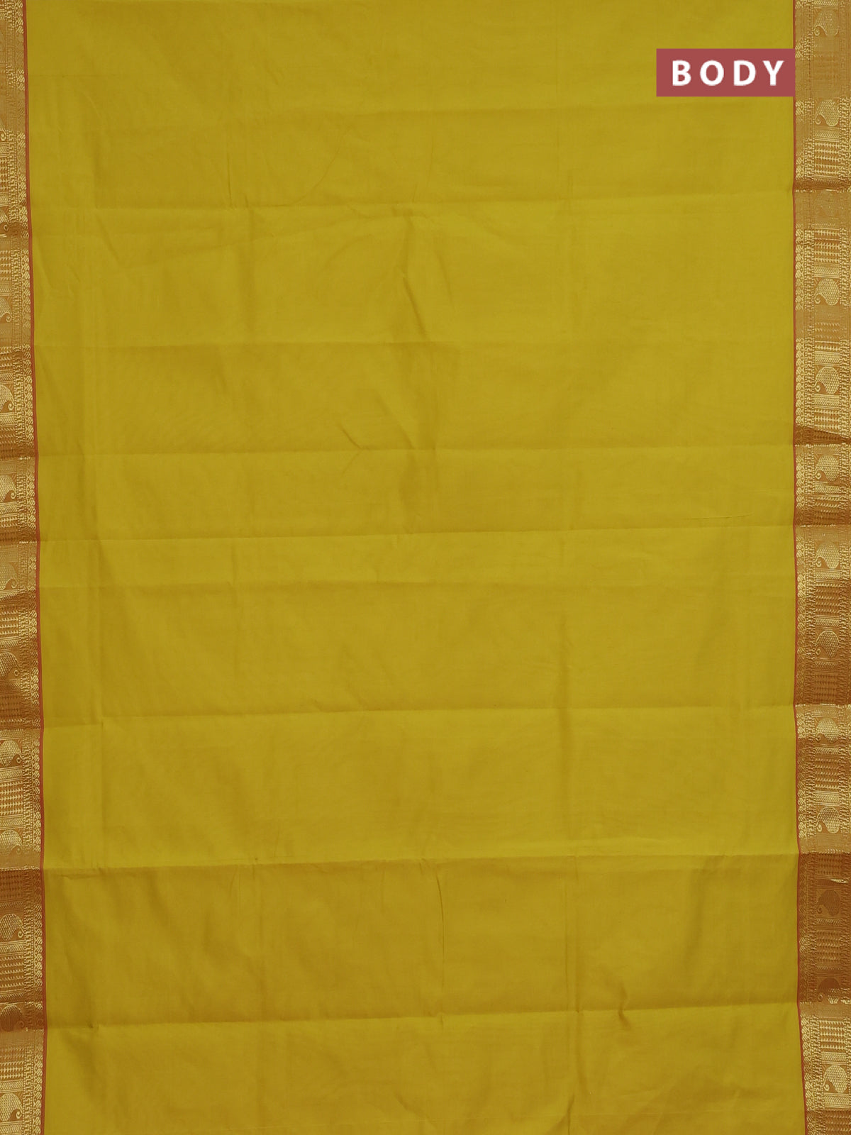 Semi silk cotton saree yellow and pink with plain body and zari woven border