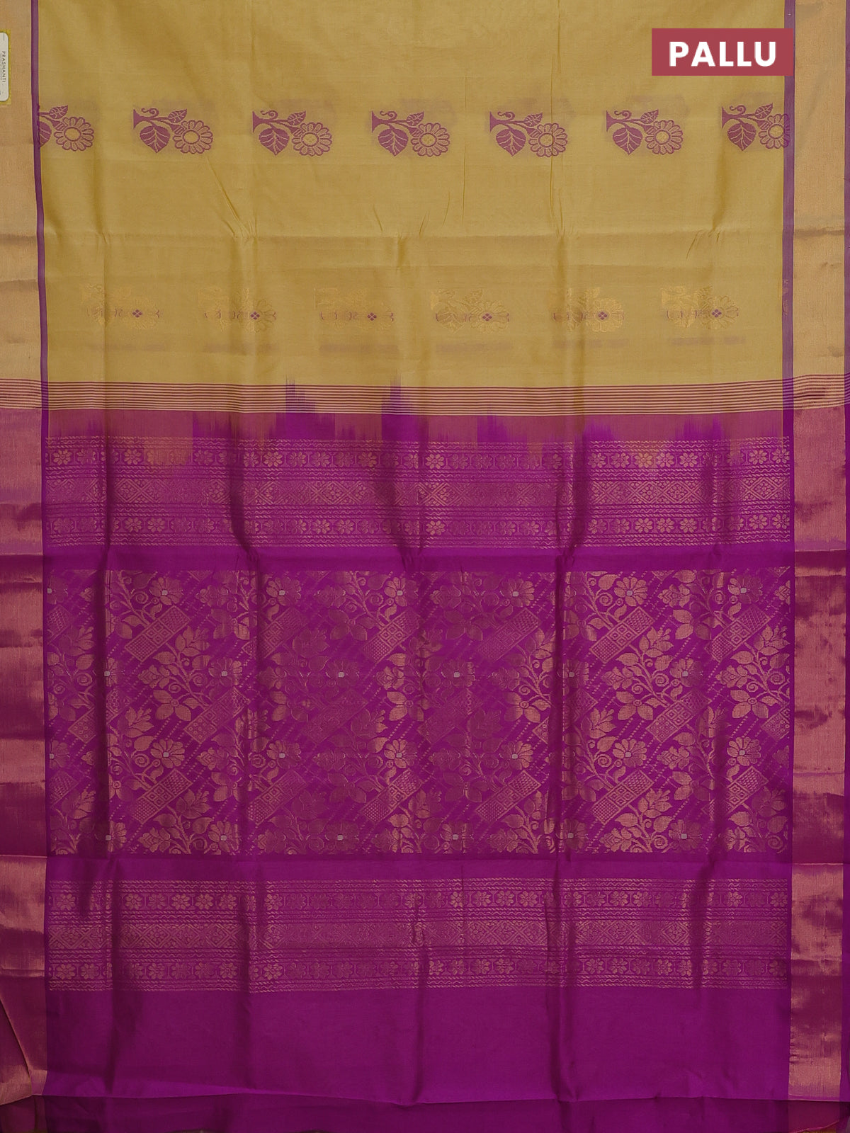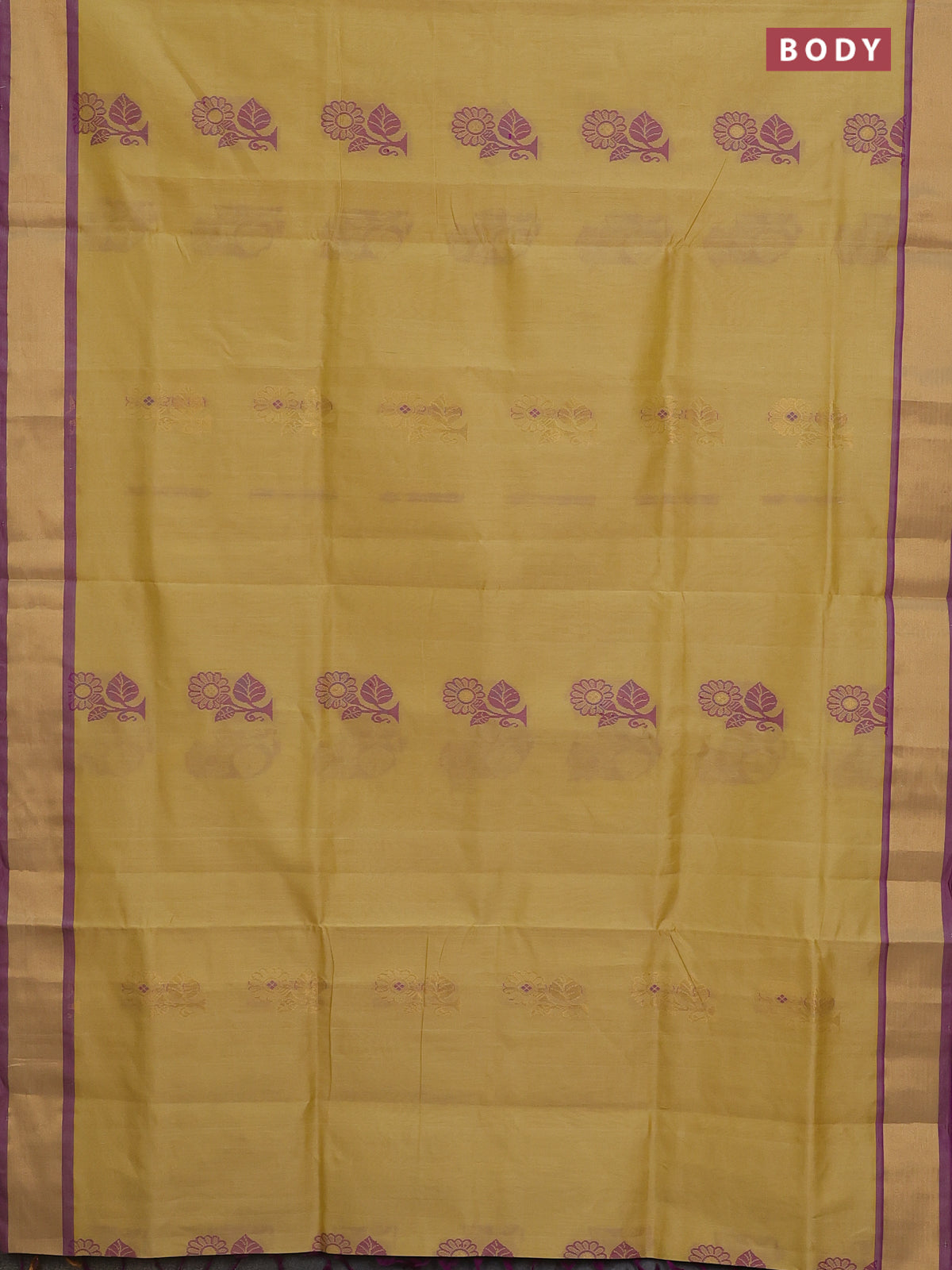 Semi silk cotton saree yellow shade and purple with thread & zari woven buttas and zari woven border