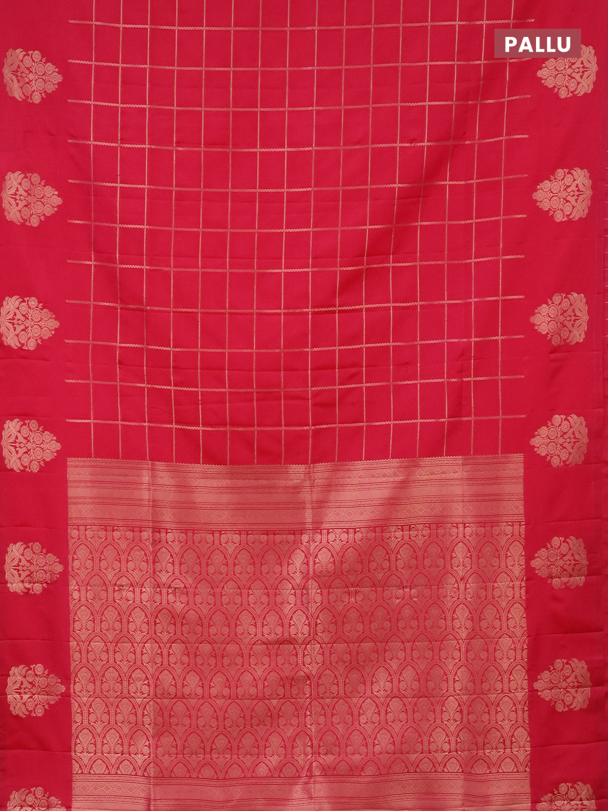 Semi soft silk saree candy pink with allover zari woven checked pattern with zari woven butta border