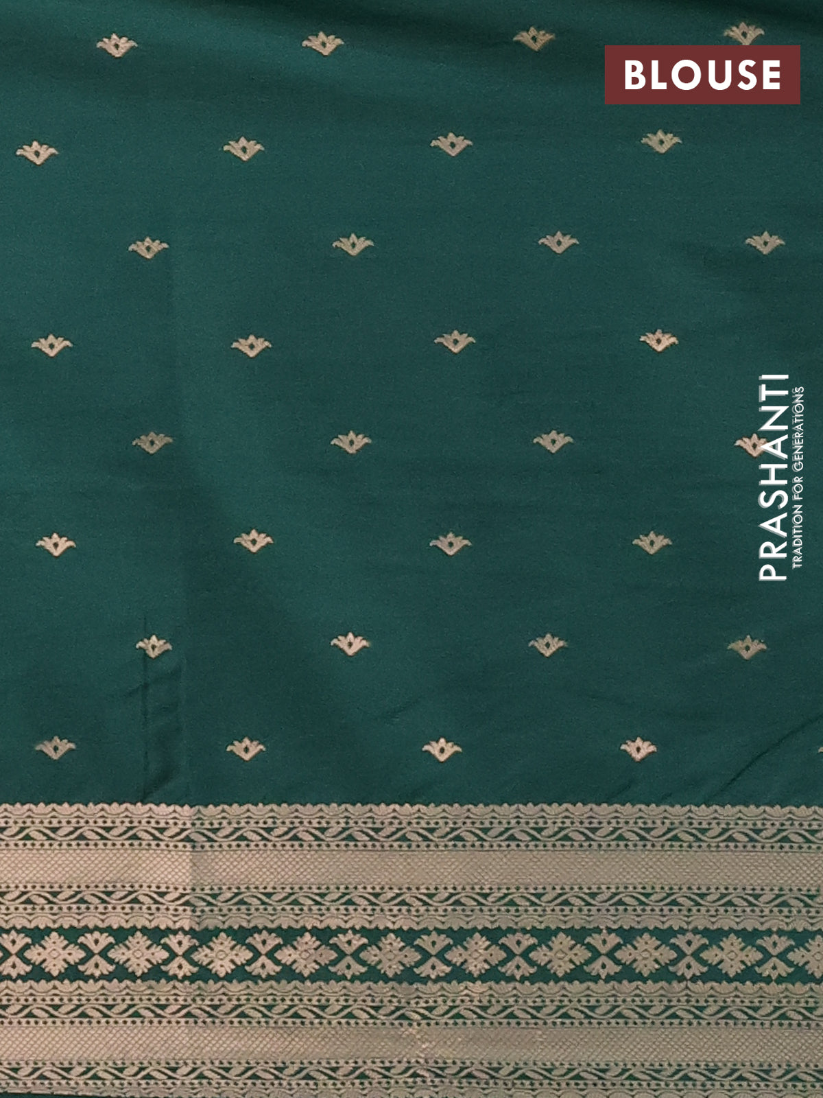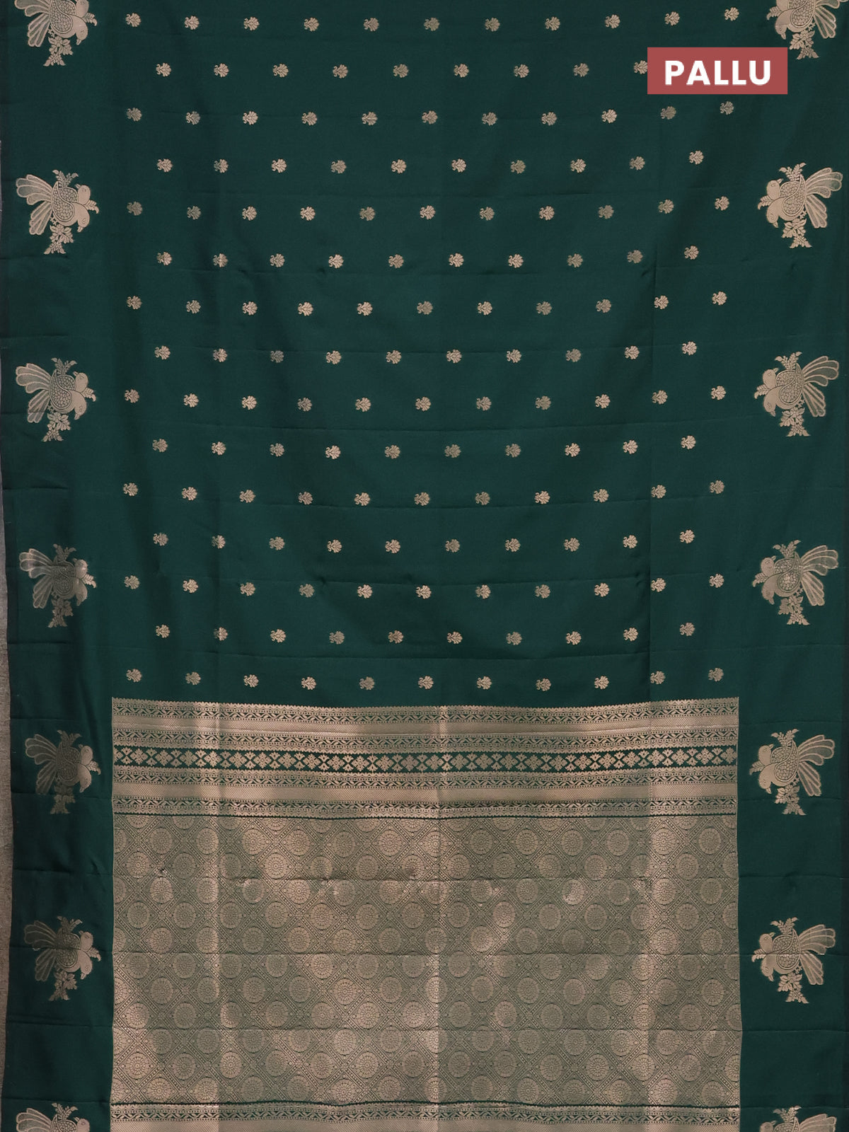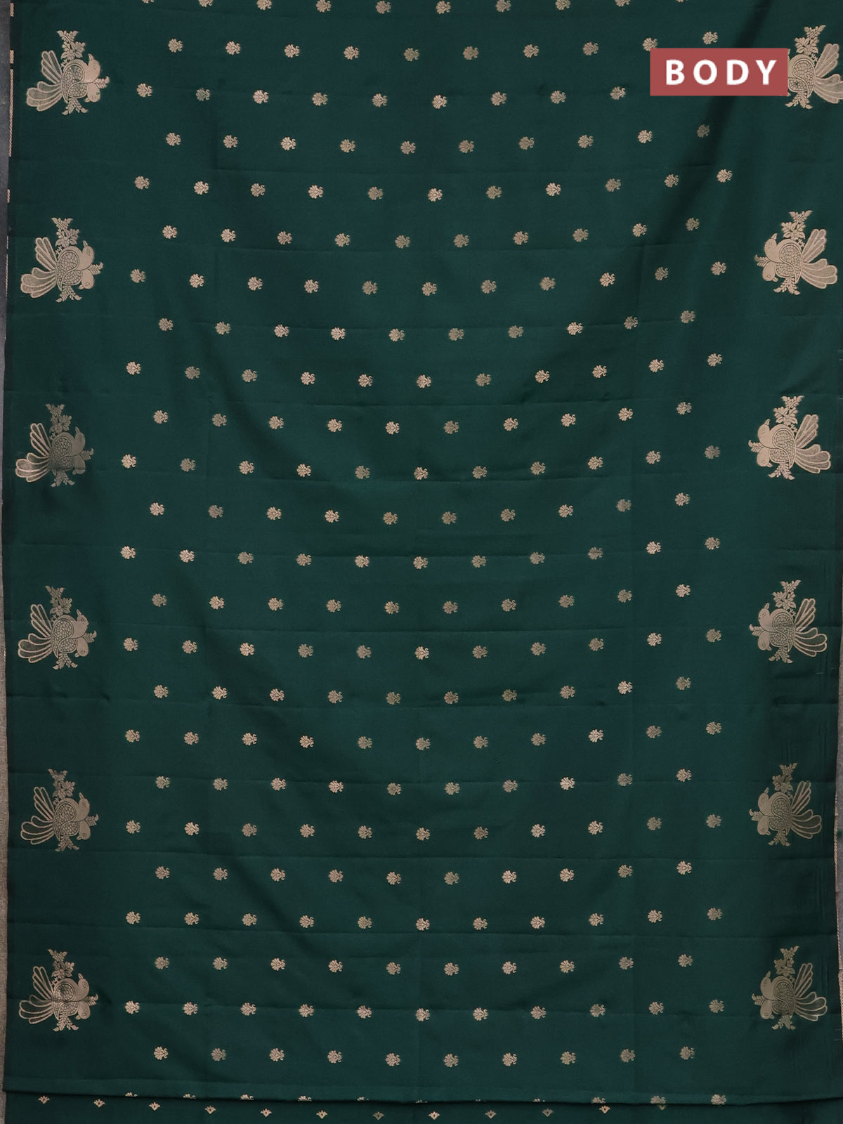 Semi soft silk saree dark green with allover zari woven buttas with zari woven bird butta border